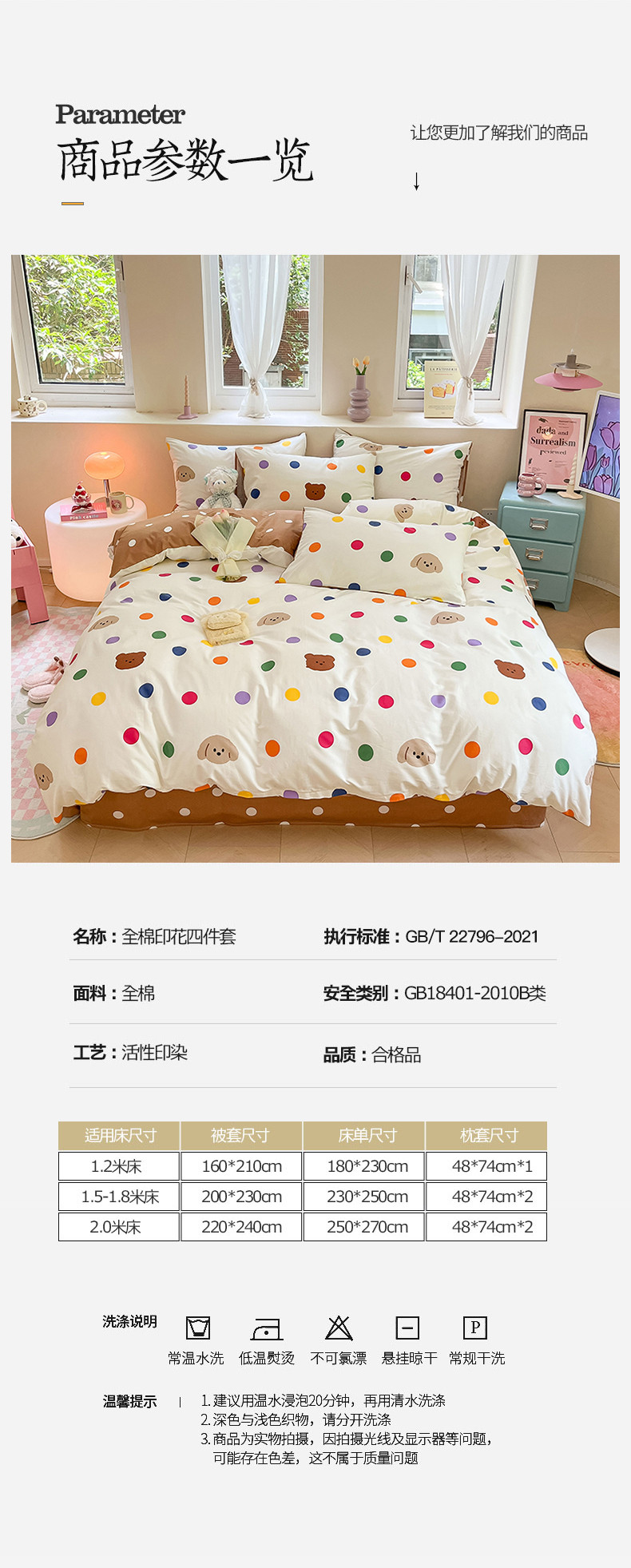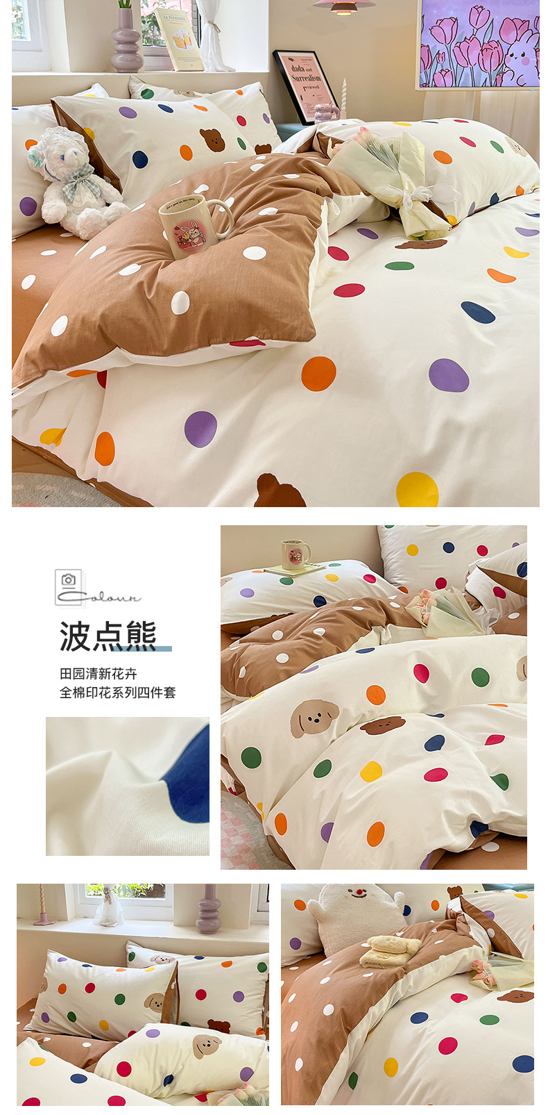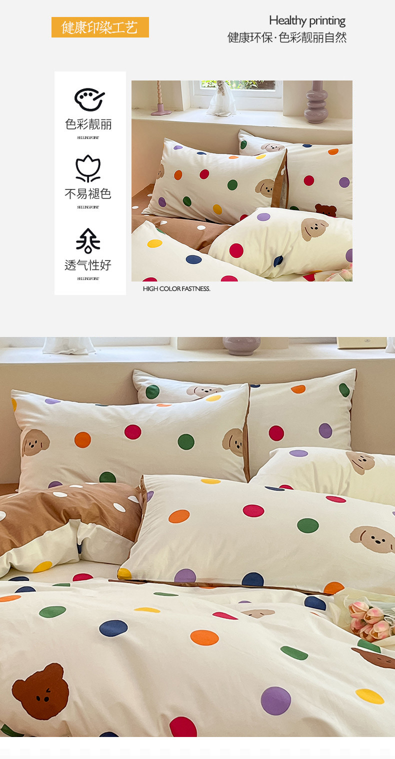 商品名称:沐棉 2023新款全棉13372小清新印花四件套 波点熊