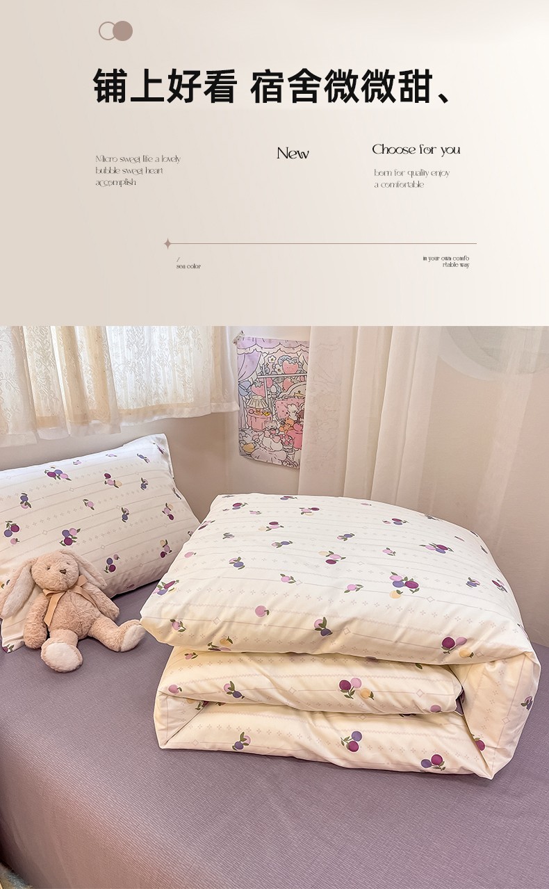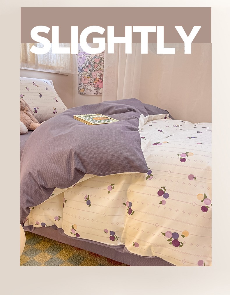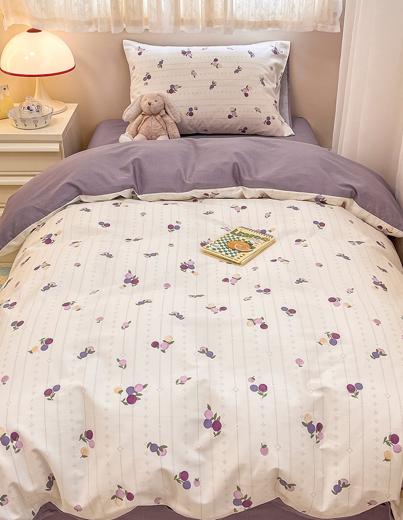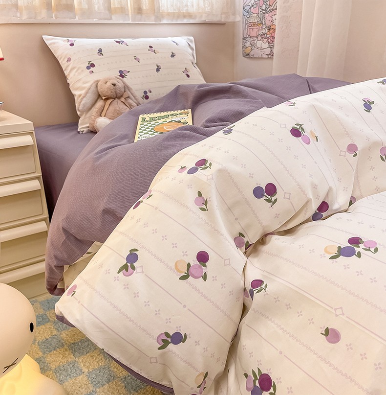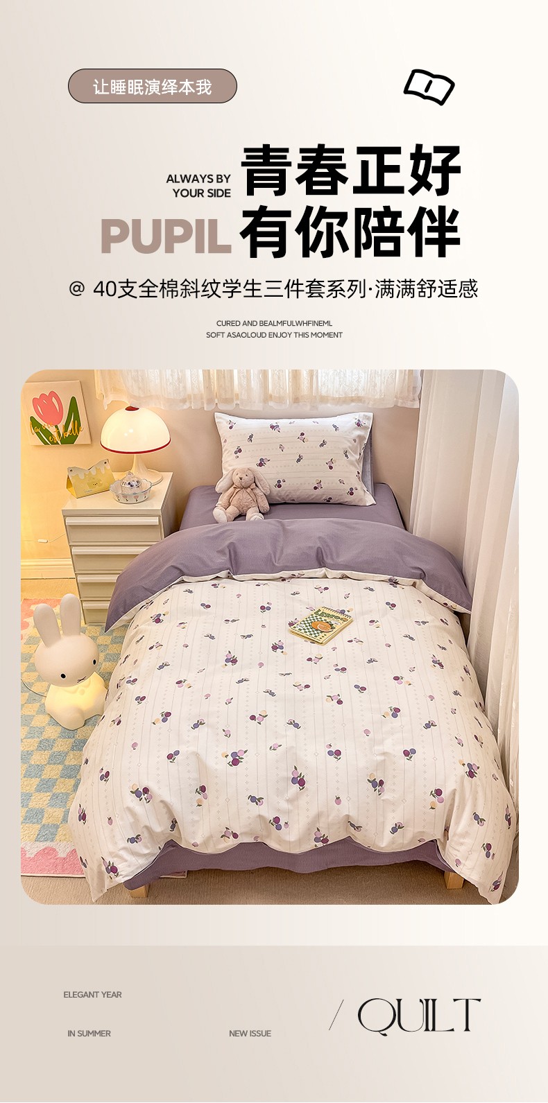 商品名称:简宜13070纯棉全棉40支斜纹卡通小清新学生床三件套四件套 紫葡仙子