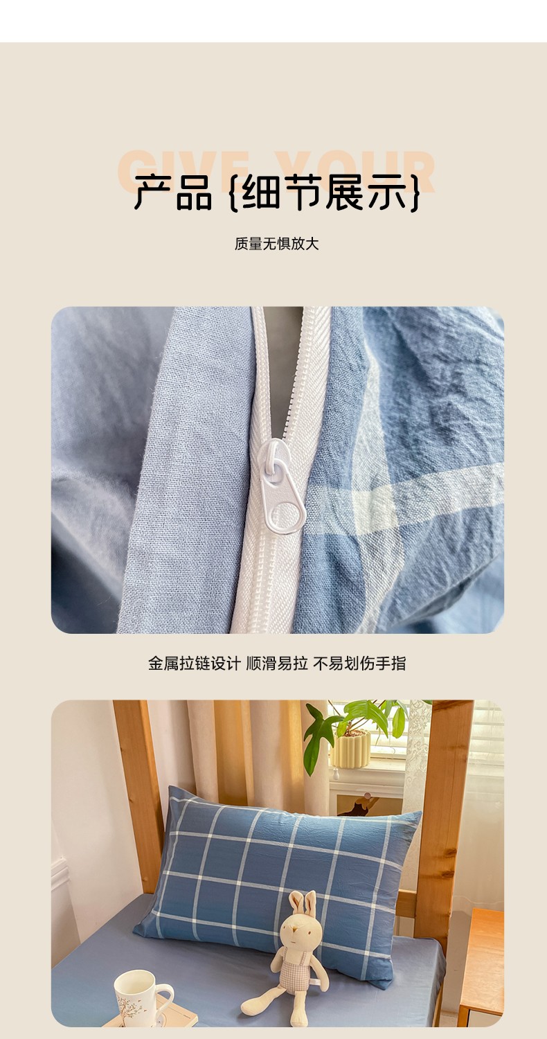 商品名称:吉象 2025新款色织学生水洗棉上下铺三件套 大蓝格