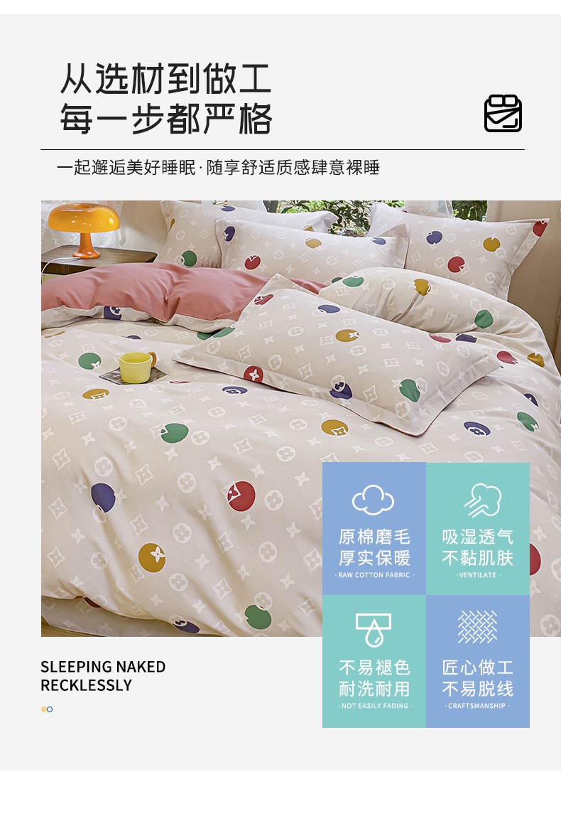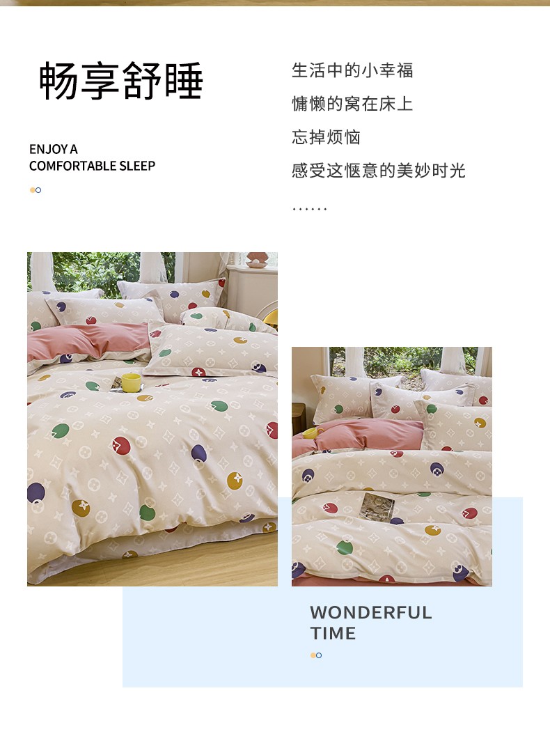 商品名称:金丝鸟 2023新款原棉磨毛四件套小清新系列 多利圈