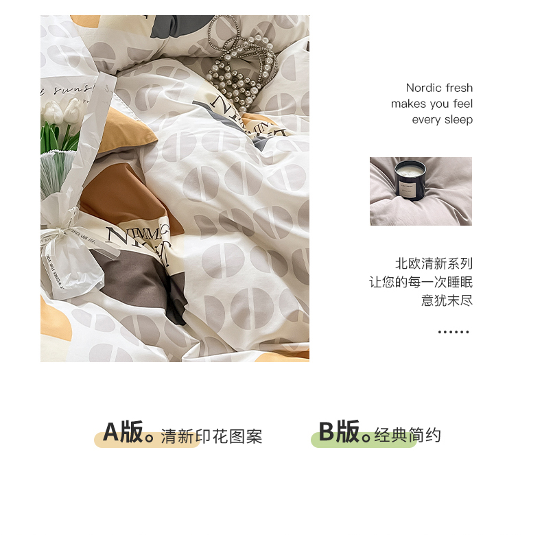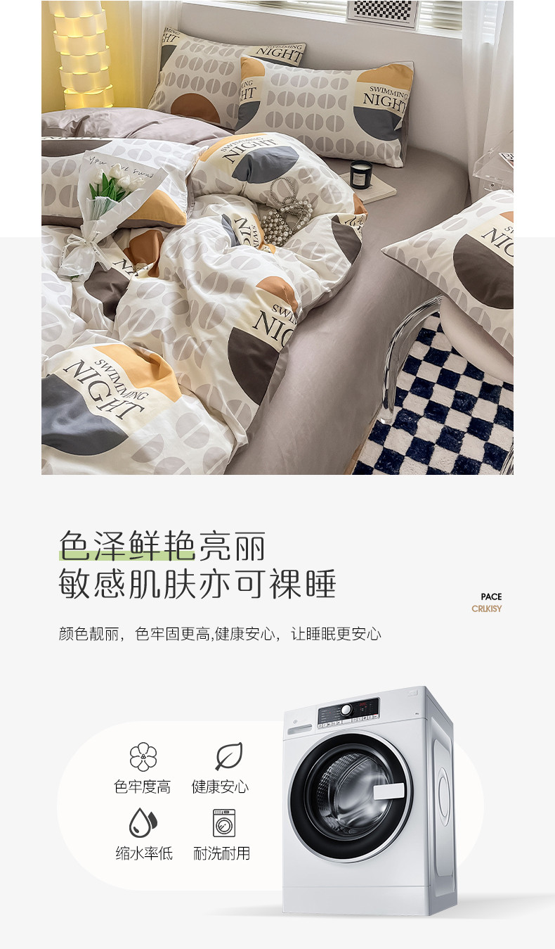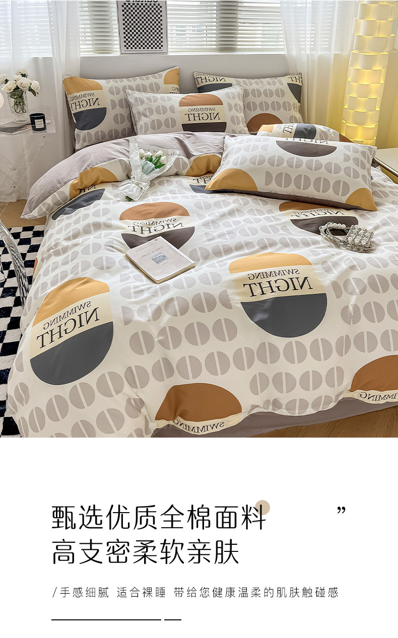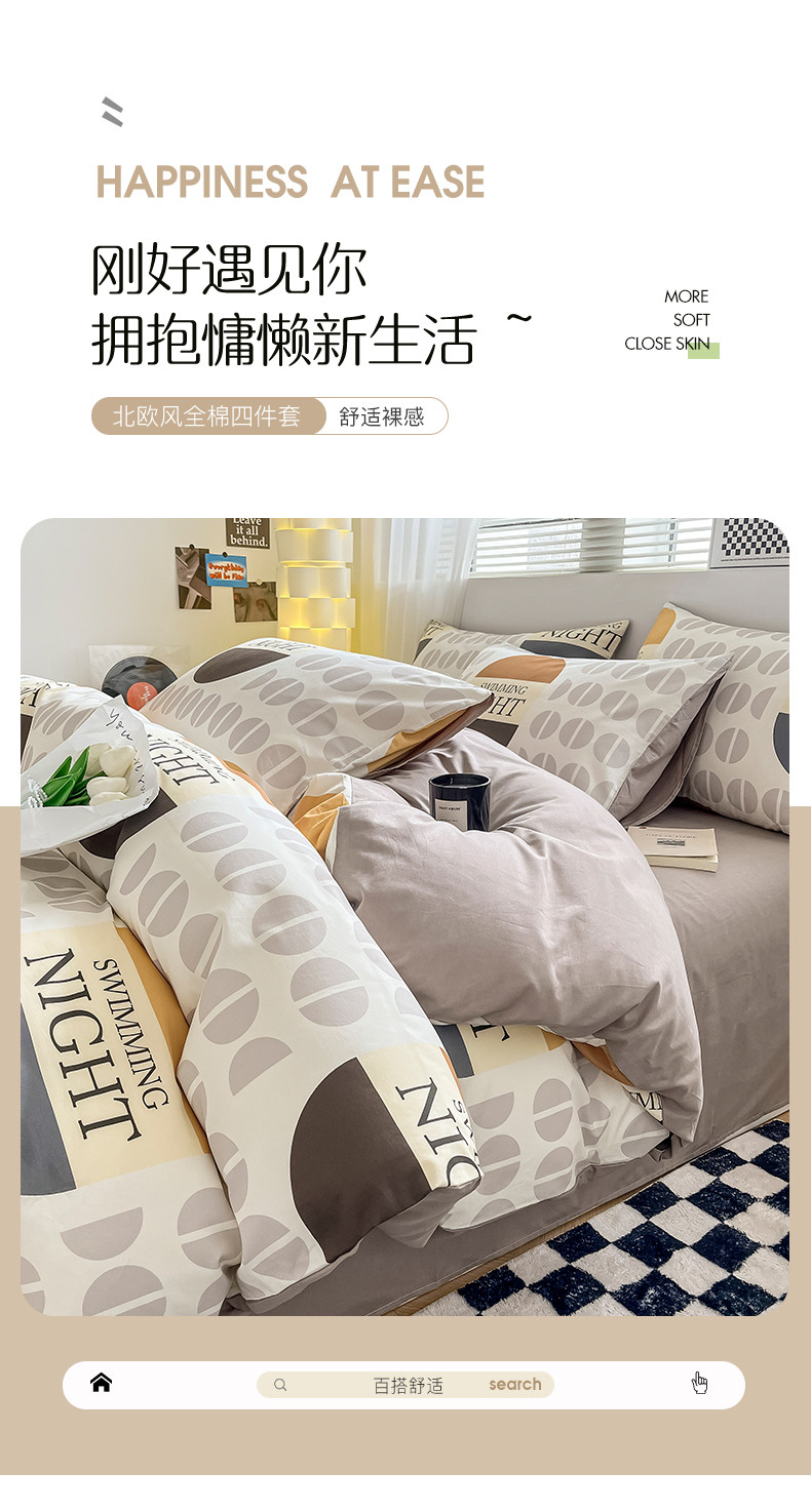 商品名称:小懒猪 2024新款春夏全棉北欧简约风系列四件套-风格三 畅游之夜