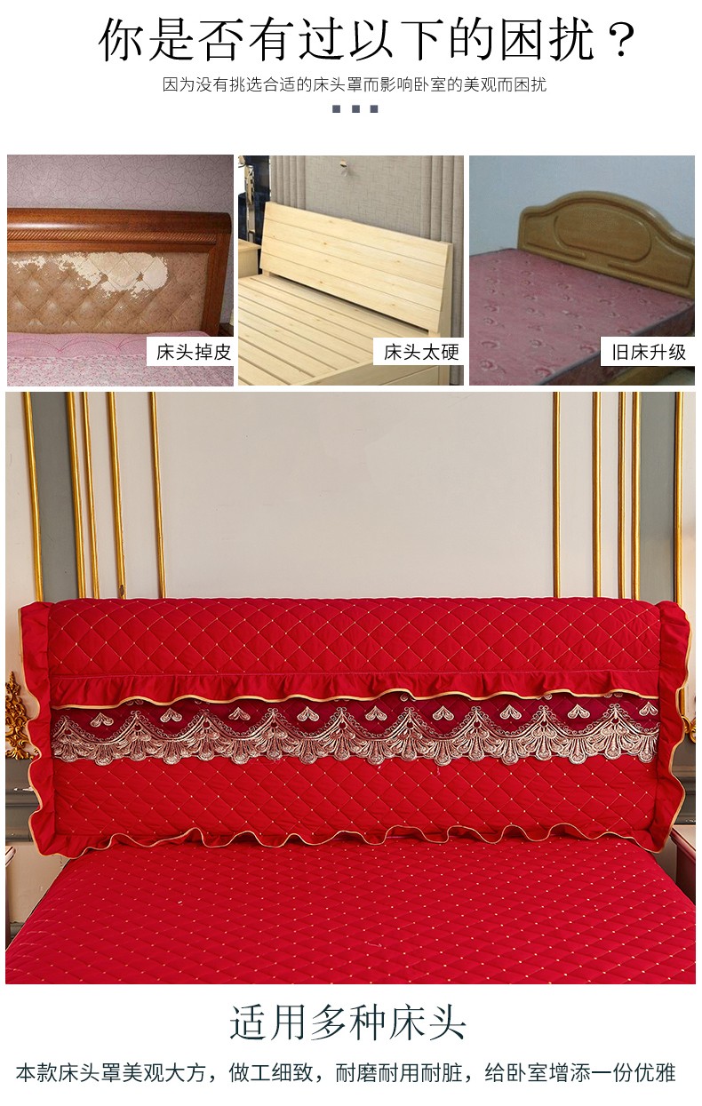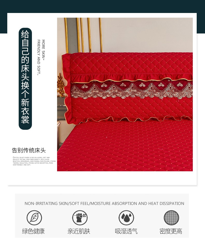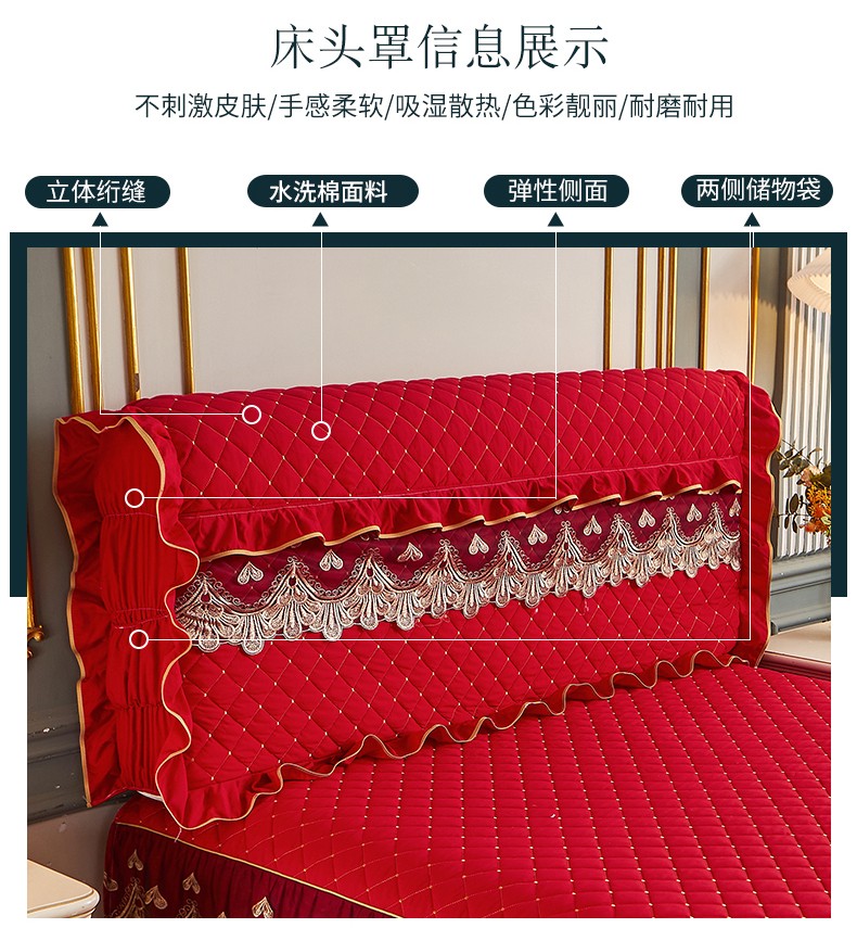 商品名称:屹成 2024新款水洗棉蕾丝四季款床笠床裙单品套件-床头罩 大红