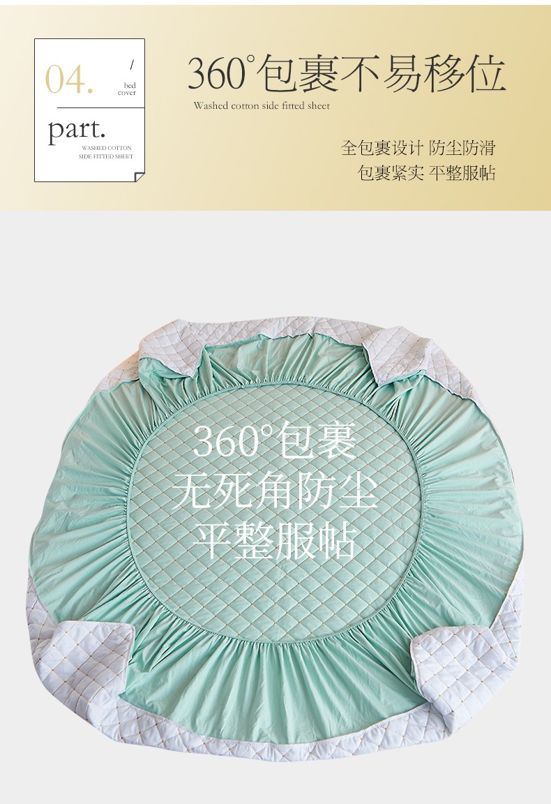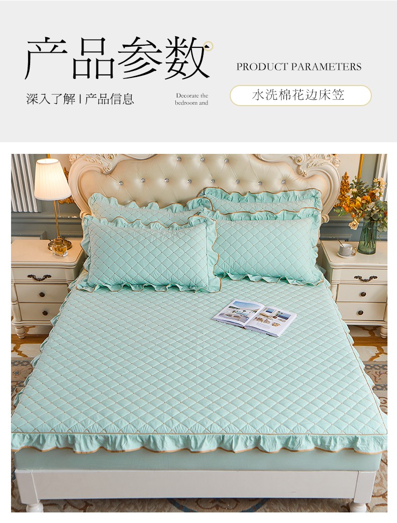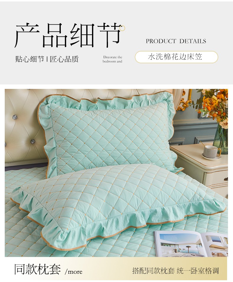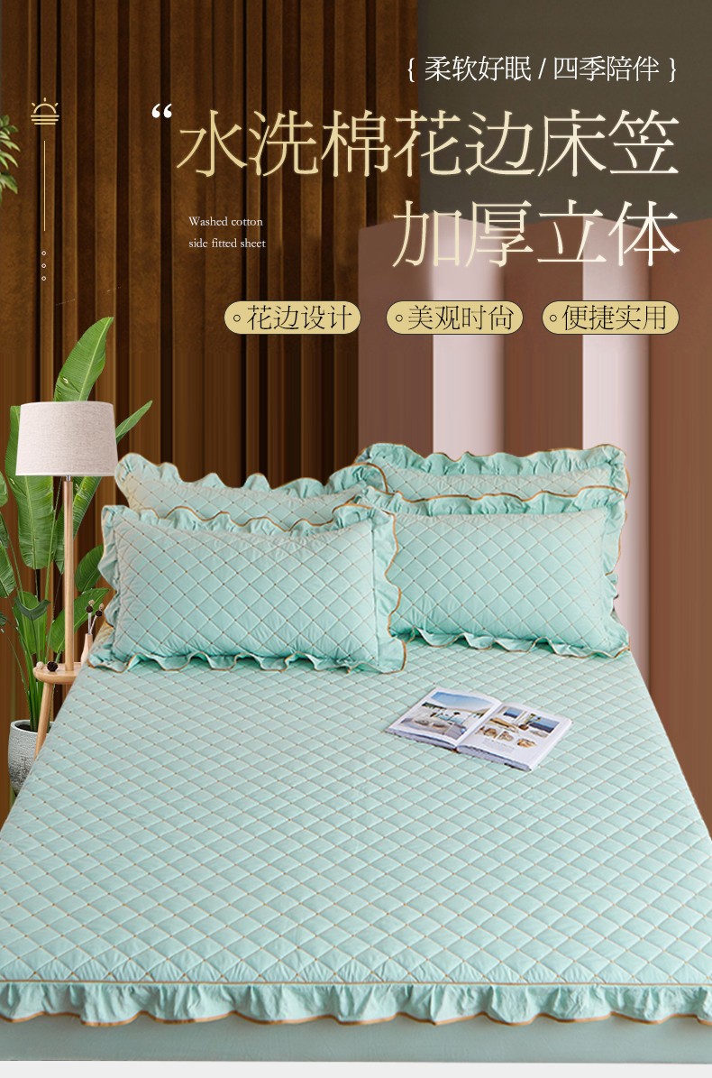 屹成 2024新款水洗棉蕾丝四季款床笠床裙单品套件-床笠三件套 水绿