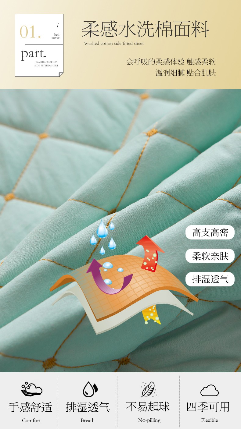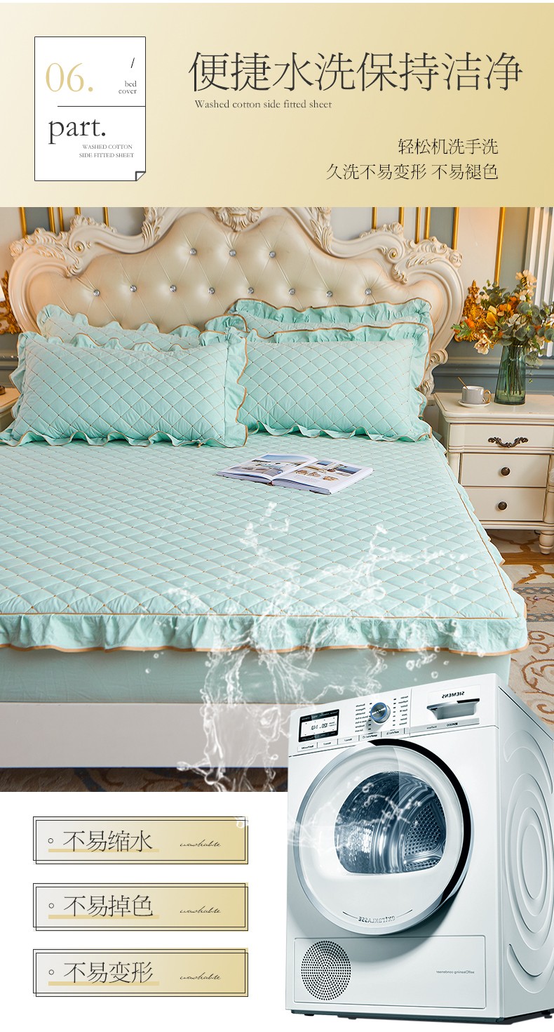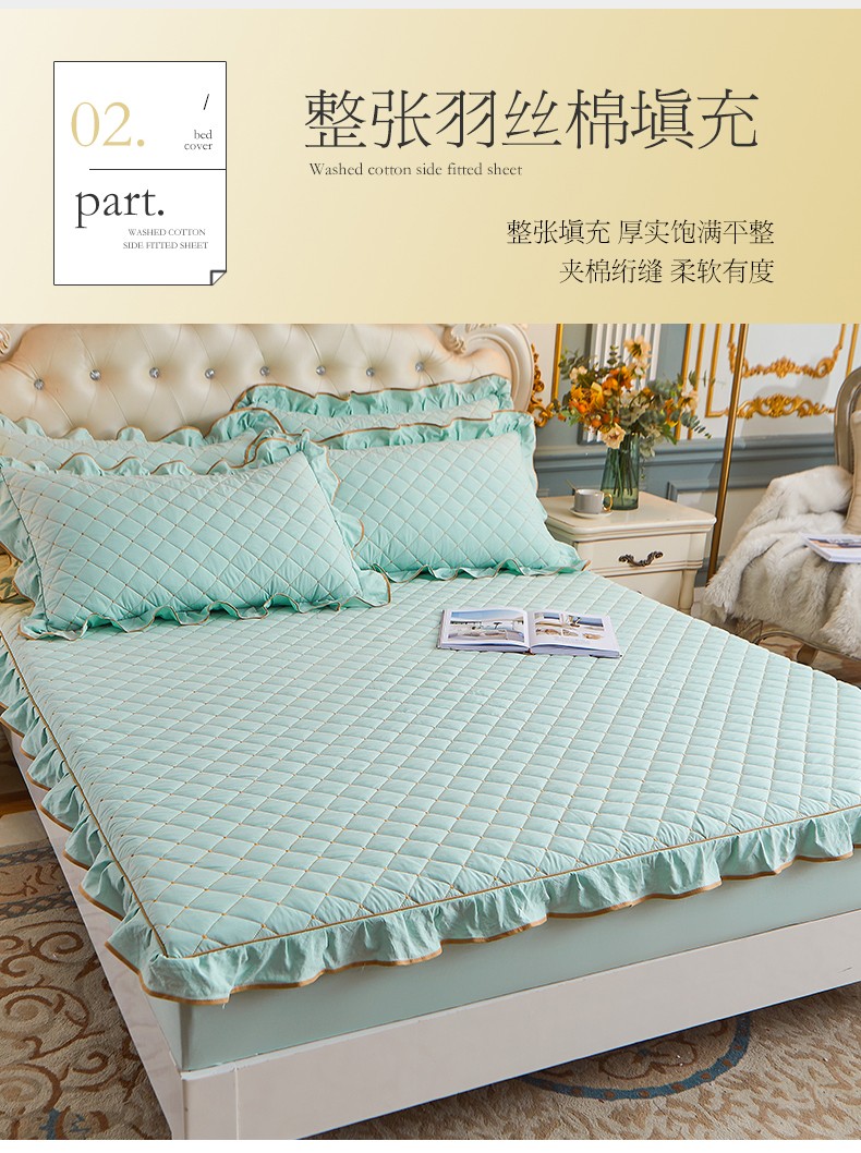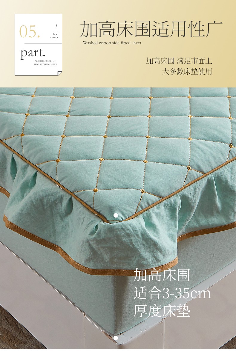 屹成 2024新款水洗棉蕾丝四季款床笠床裙单品套件-床笠三件套 水绿
