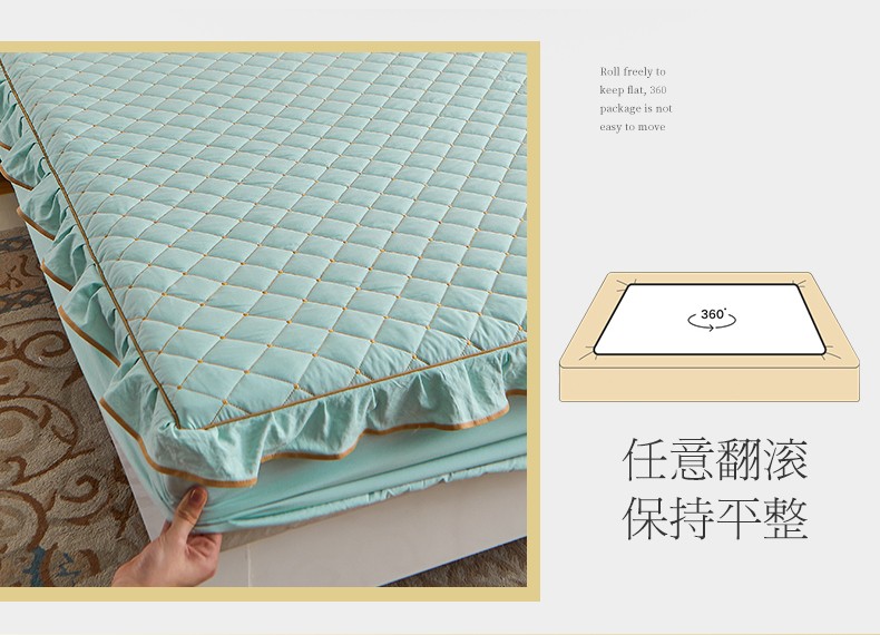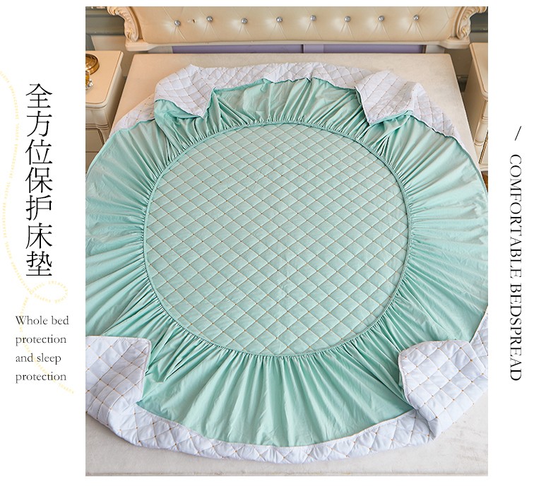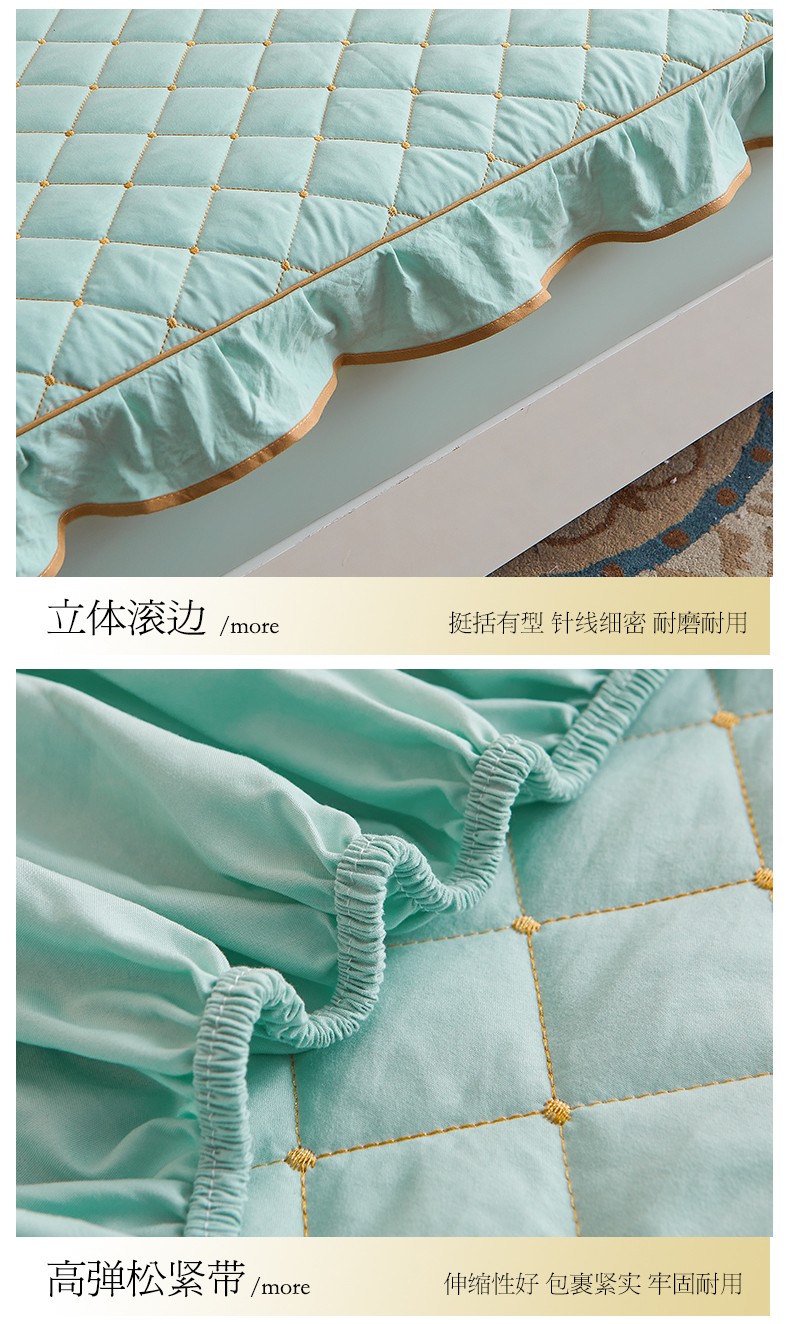 (总)屹成家纺2025新款水晶绒夹棉绗缝蕾丝床裙三件套(塞纳河畔)床裙单件起售价不低于105元,大红,豆沙,翡翠绿,粉玉,橄榄绿,蔚蓝,银灰