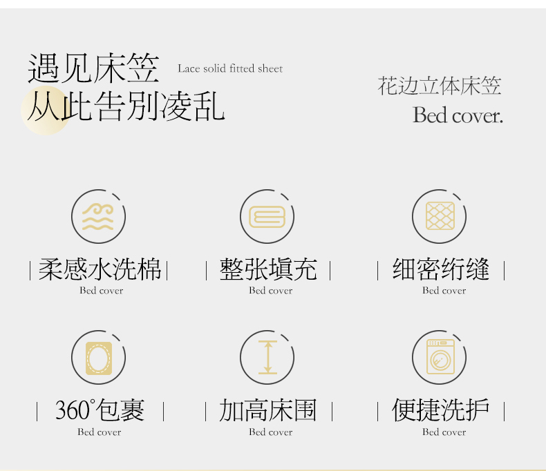 商品名称:屹成 2024新款水洗棉蕾丝四季款床笠床裙单品套件-床笠三件套 水绿