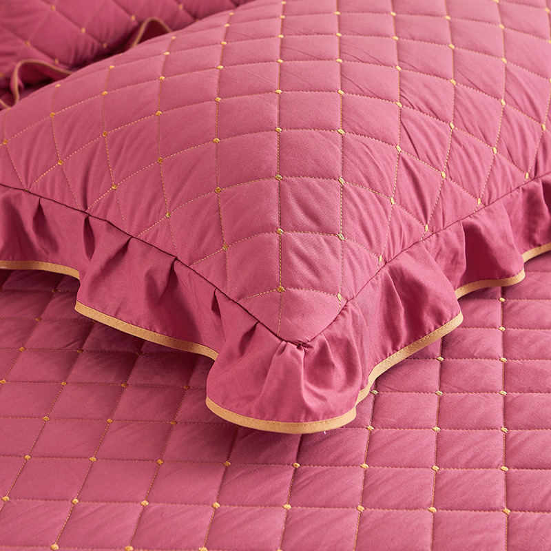 (总)屹成家纺2025新款水晶绒夹棉绗缝蕾丝床裙三件套(塞纳河畔)床裙单件起售价不低于105元,大红,豆沙,翡翠绿,粉玉,橄榄绿,蔚蓝,银灰