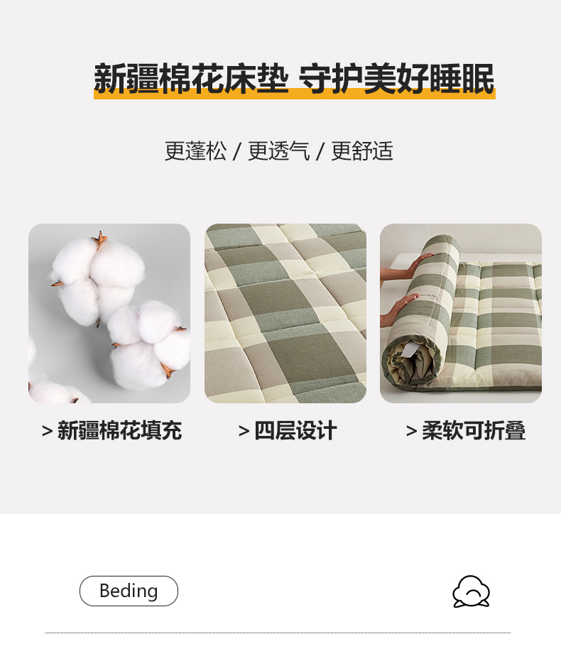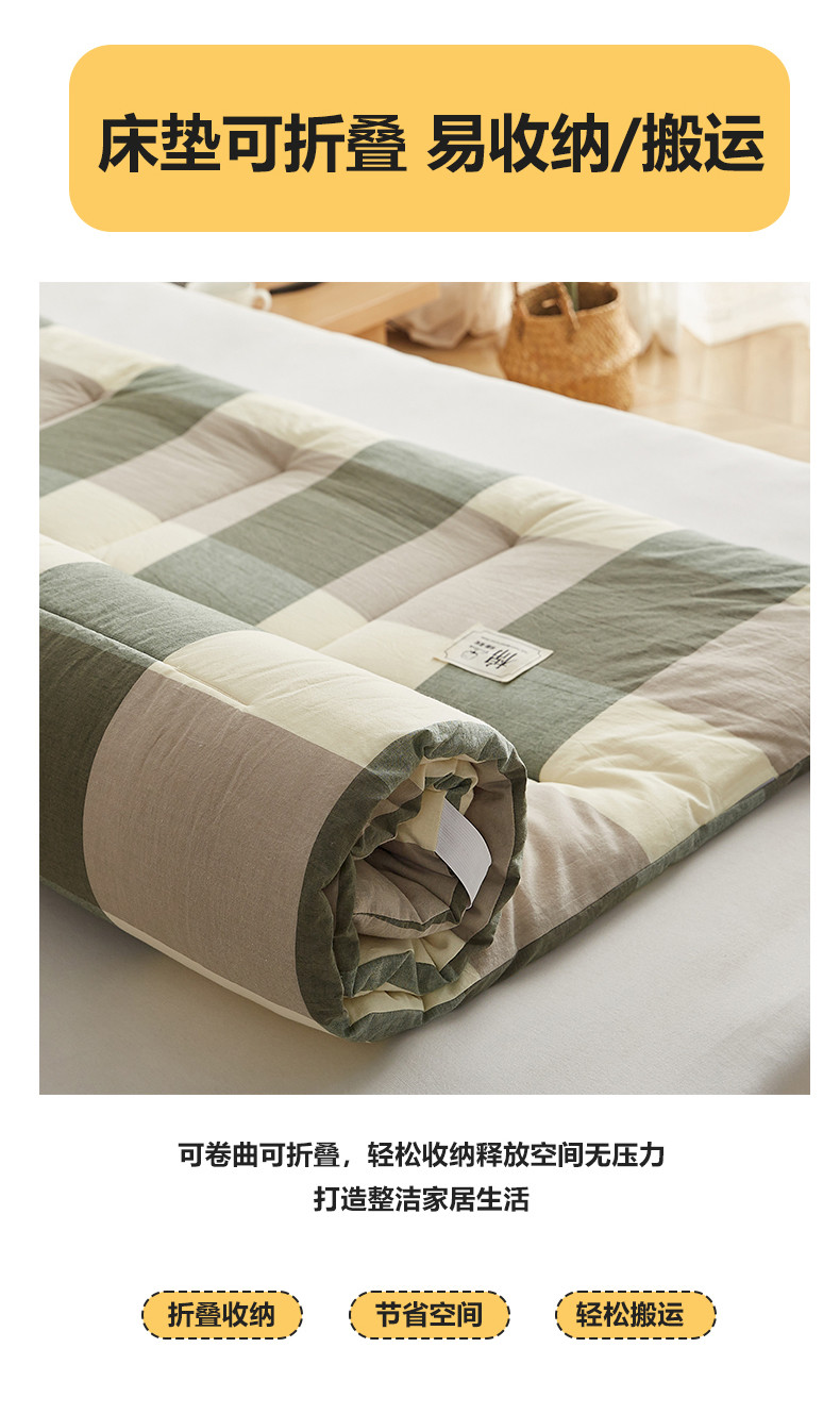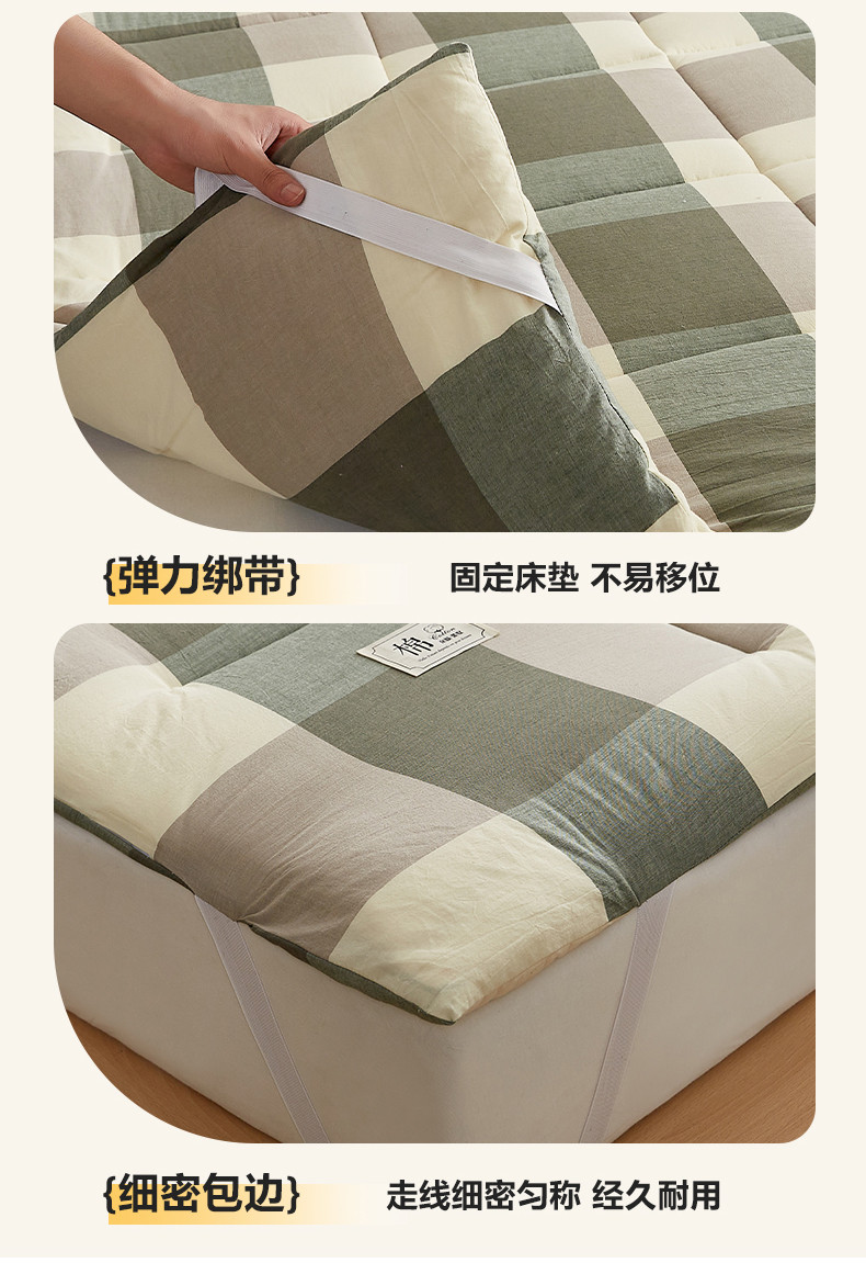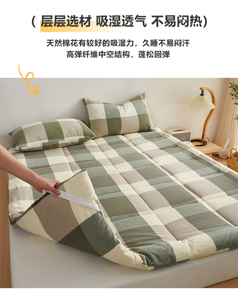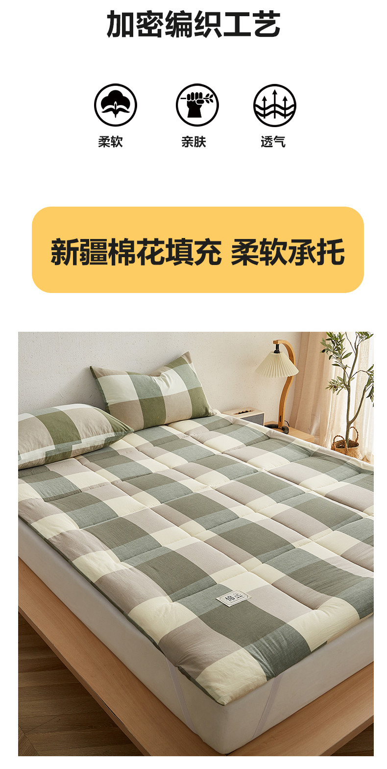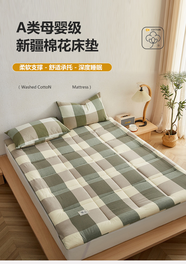 商品名称:暖阳 2025新款新疆棉花水洗棉成人家用床垫 绿大格