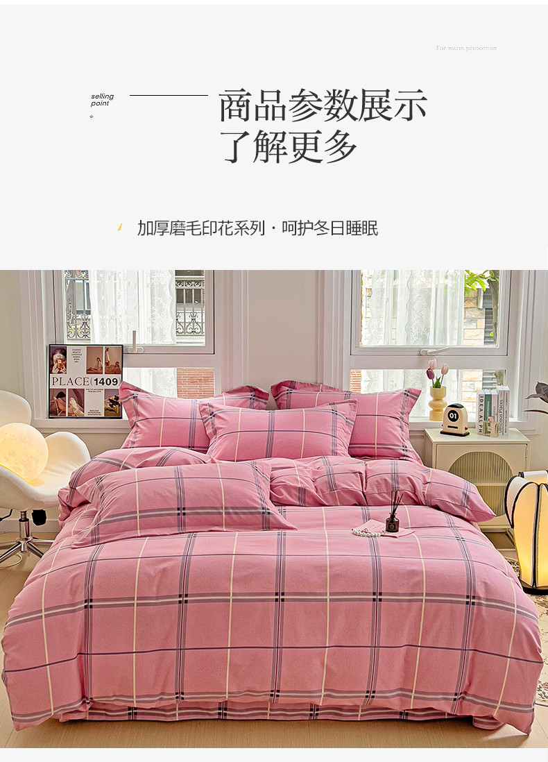 当前位置: 91家纺网 > 商品网购 > 床品套件 > 四件套 > 全棉普通四件套 > 品乐家纺 2023新款全棉喷气磨毛印花四件套 格鲁尼-粉
