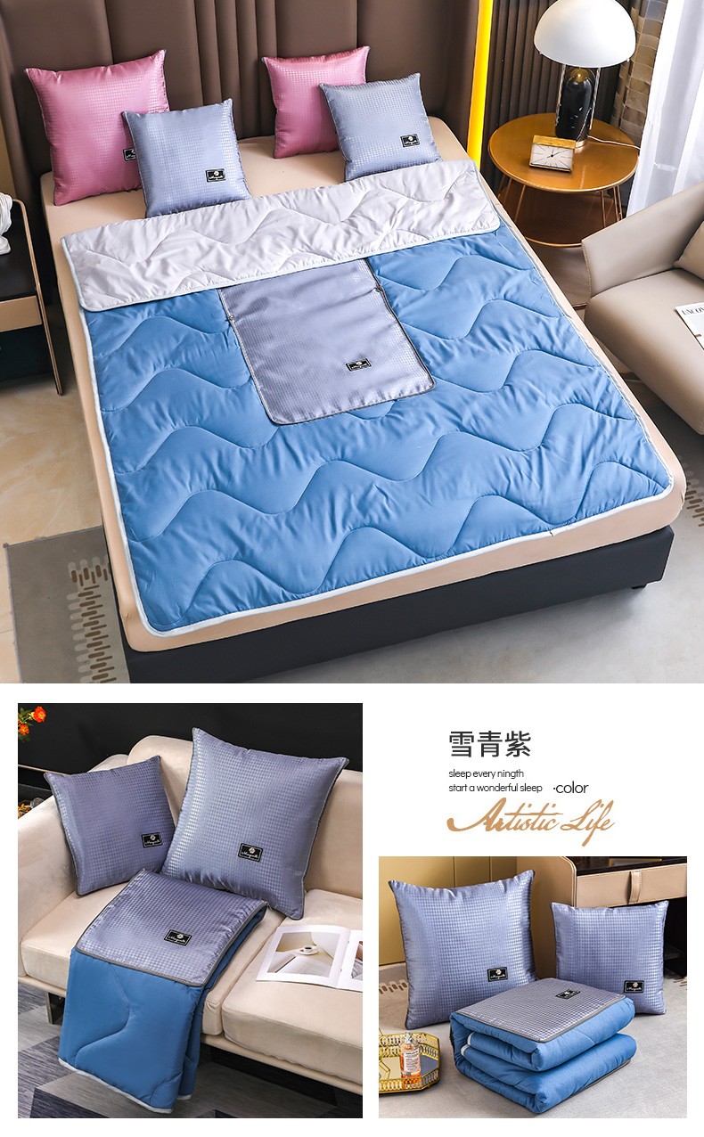 商品名称:伊可爱抱枕被 2023新款天丝凉感提花多针抱枕被 千鸟格-雪青紫