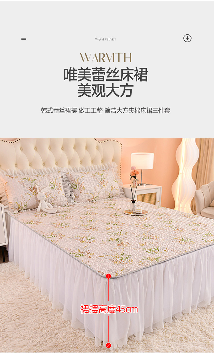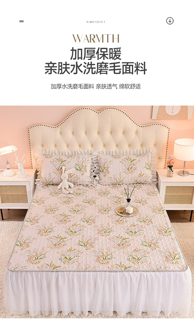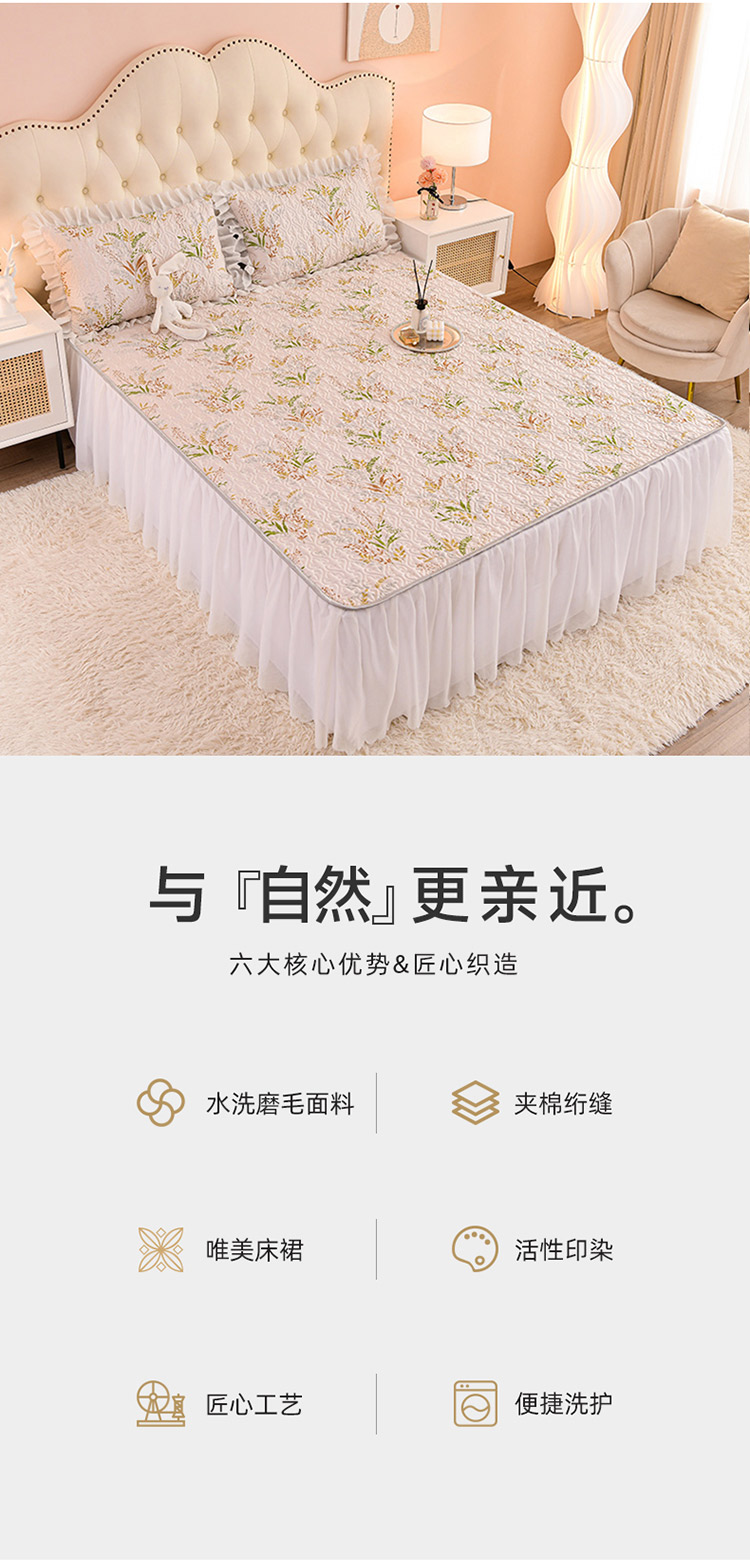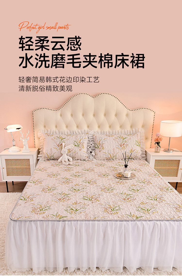 商品名称:艾兜坊 2023新款轻柔云感水洗磨毛夹棉床裙花觅田园