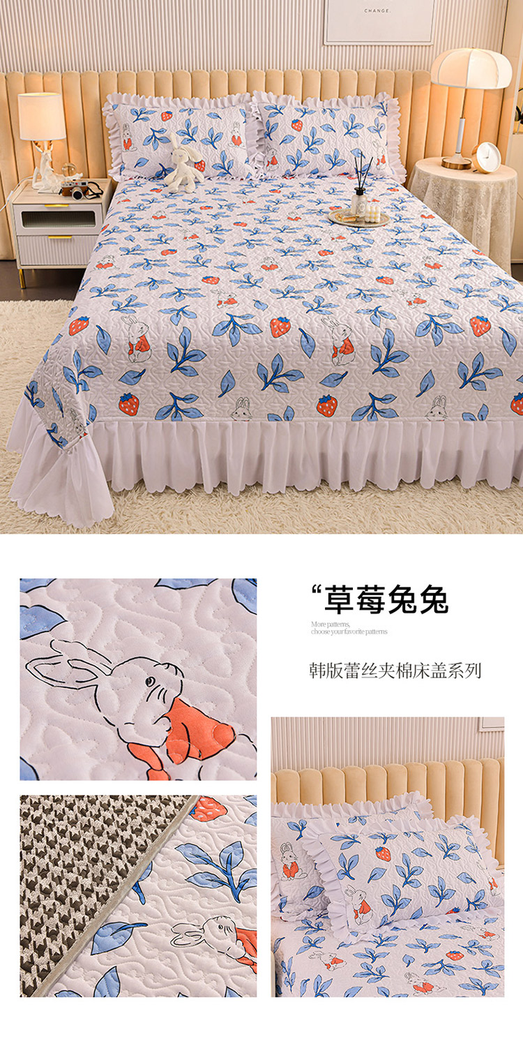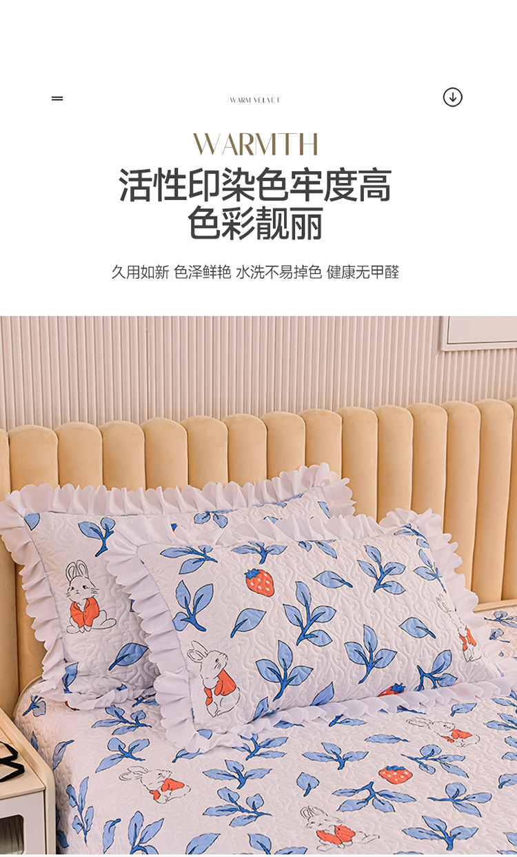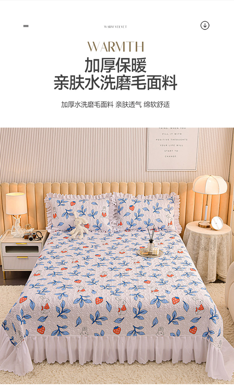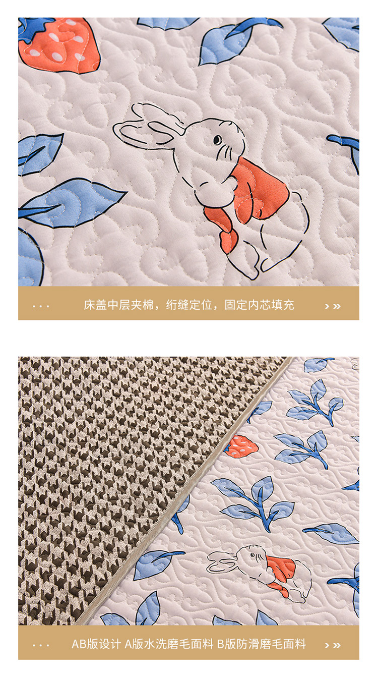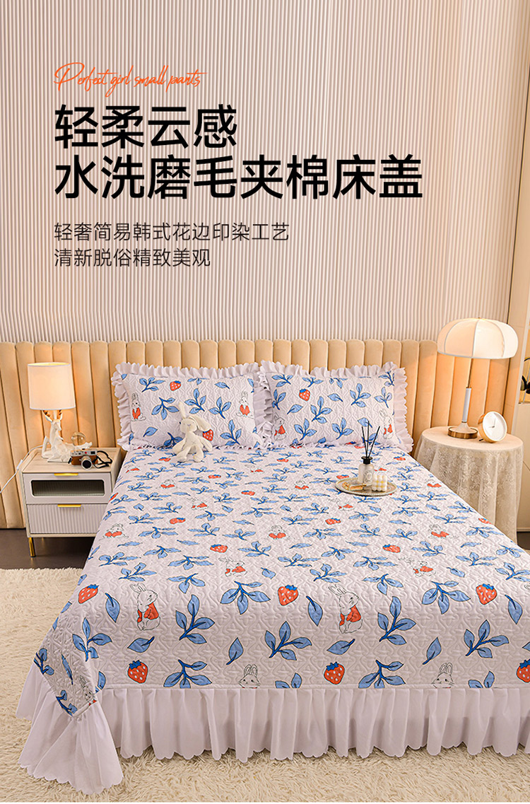 商品名称:艾兜坊 2023新款轻柔云感水洗磨毛夹棉床盖草莓兔兔