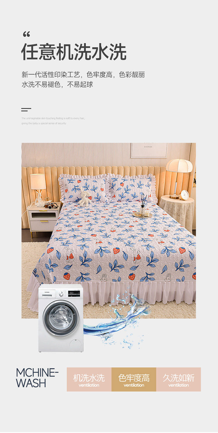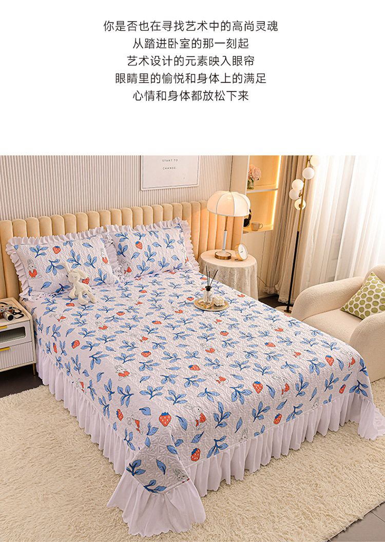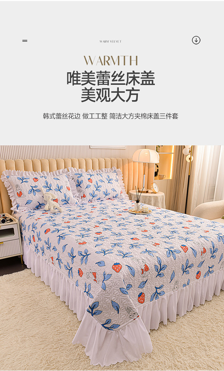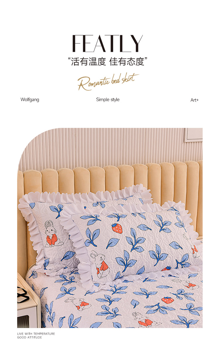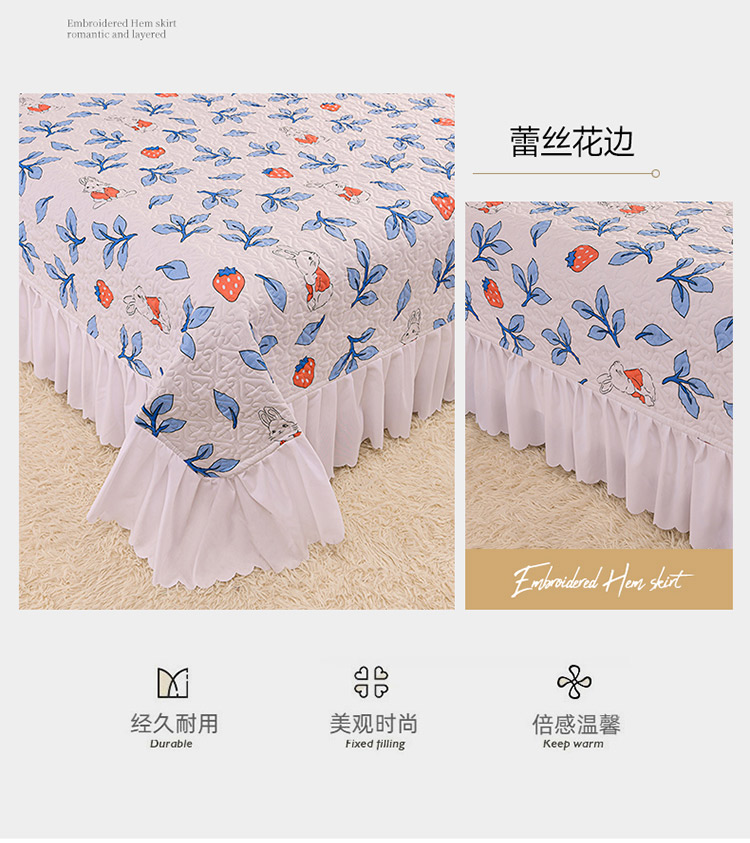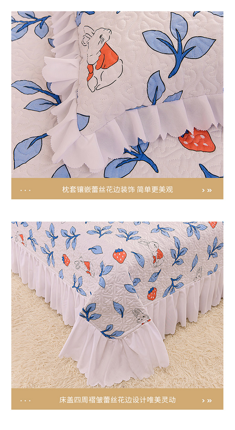 商品名称:艾兜坊 2023新款轻柔云感水洗磨毛夹棉床盖草莓兔兔