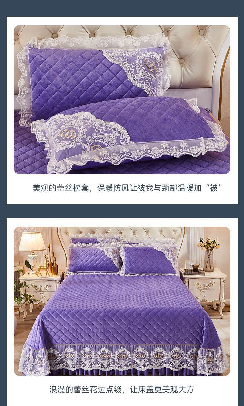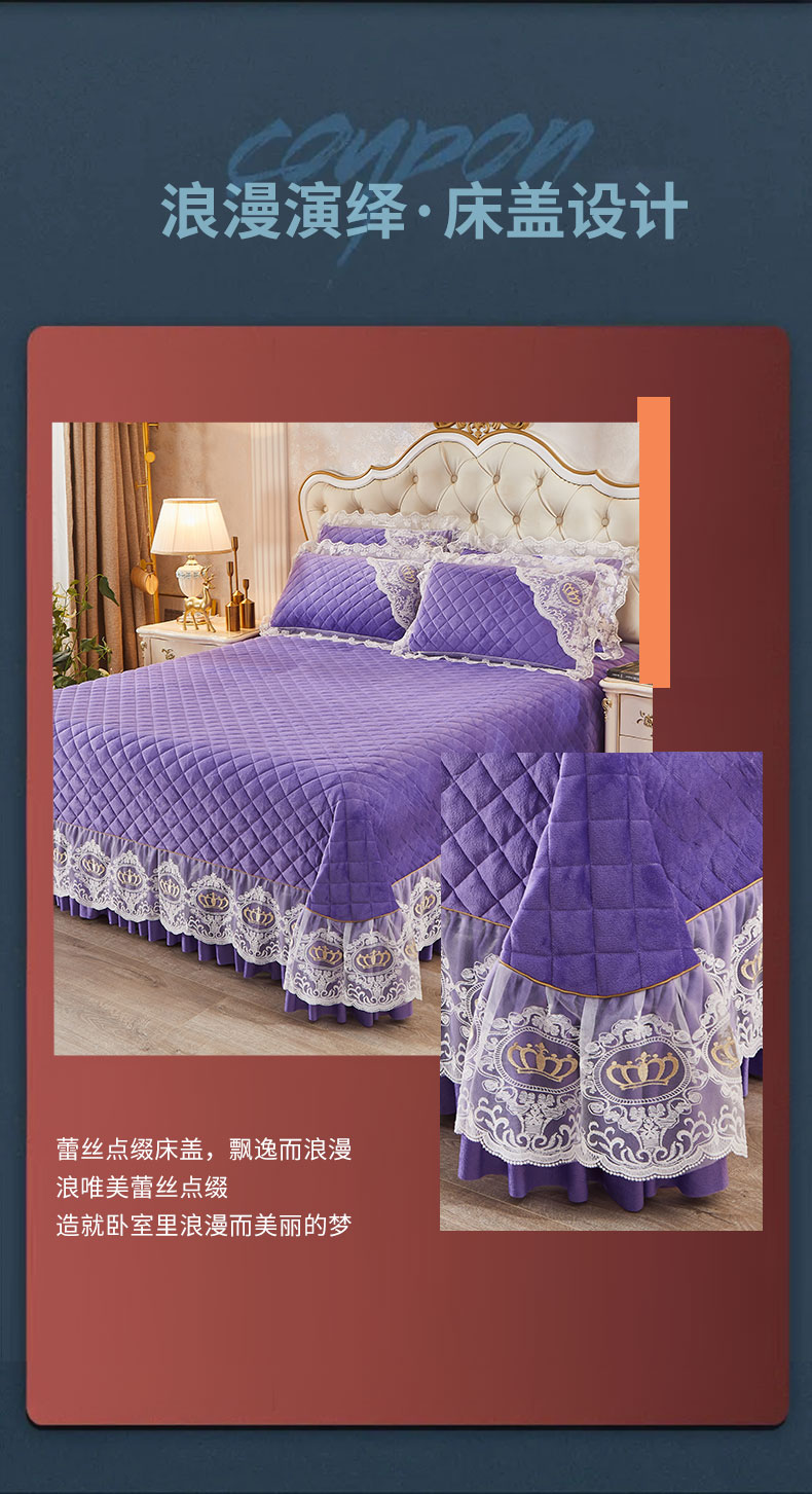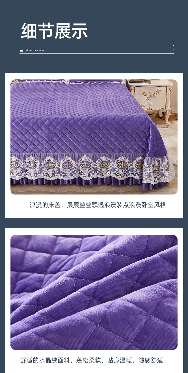商品名称:恋尚 2023新款可脱卸水晶绒夹棉床盖卡雯系列 浪漫紫