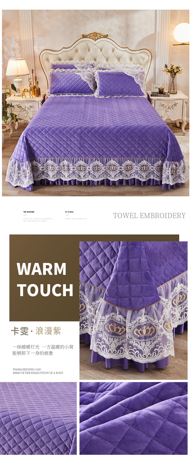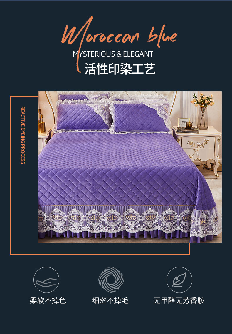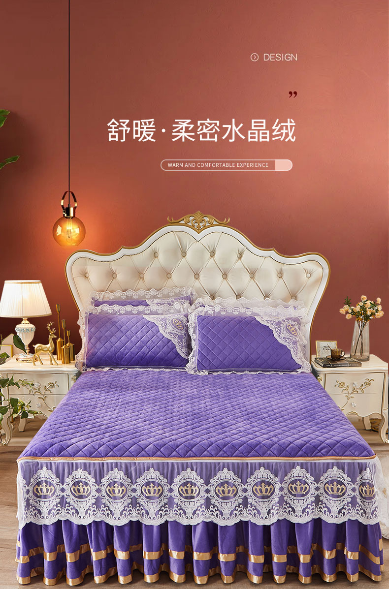 商品名称:恋尚 2023新款可脱卸水晶绒夹棉床盖卡雯系列 浪漫紫