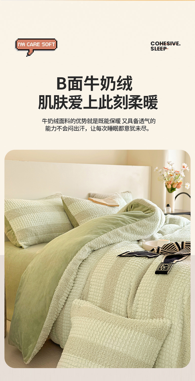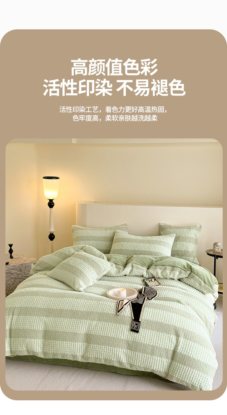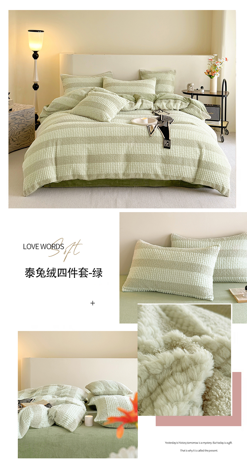 当前位置: 91家纺网 > 商品网购 > 床品套件 > 四件套 > 牛奶绒四件套 > 网客 2024新款泰兔绒牛奶绒四件套 泰兔绒四件套-绿