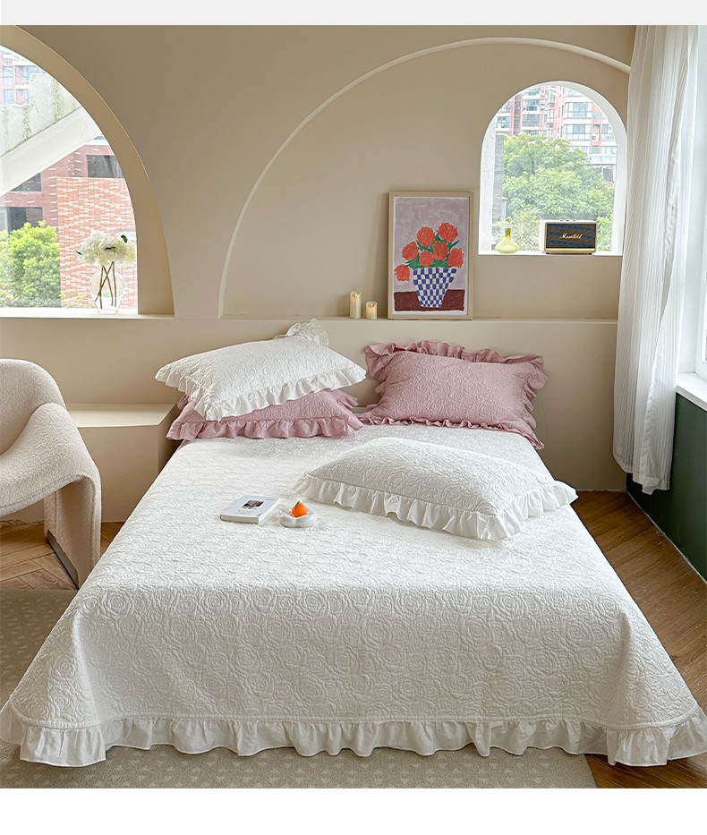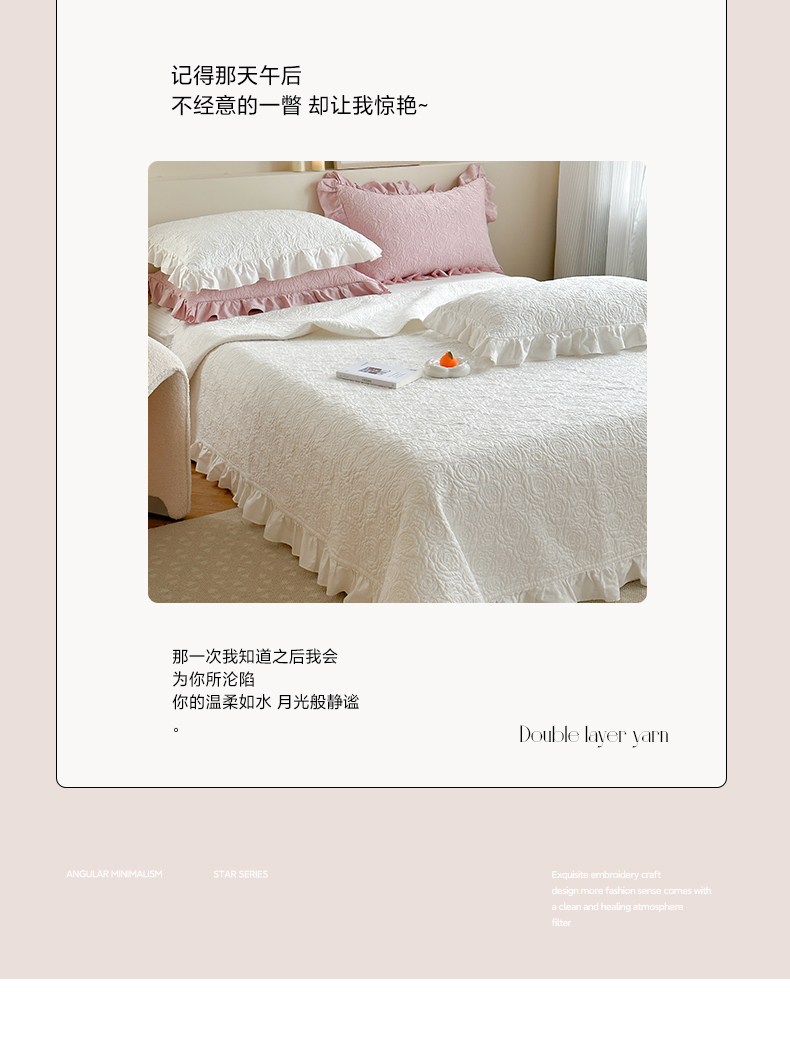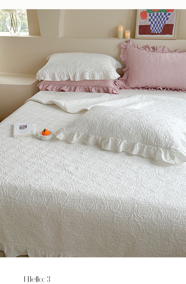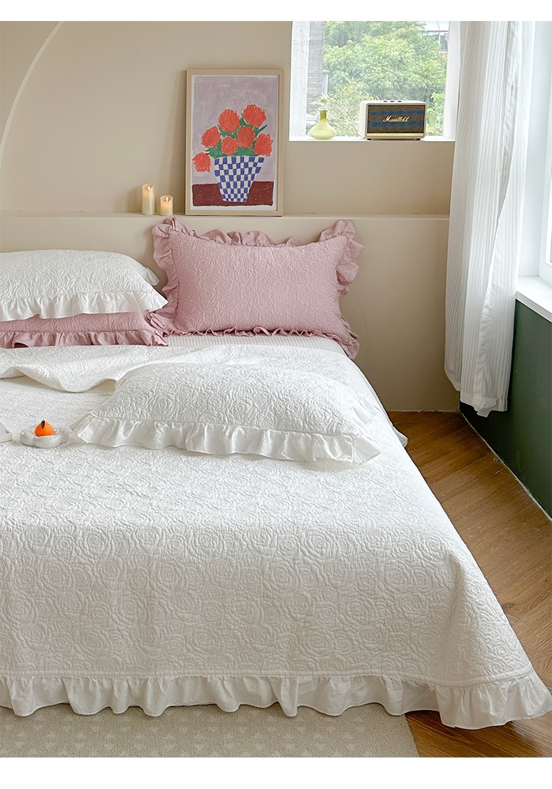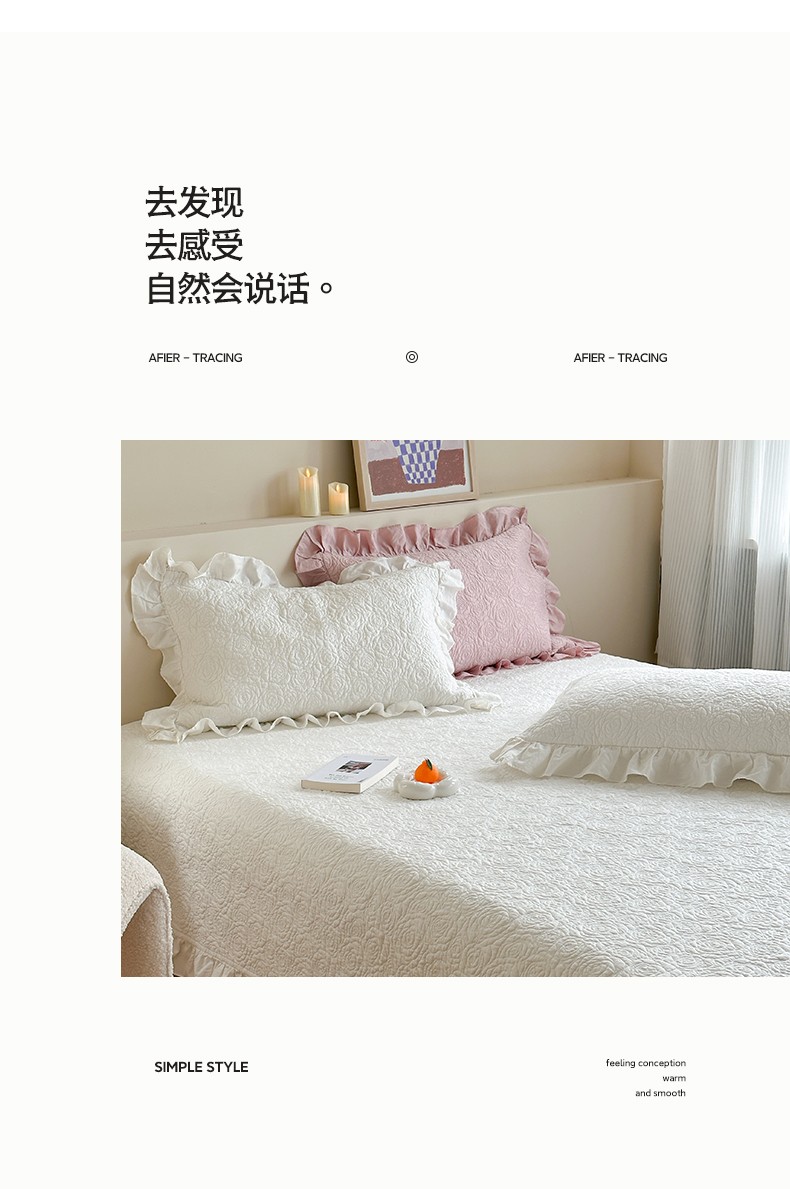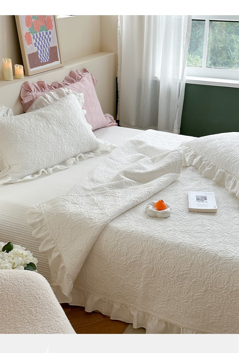 诗黛尔 2023秋冬新款全棉斜纹夹棉床盖花边款-玫瑰花语系列 奶白色