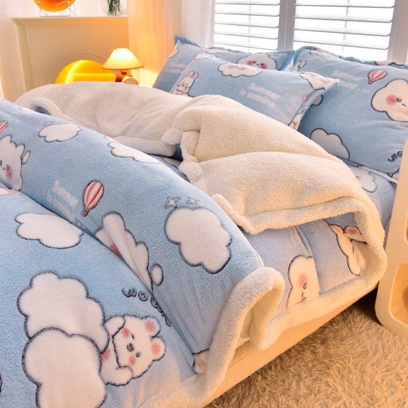 同田家纺 2023年新款雪花绒&羊羔绒四件套 晴天之旅