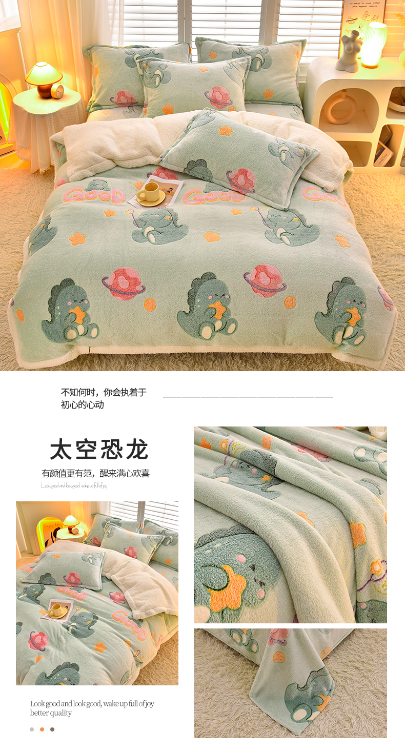 商品名称:同田家纺 2023年新款雪花绒&羊羔绒毛毯 太空恐龙