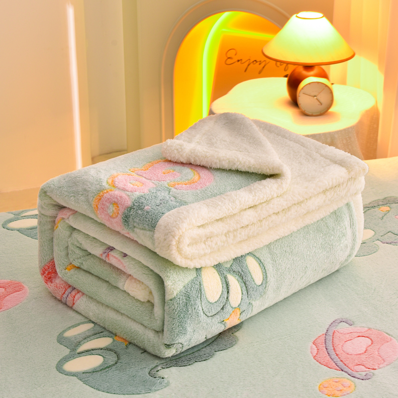 同田家纺 2023年新款雪花绒&羊羔绒毛毯 太空恐龙