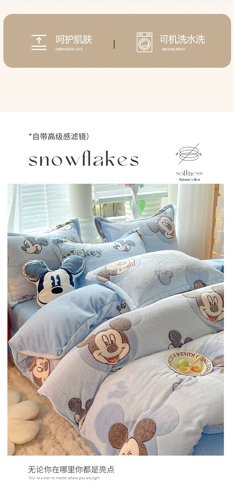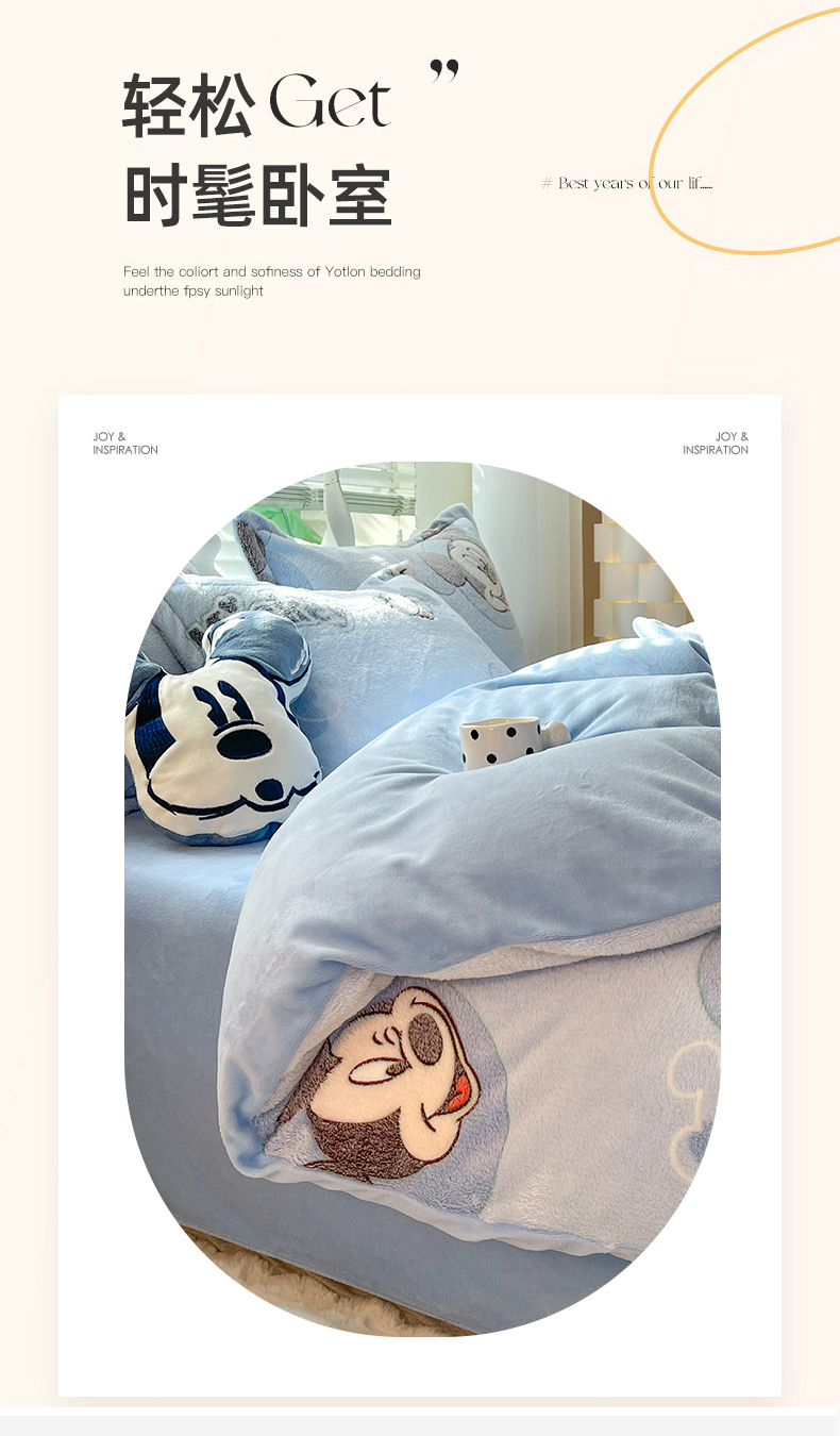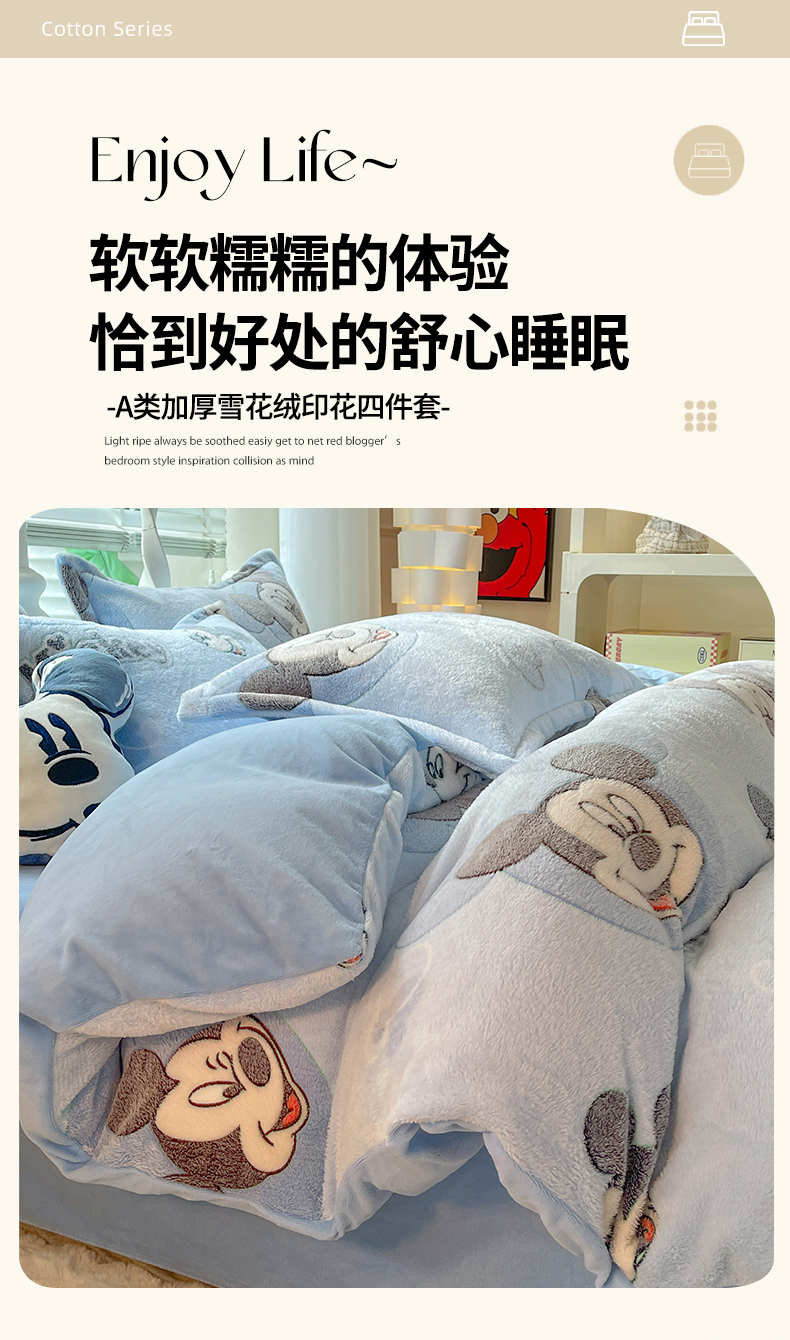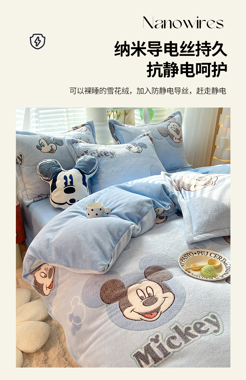 当前位置: 91家纺网 > 商品网购 > 床品套件 > 四件套 > 全棉普通四件套 > 妖妖家纺 2023新款妖妖雪花绒单品三四件套 心动米奇
