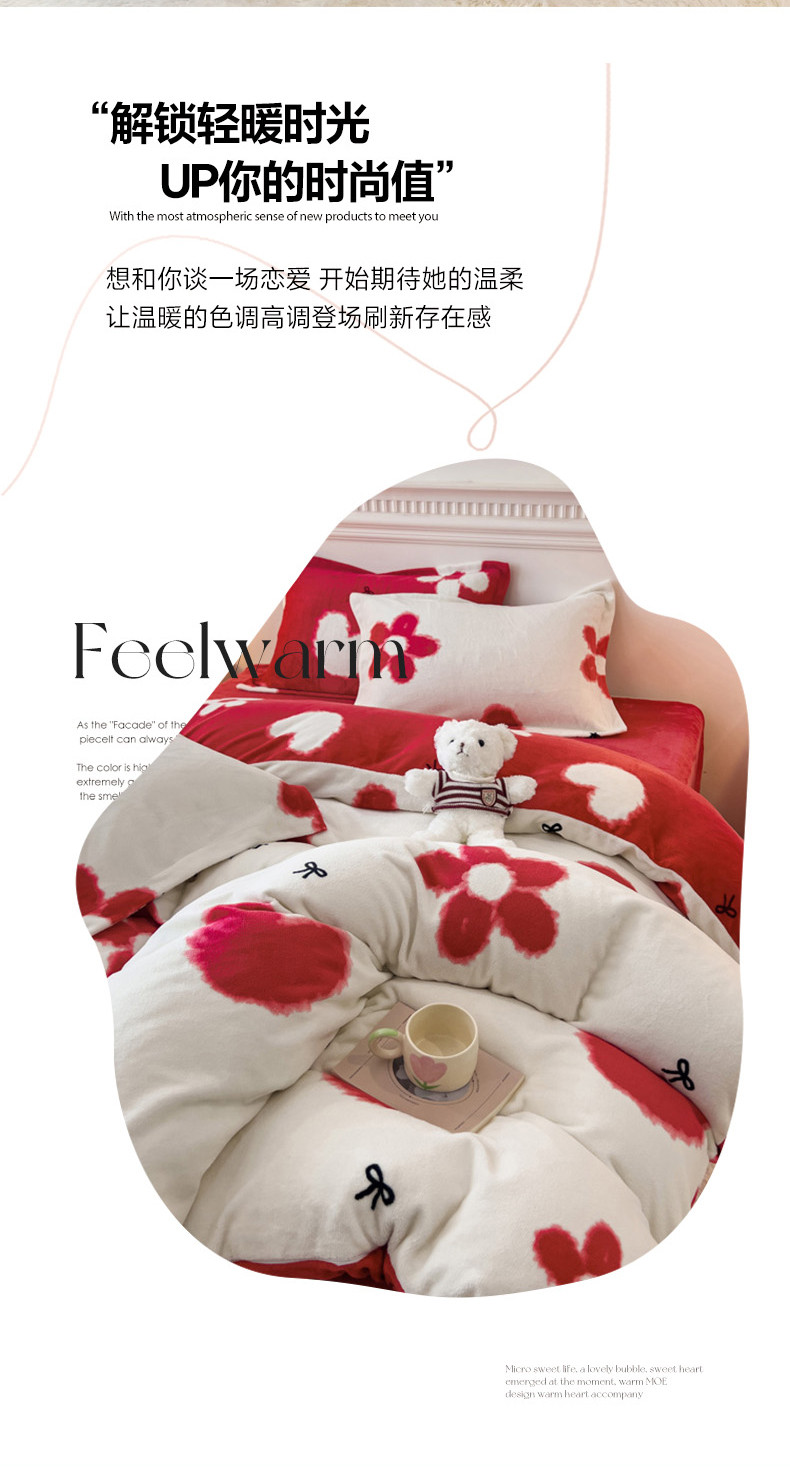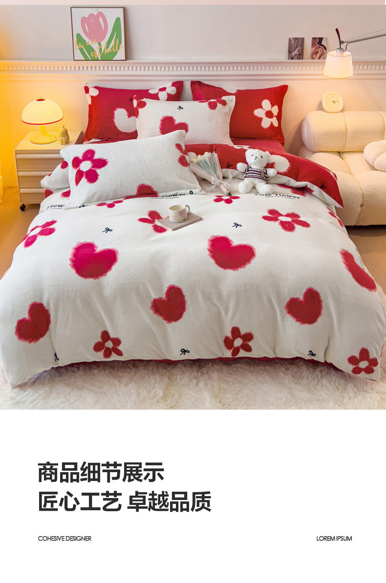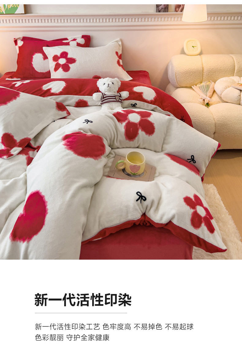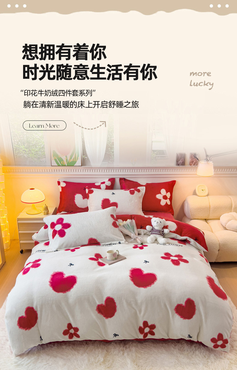 (总)宜家坊 2023新款直播韩版印花花边款牛奶绒四件套,比格熊,草莓兔,春暖花开,告白,加油鸭,流星花园,萌萌熊,牛油果,千鸟格,小女孩,一见倾心,郁金香
