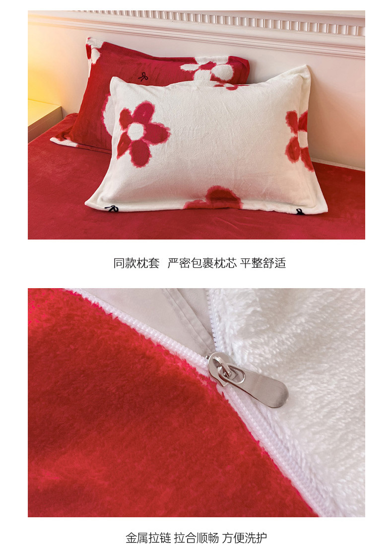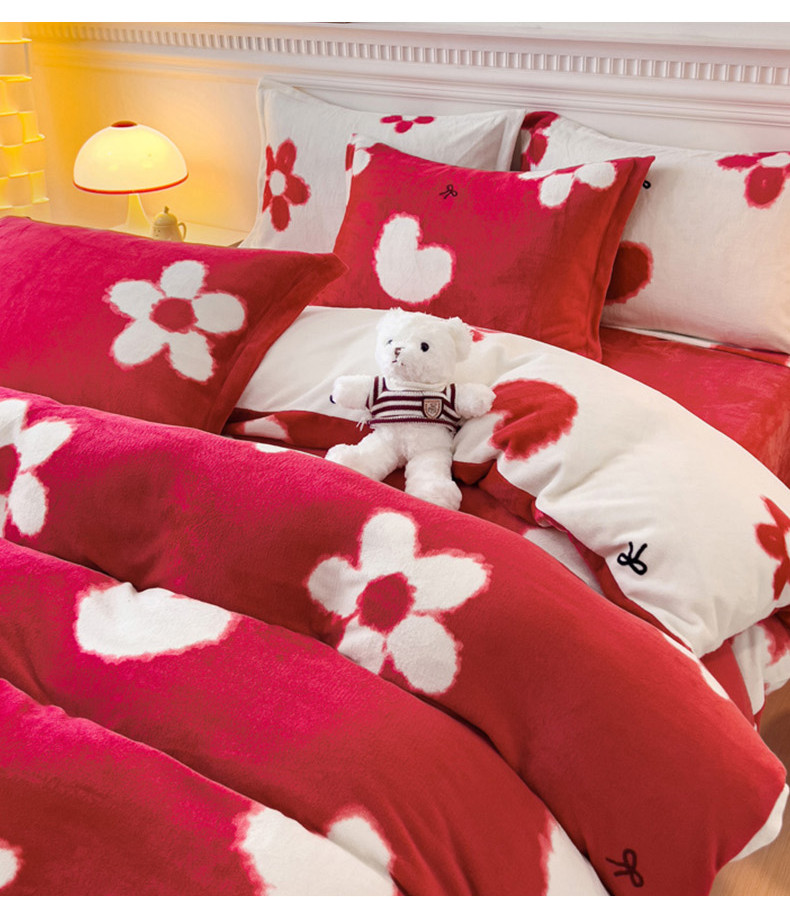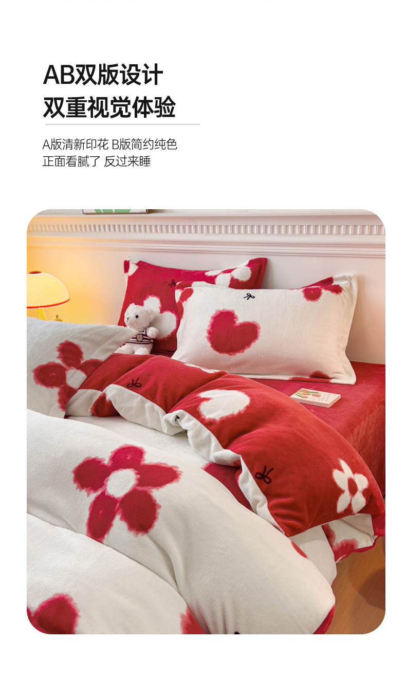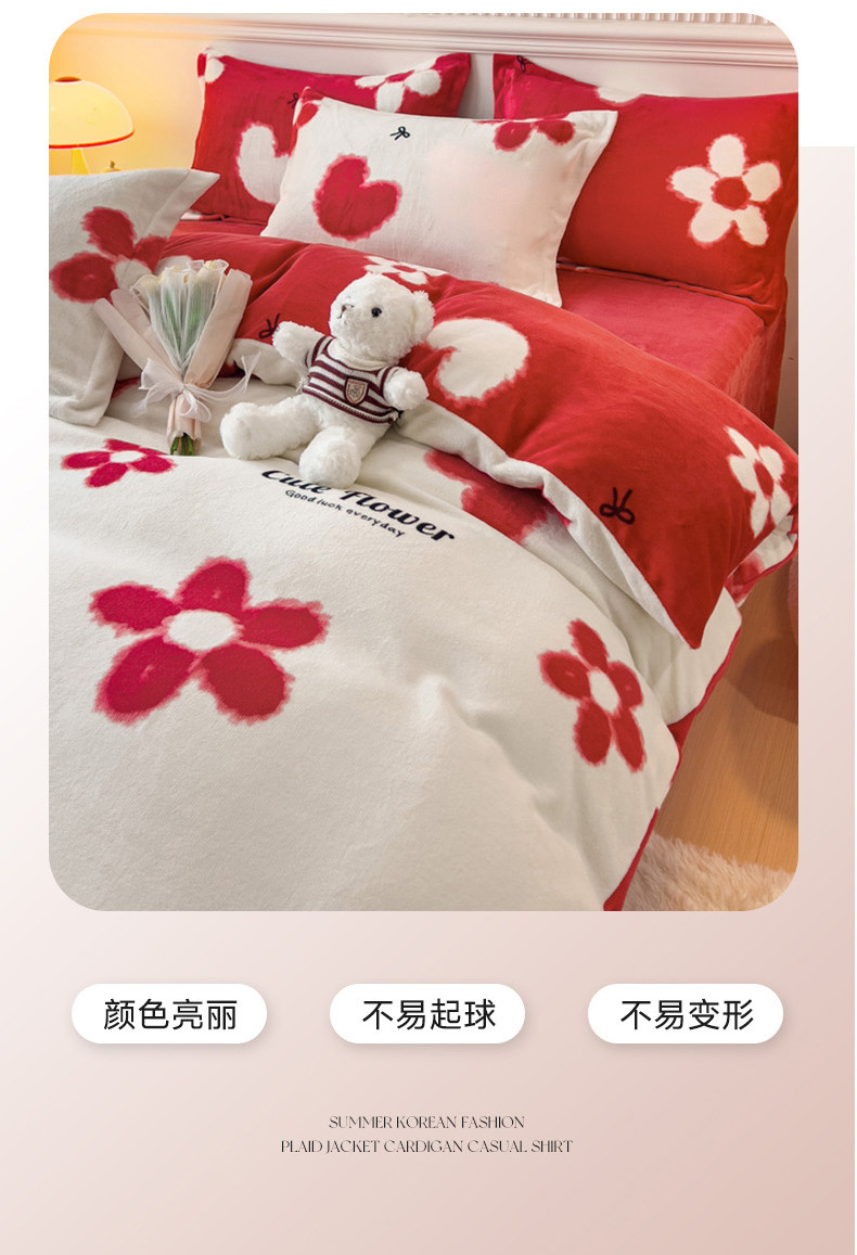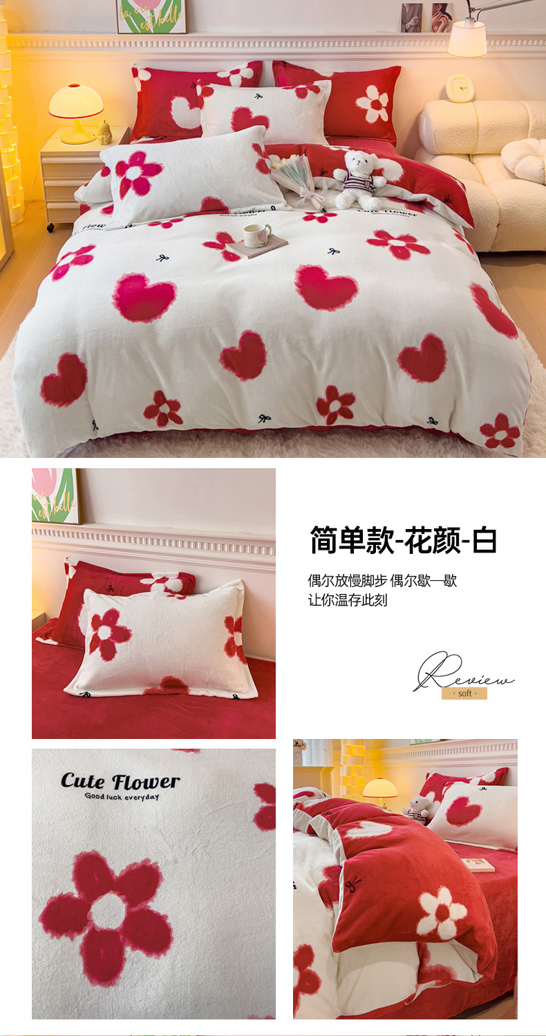 商品名称:宜家坊 2023新款小清新加厚印花牛奶绒四件套 简单款-花颜-白