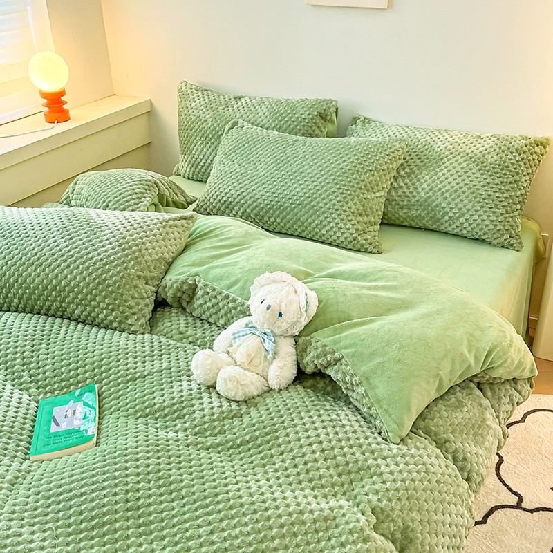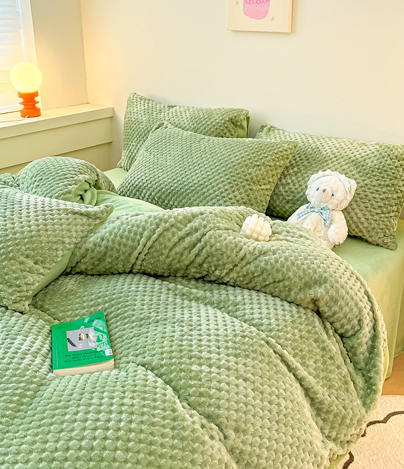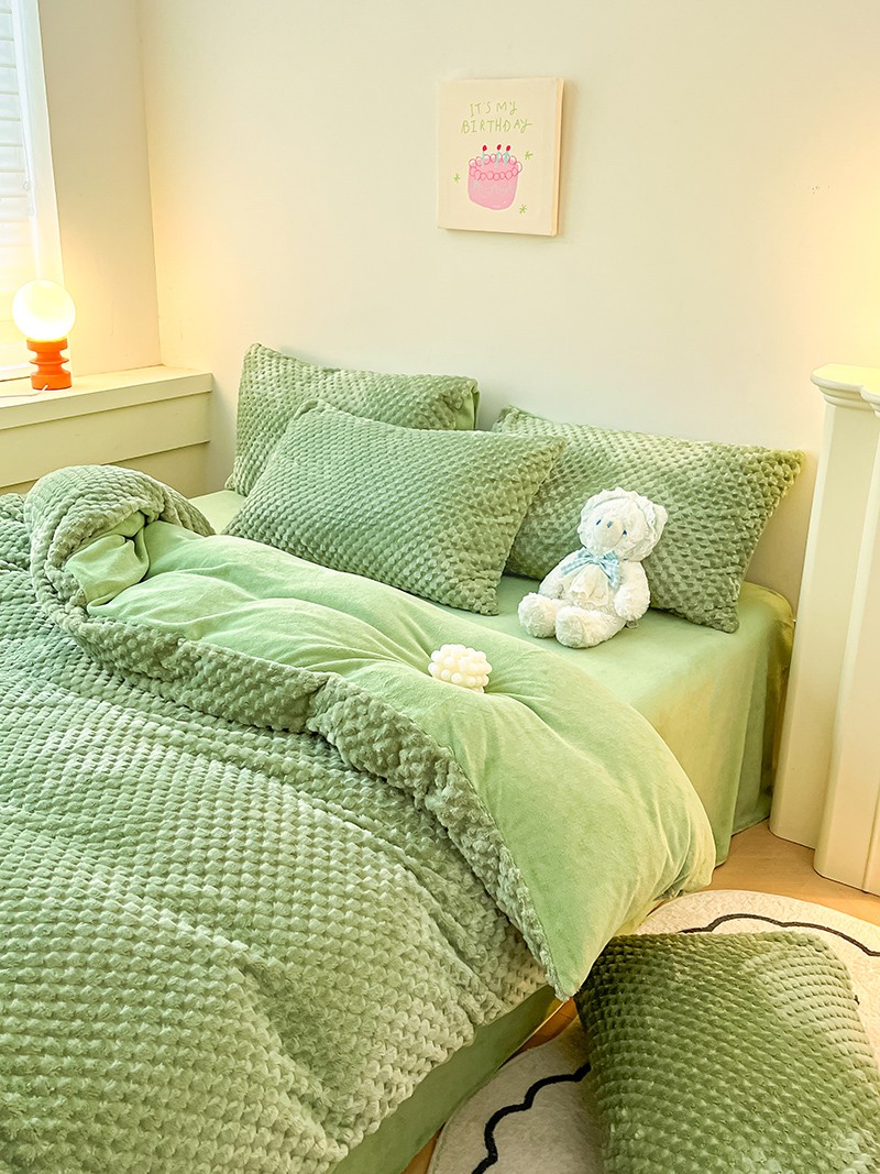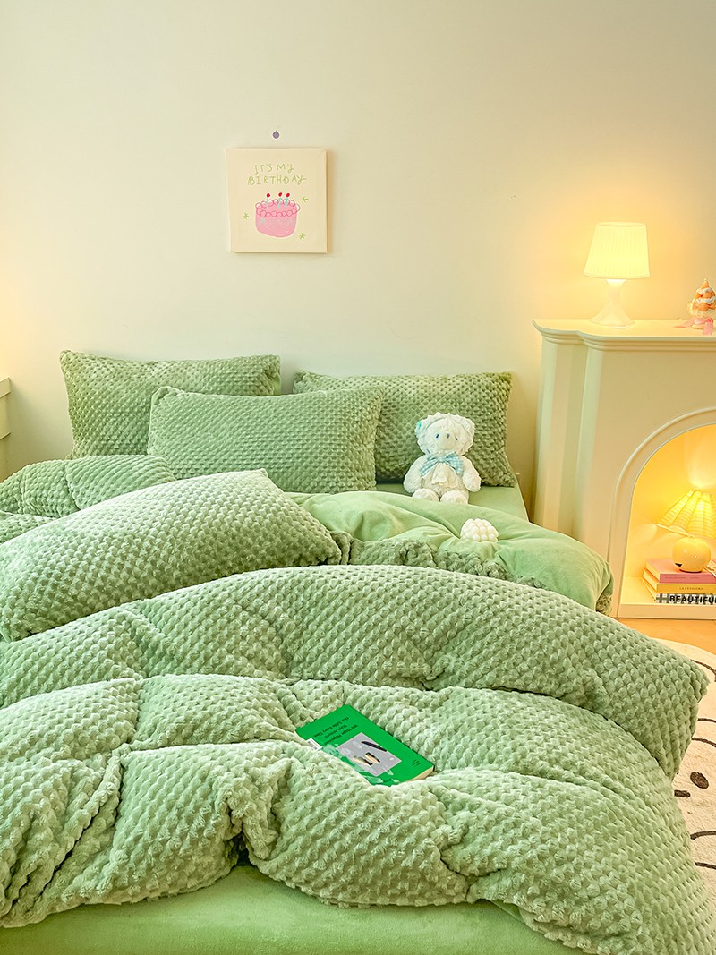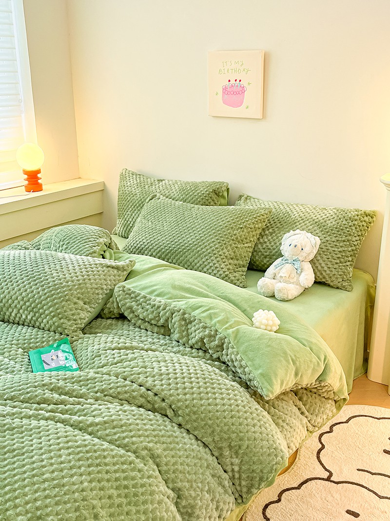 澳梵家居 2023新款印花豆豆绒牛奶绒四件套 豆豆草绿