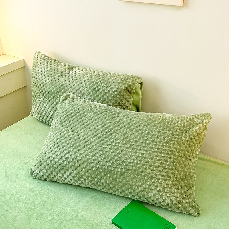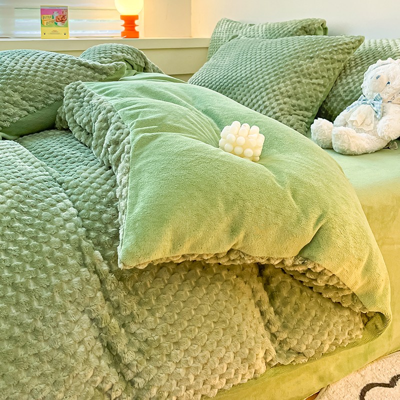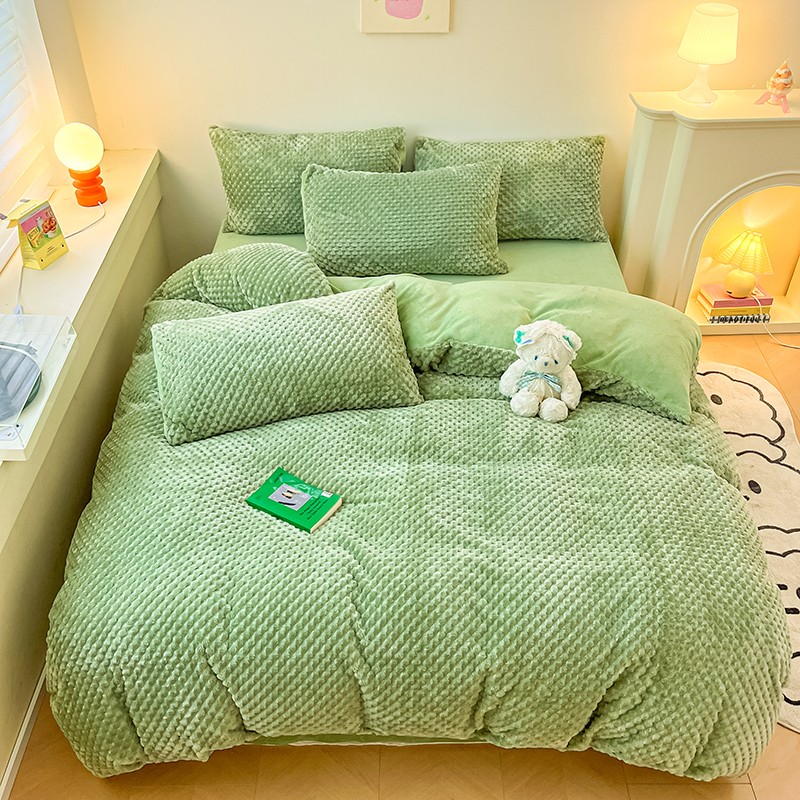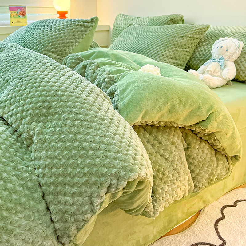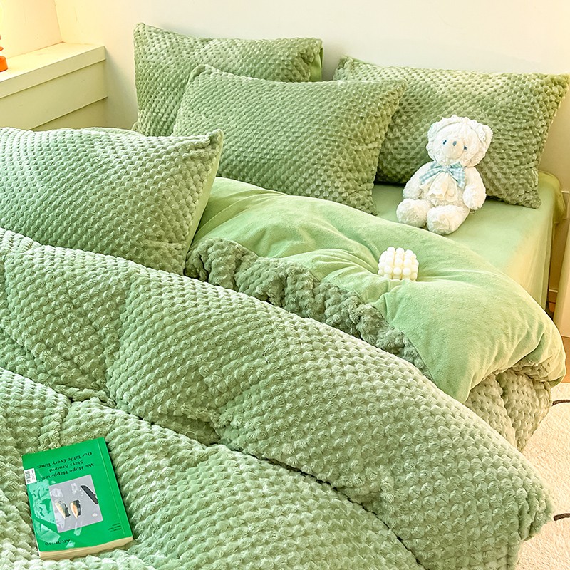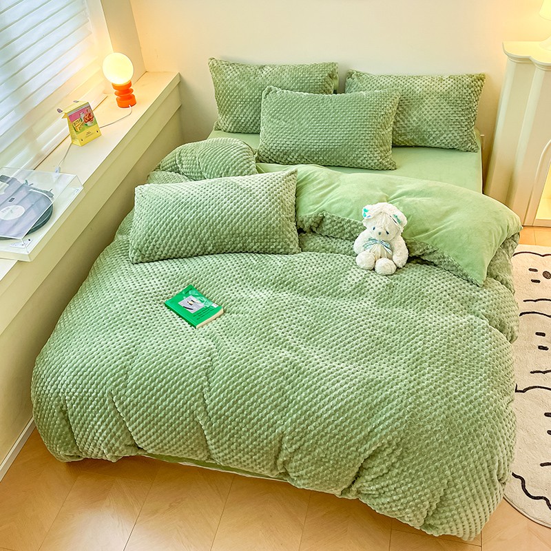 澳梵家居 2023新款印花豆豆绒牛奶绒四件套 豆豆草绿