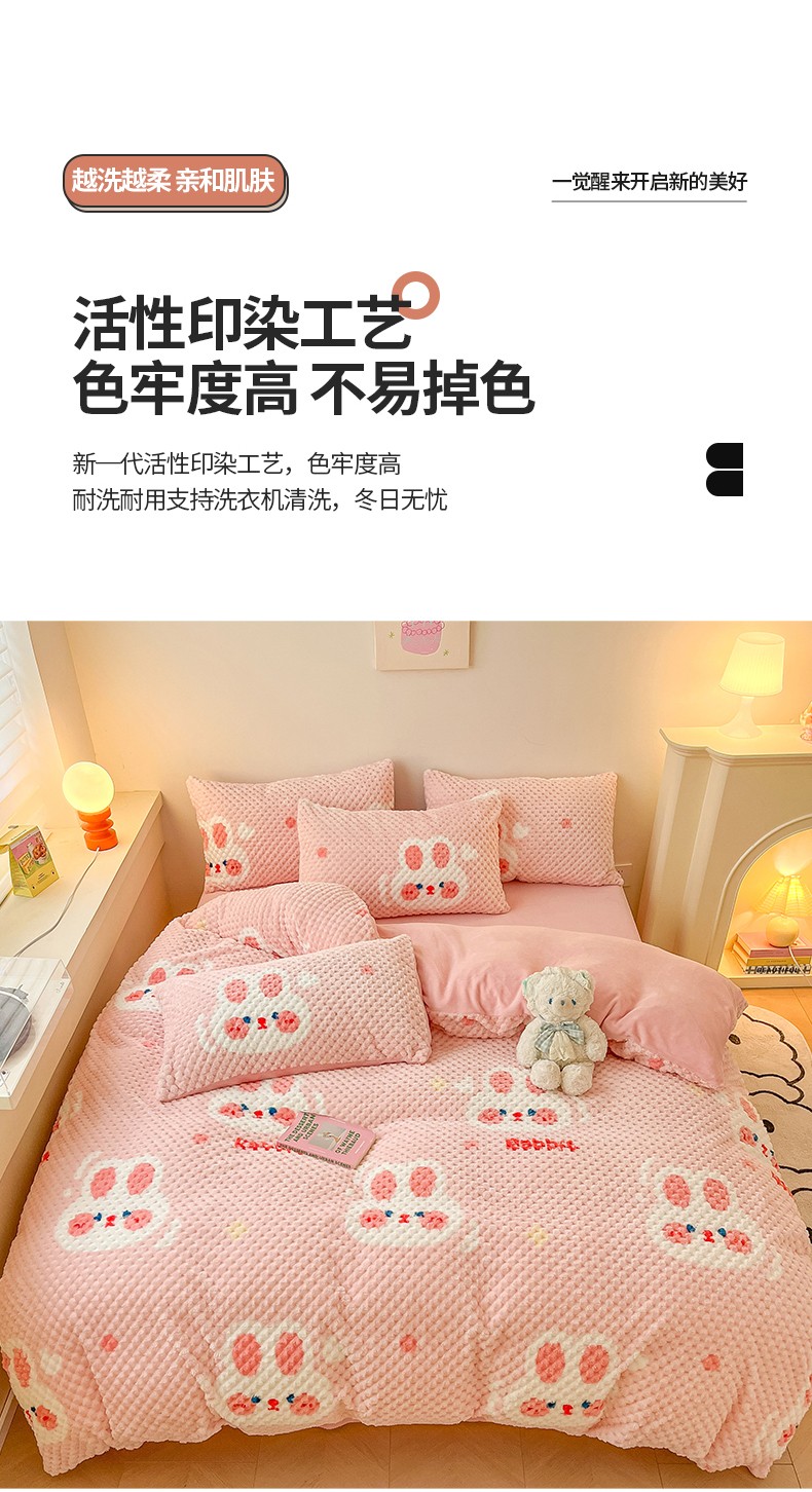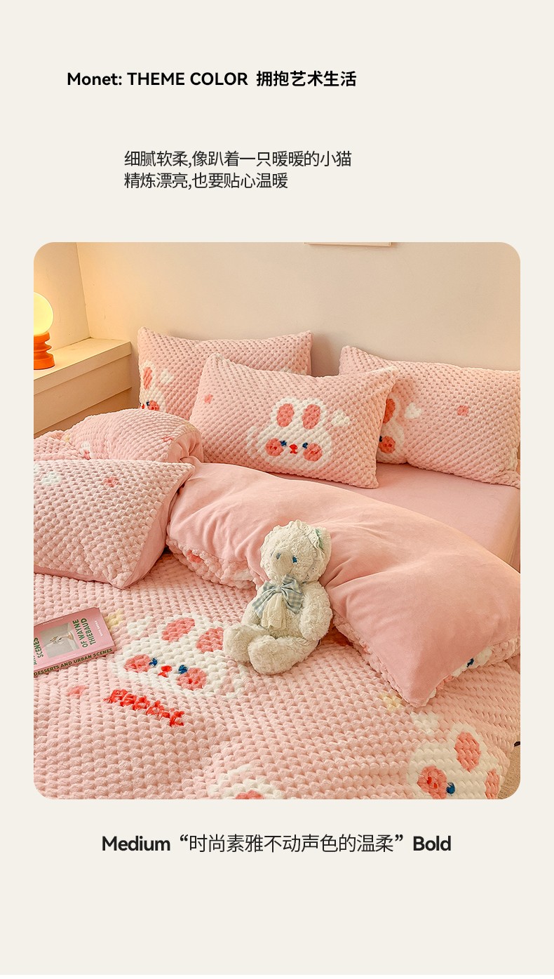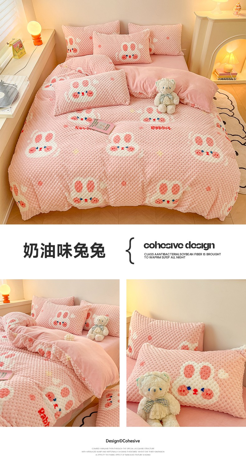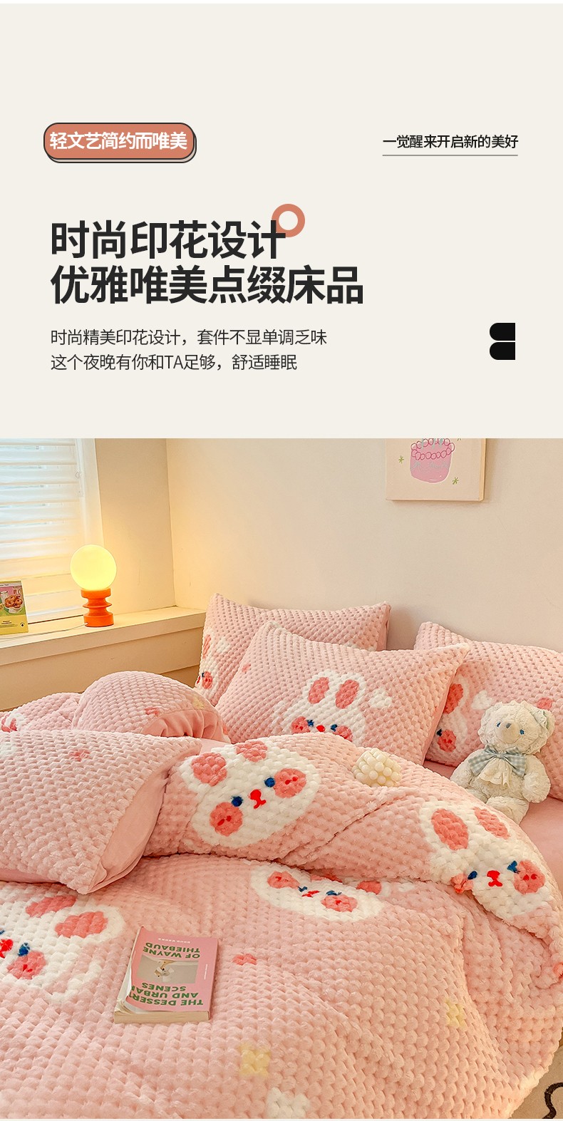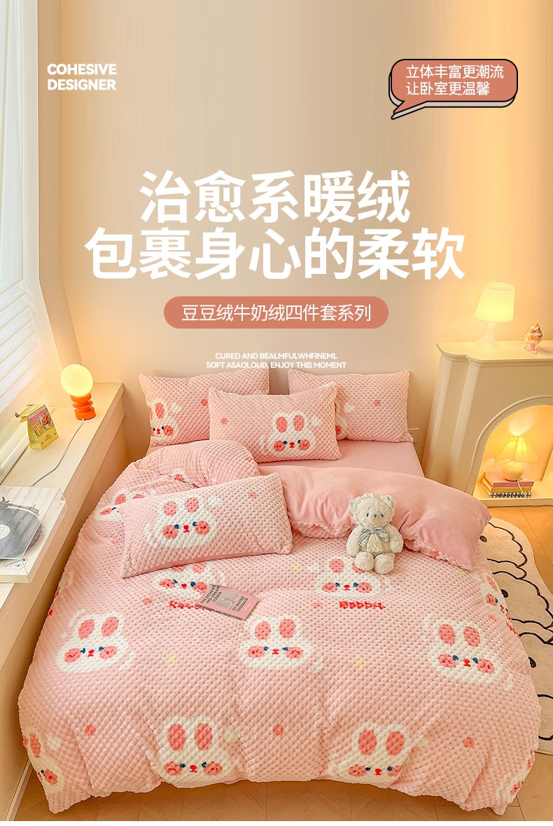 澳梵家居 2023新款印花豆豆绒牛奶绒四件套 奶油味兔兔