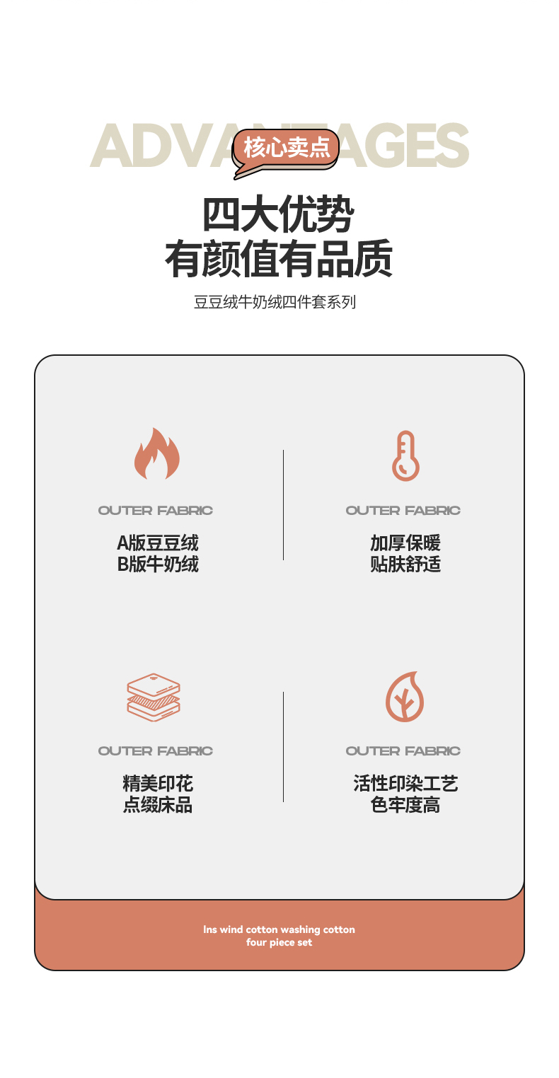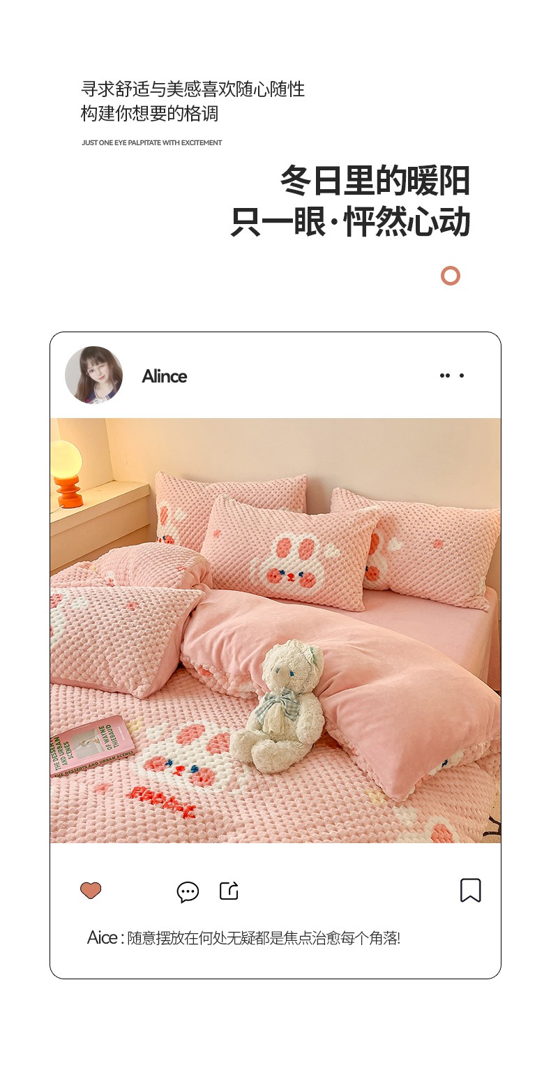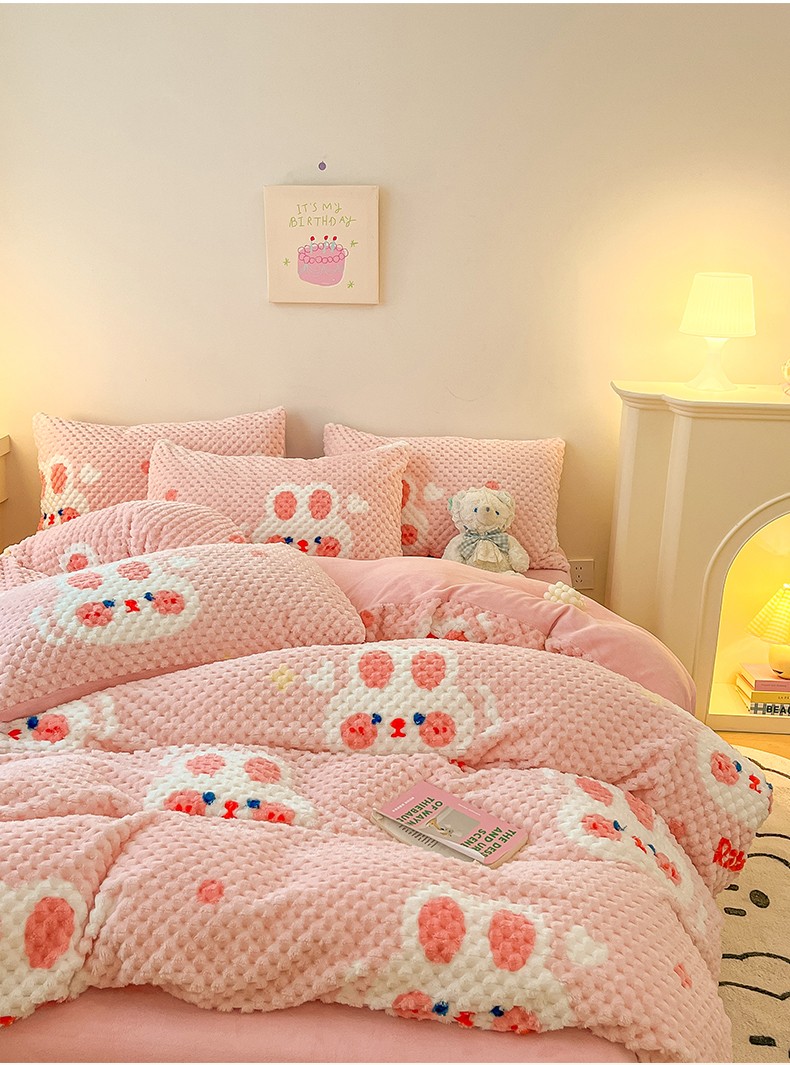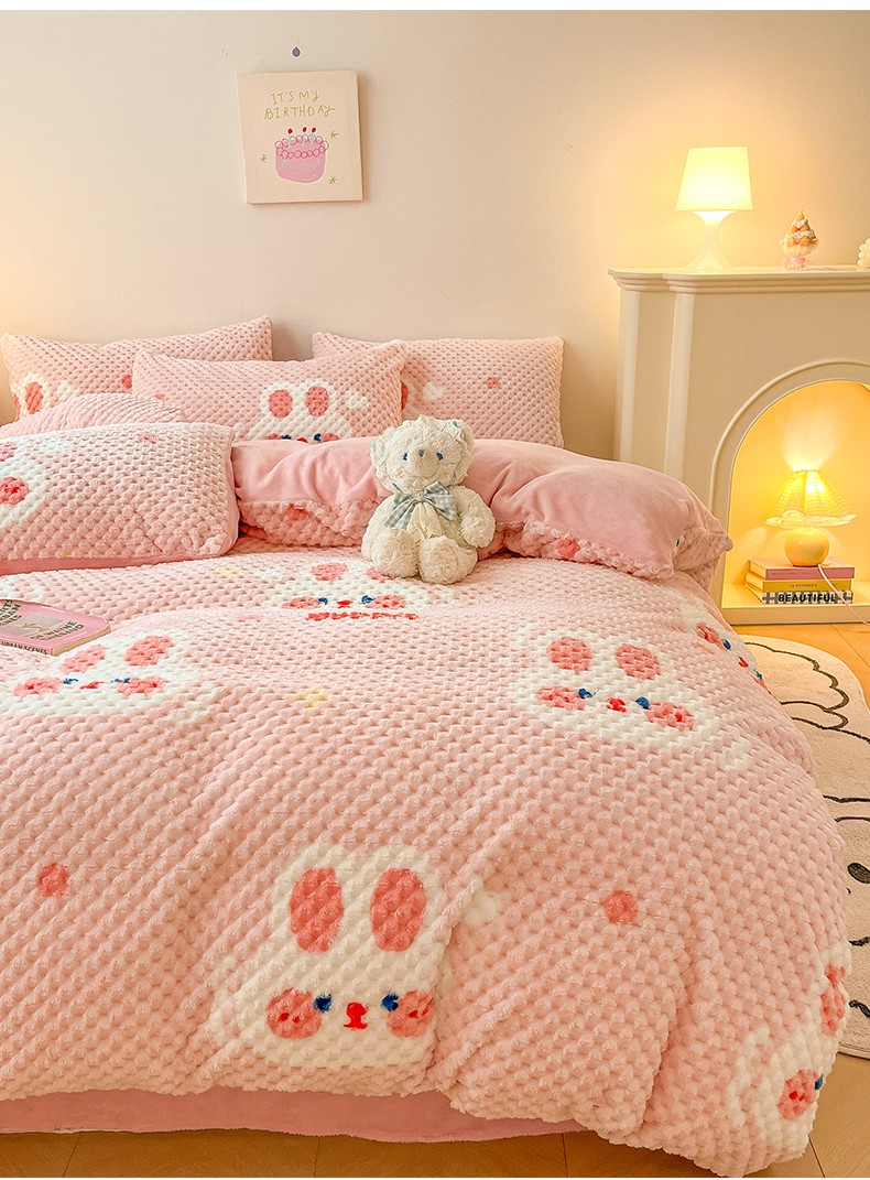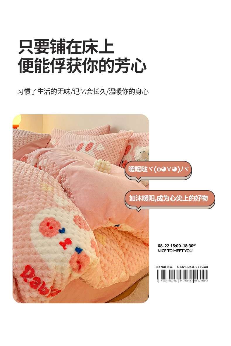 澳梵家居 2023新款印花豆豆绒牛奶绒四件套 奶油味兔兔
