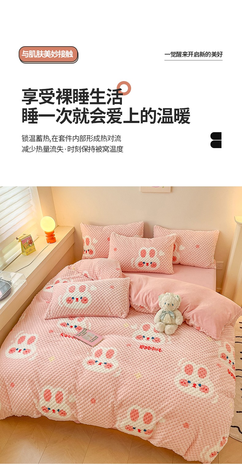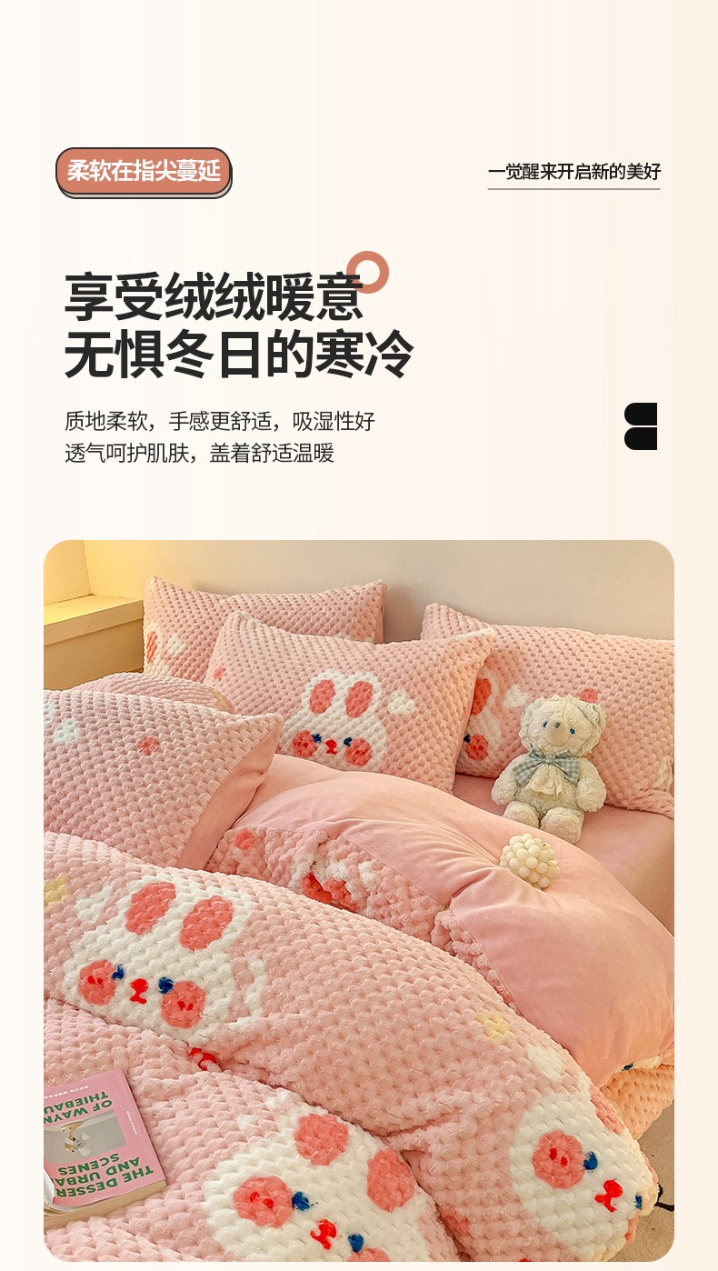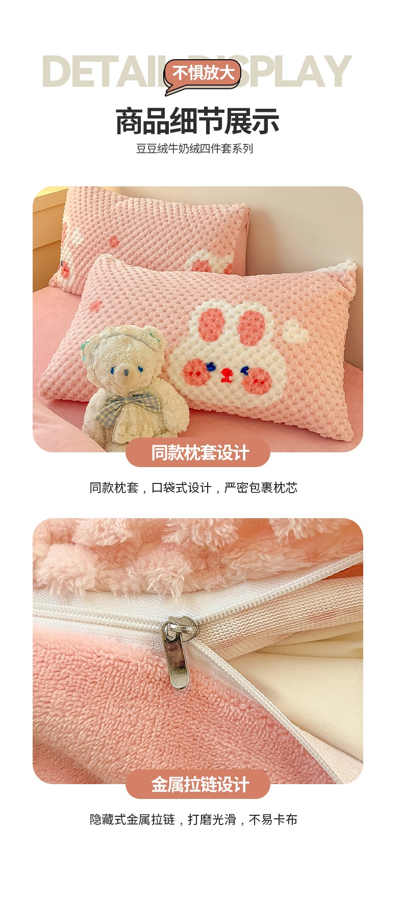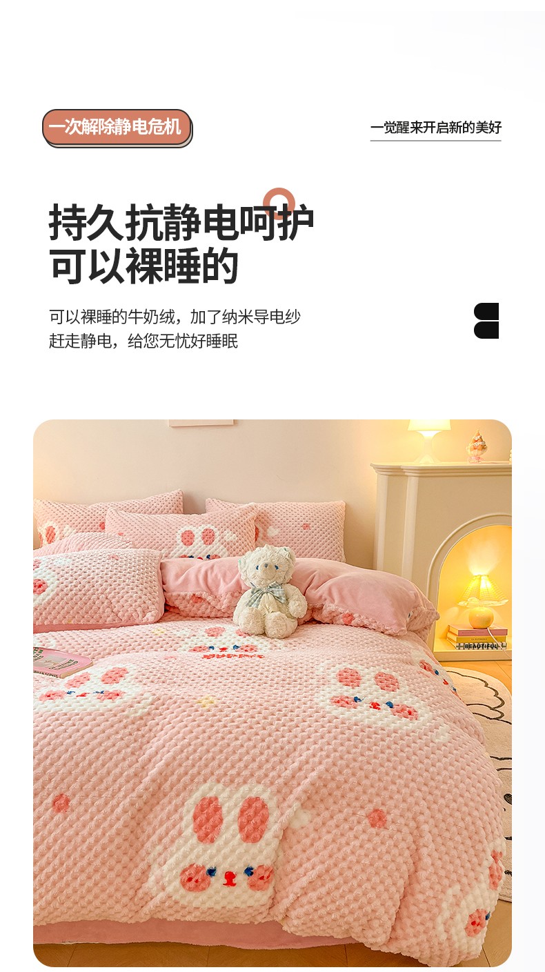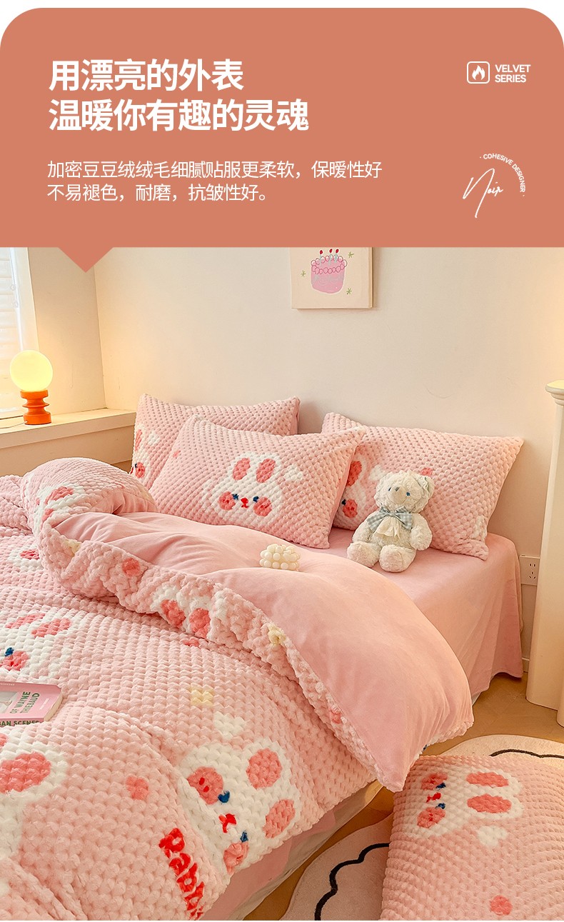 商品名称:澳梵家居 2023新款印花豆豆绒牛奶绒四件套 奶油味兔兔