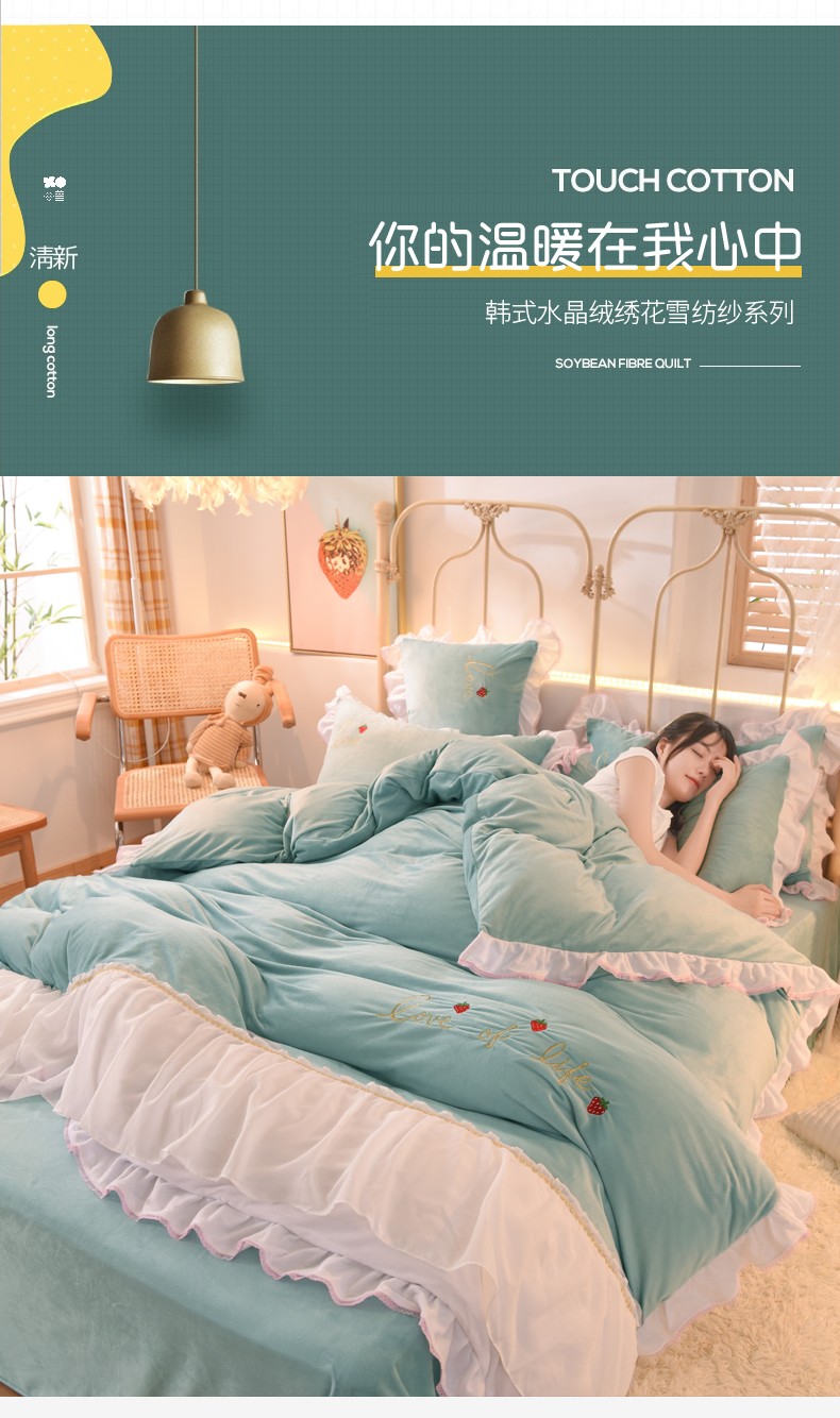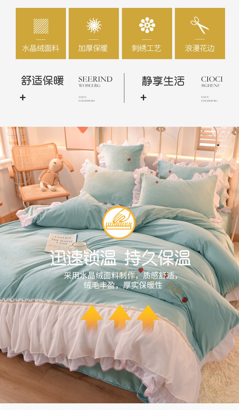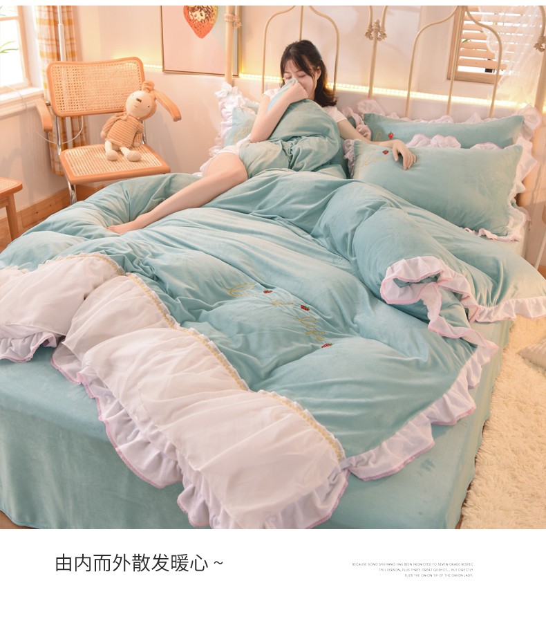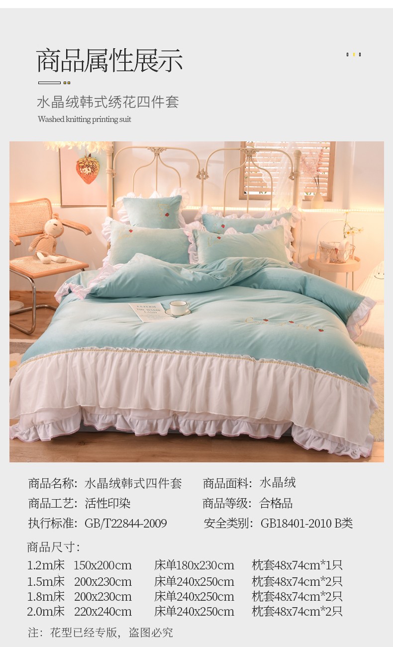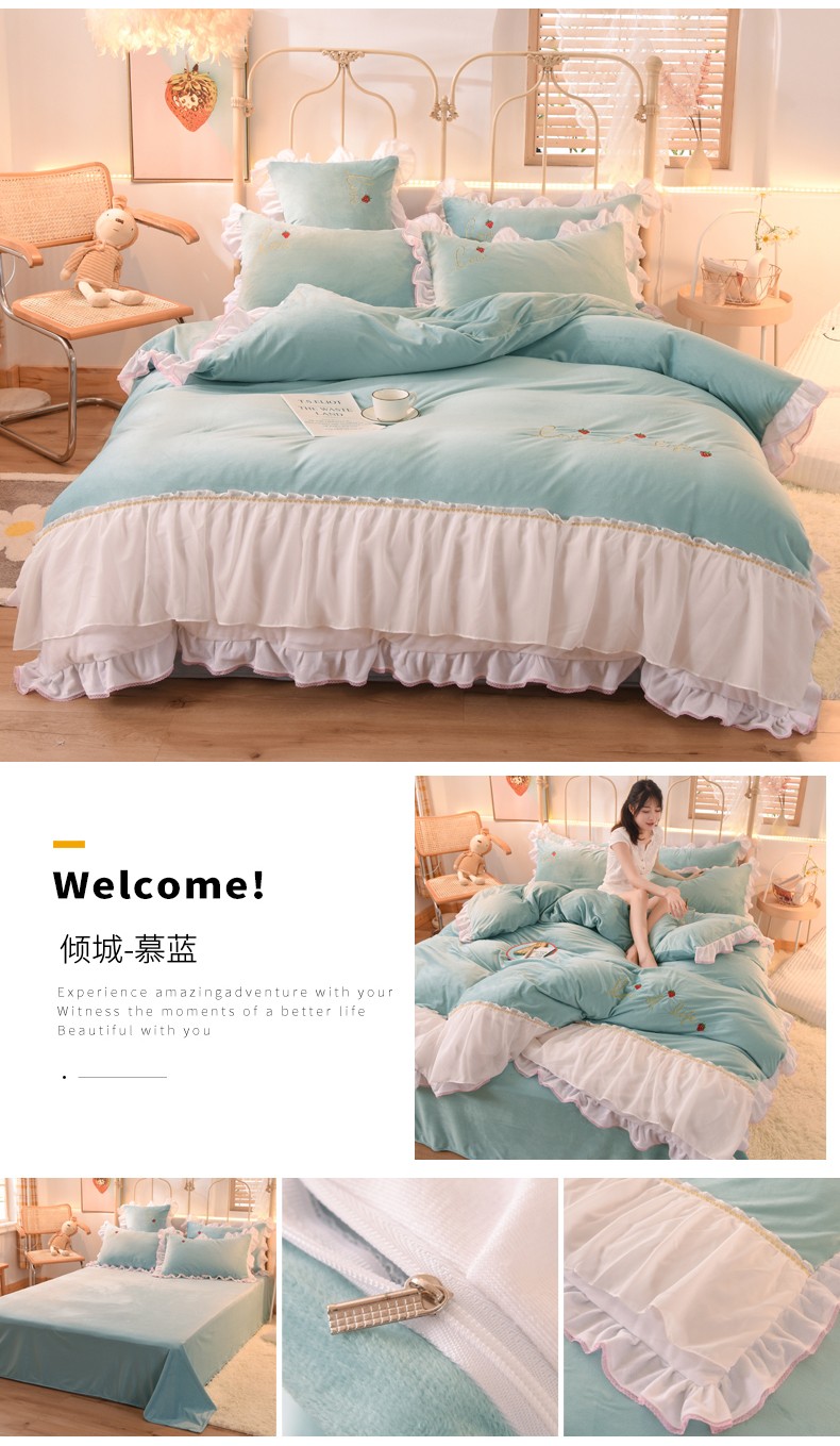 商品名称:欧冠 2023公主风倾城牛奶绒四件套 倾城-慕蓝