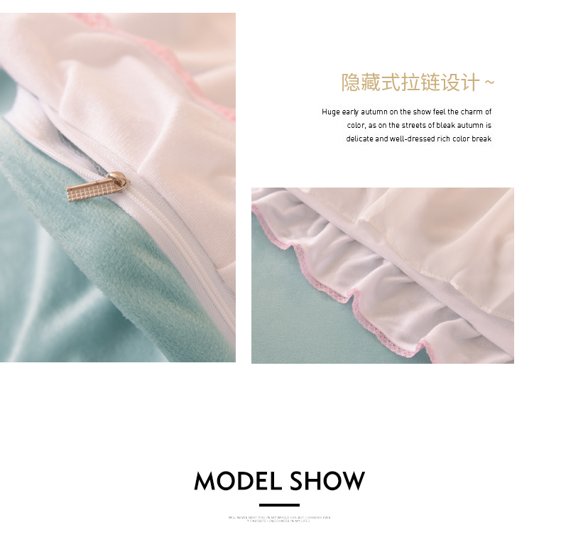 欧冠 2023公主风倾城牛奶绒四件套 倾城-慕蓝