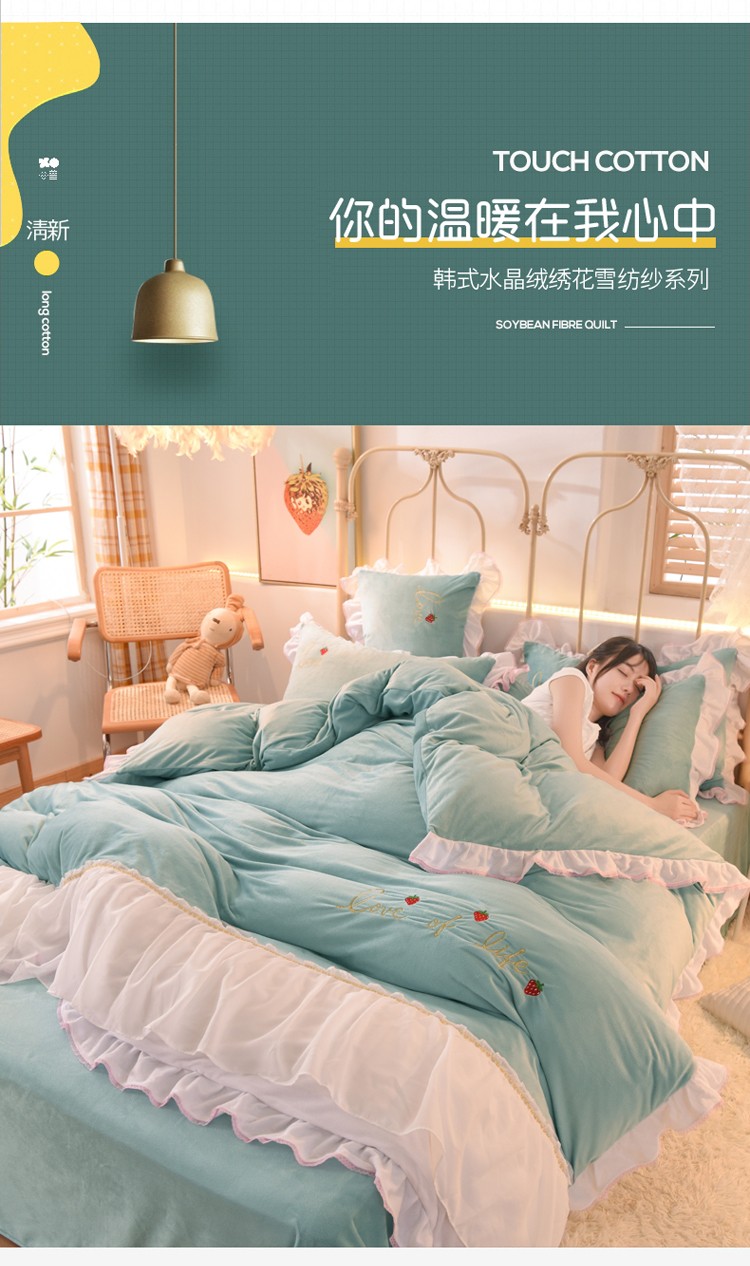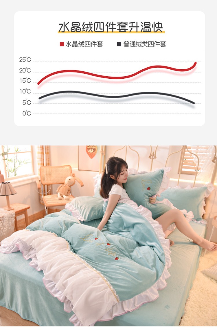 商品名称:2023新款公主风倾城牛奶绒四件套 倾城-慕蓝