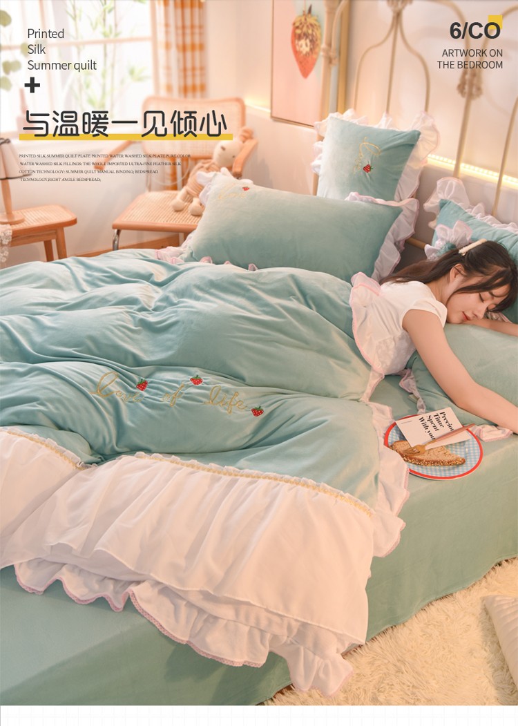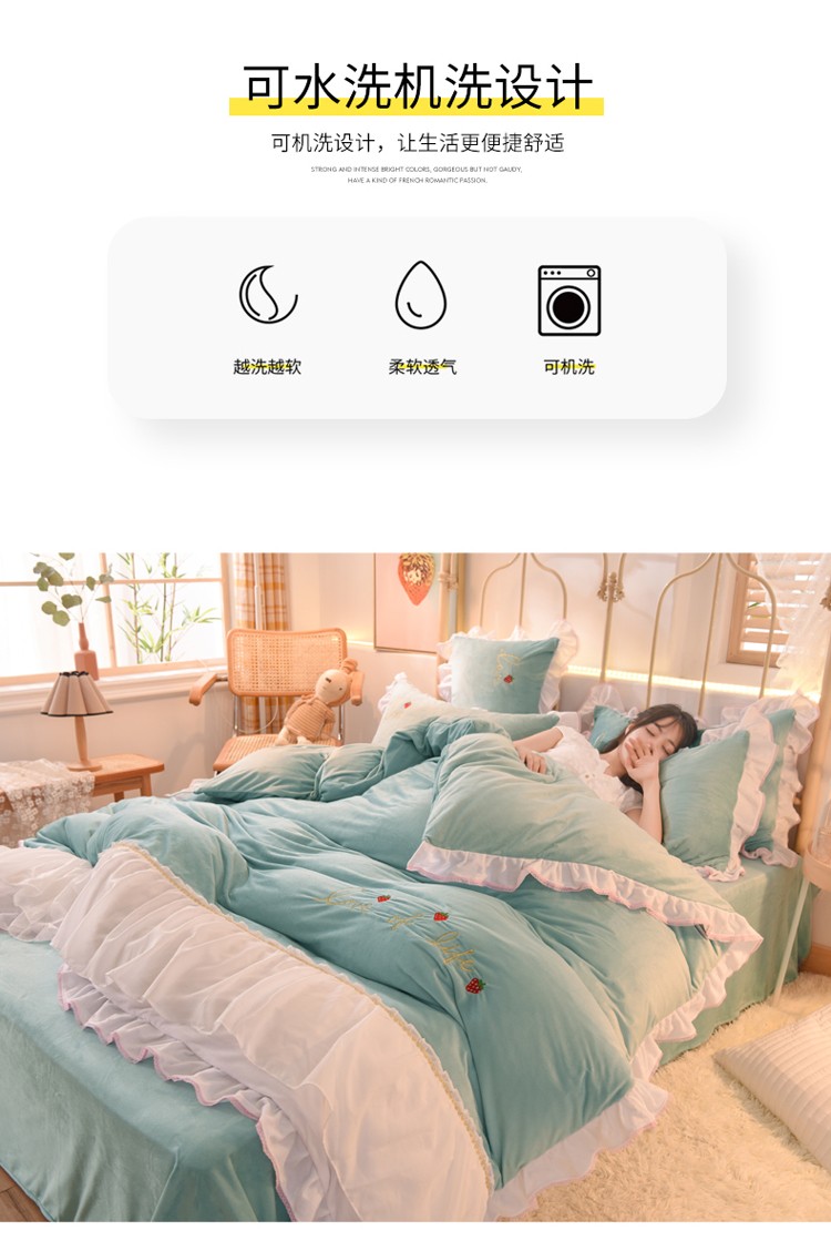 (总)丝印良品 2025新款加厚牛奶绒刺绣床裙款四件套,草莓-奶白粉,草莓-奶白,草莓-湖水蓝,草莓-落樱粉,草莓-薰衣紫