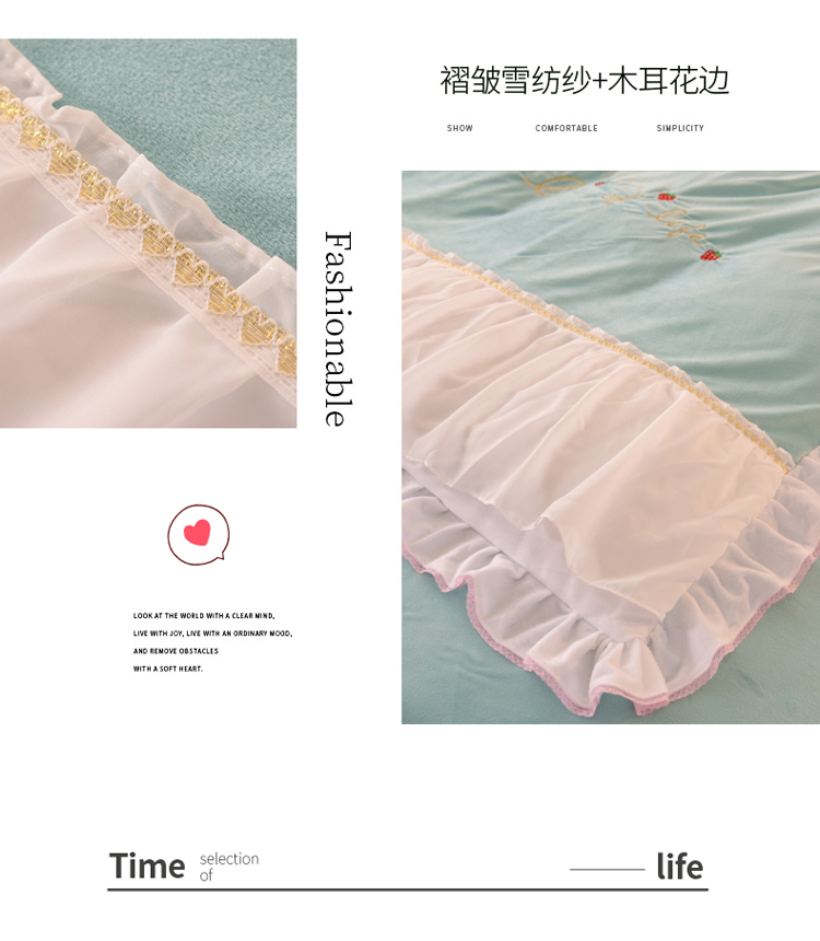 2023新款公主风倾城牛奶绒四件套 倾城-慕蓝