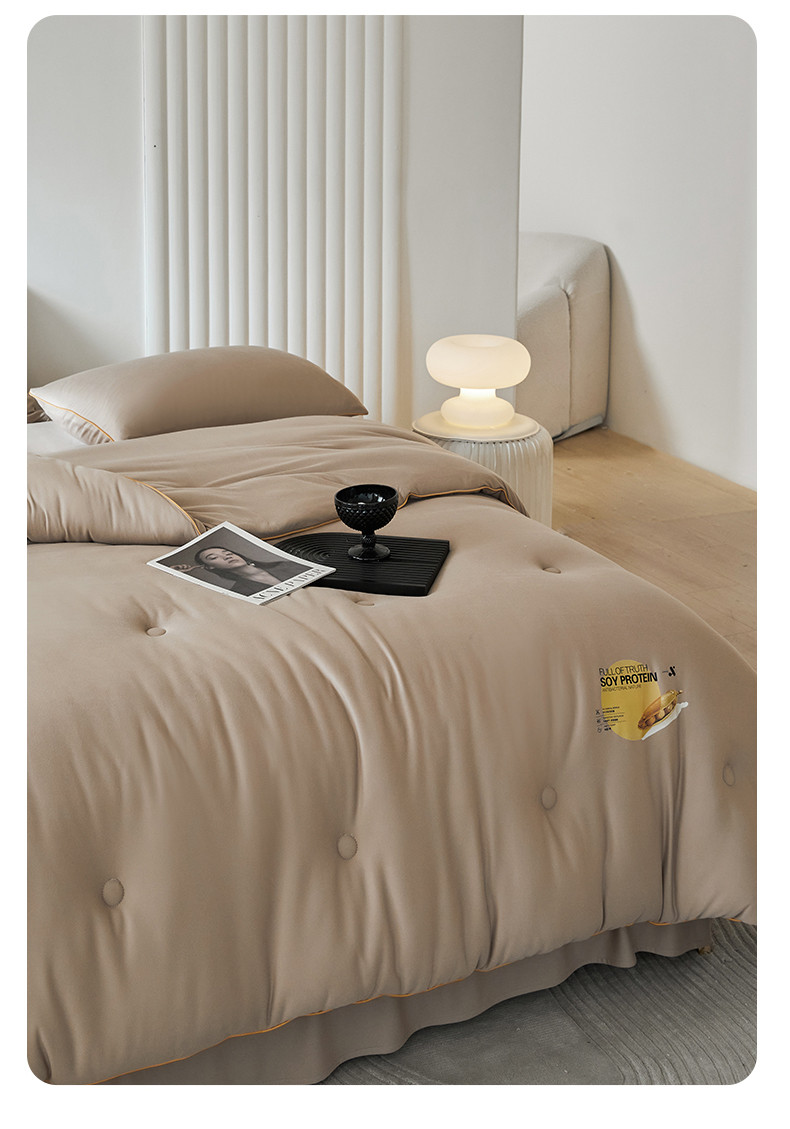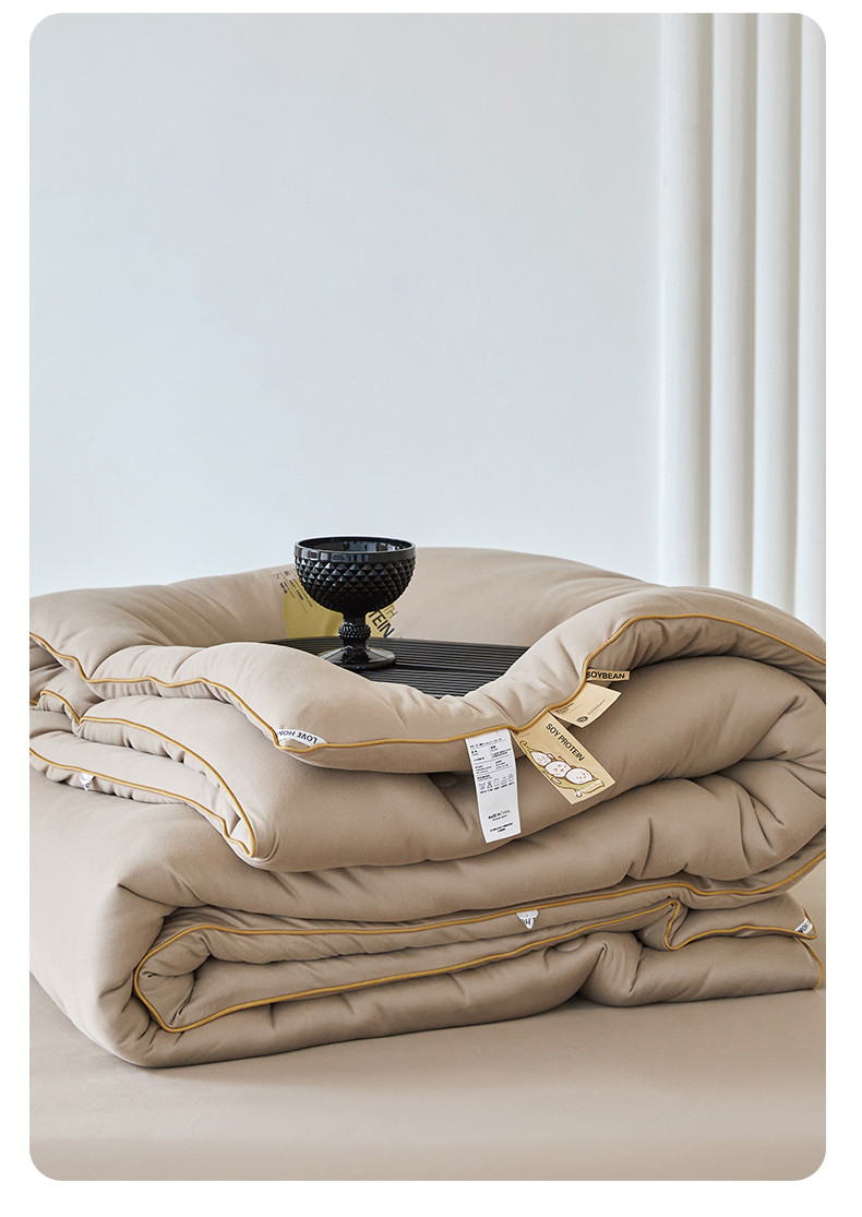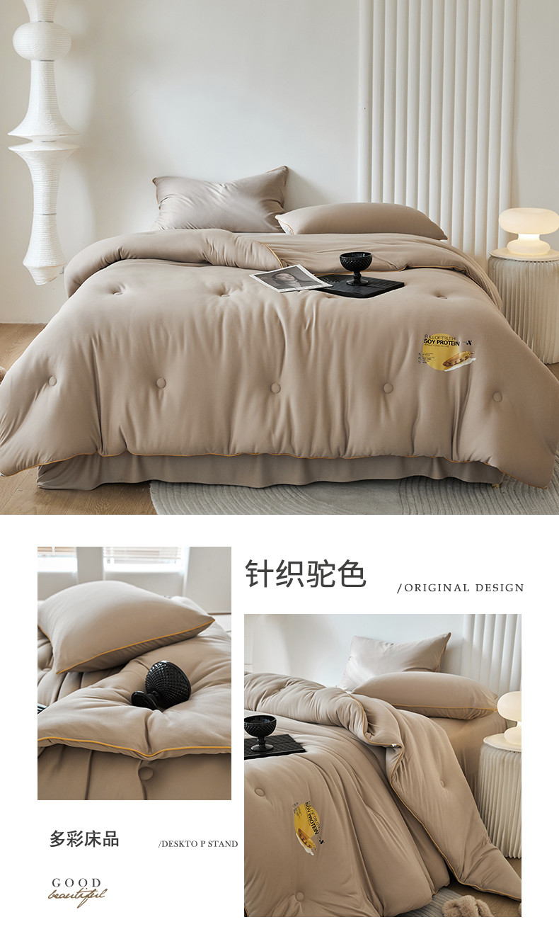 • 91家纺网 家纺一手货源 找家纺 头等舱 2023新款云柔针织A类20大豆抗菌秋冬被(拍摄2) 针织驼色