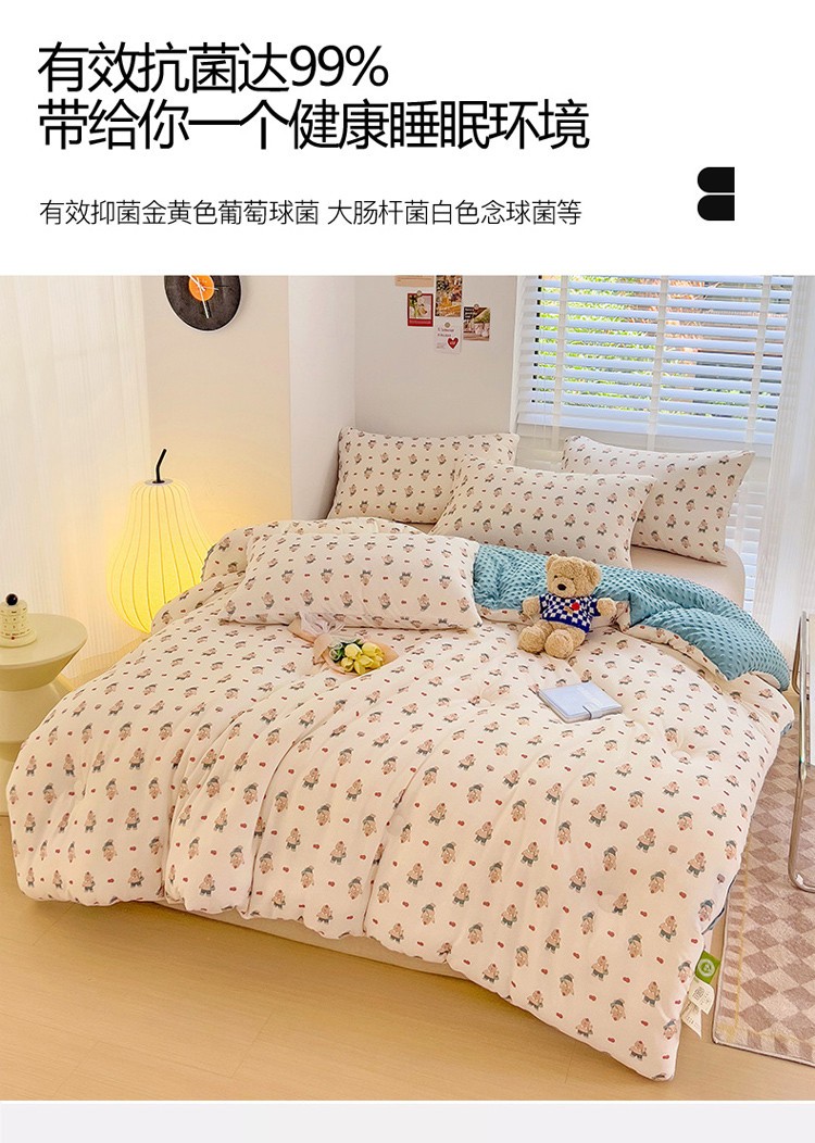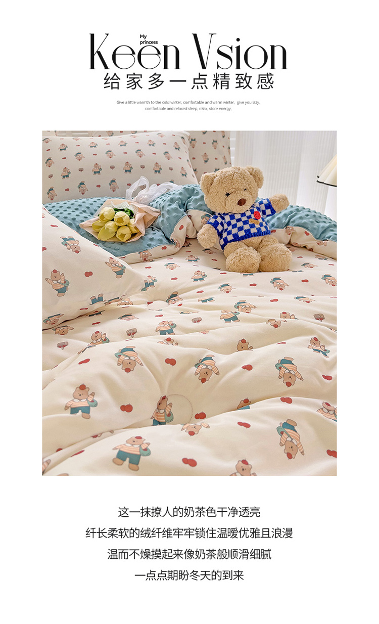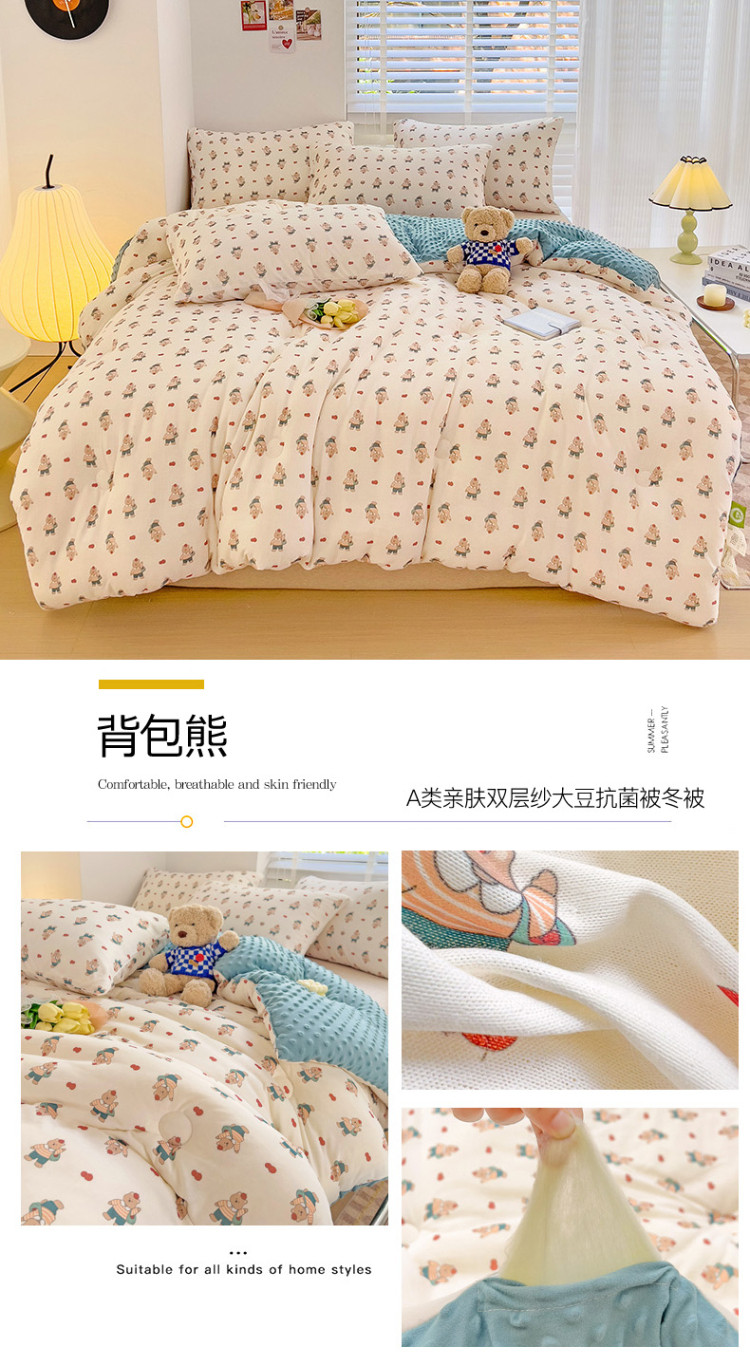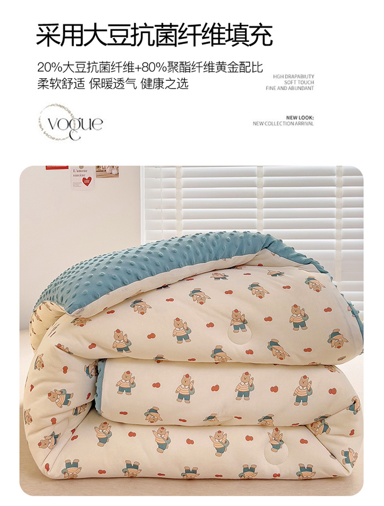 • 91家纺网 家纺一手货源 找家纺 寐居 2023新款水洗双层纱+豆豆绒 A类大豆抗菌被背包熊