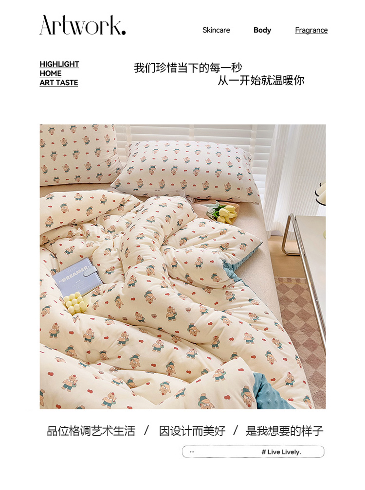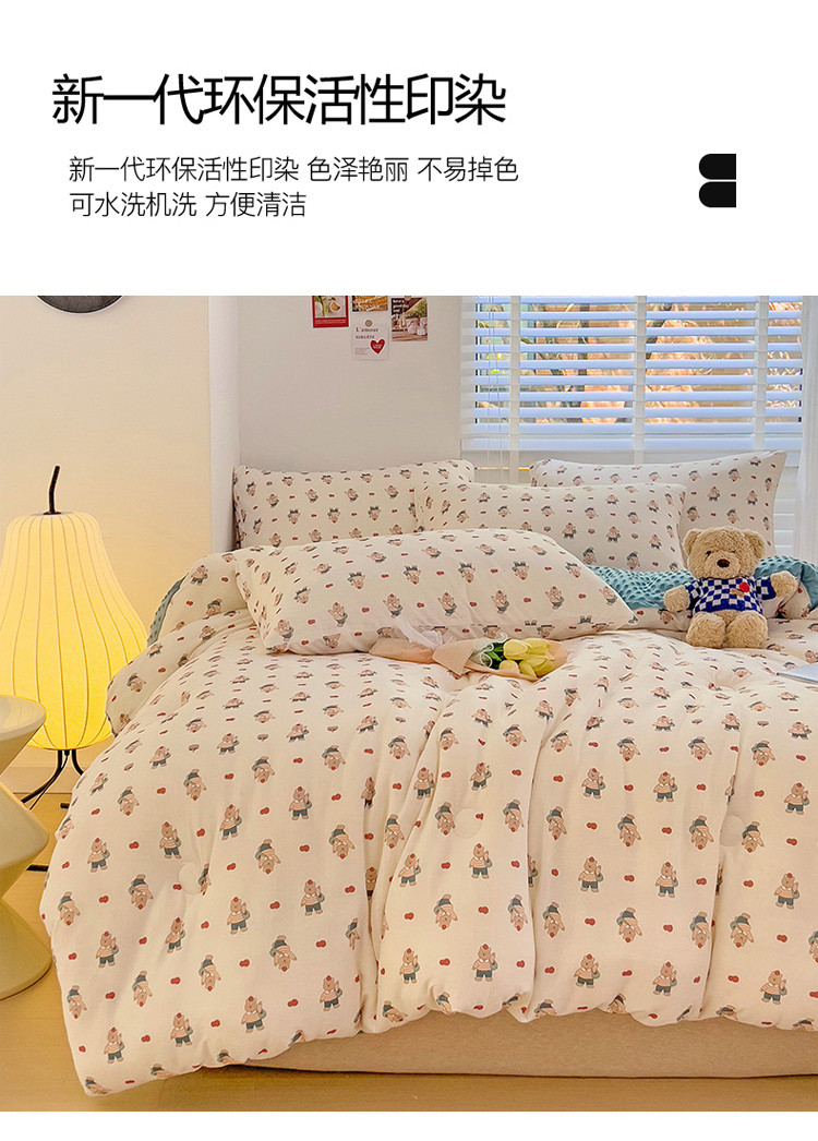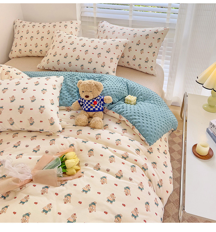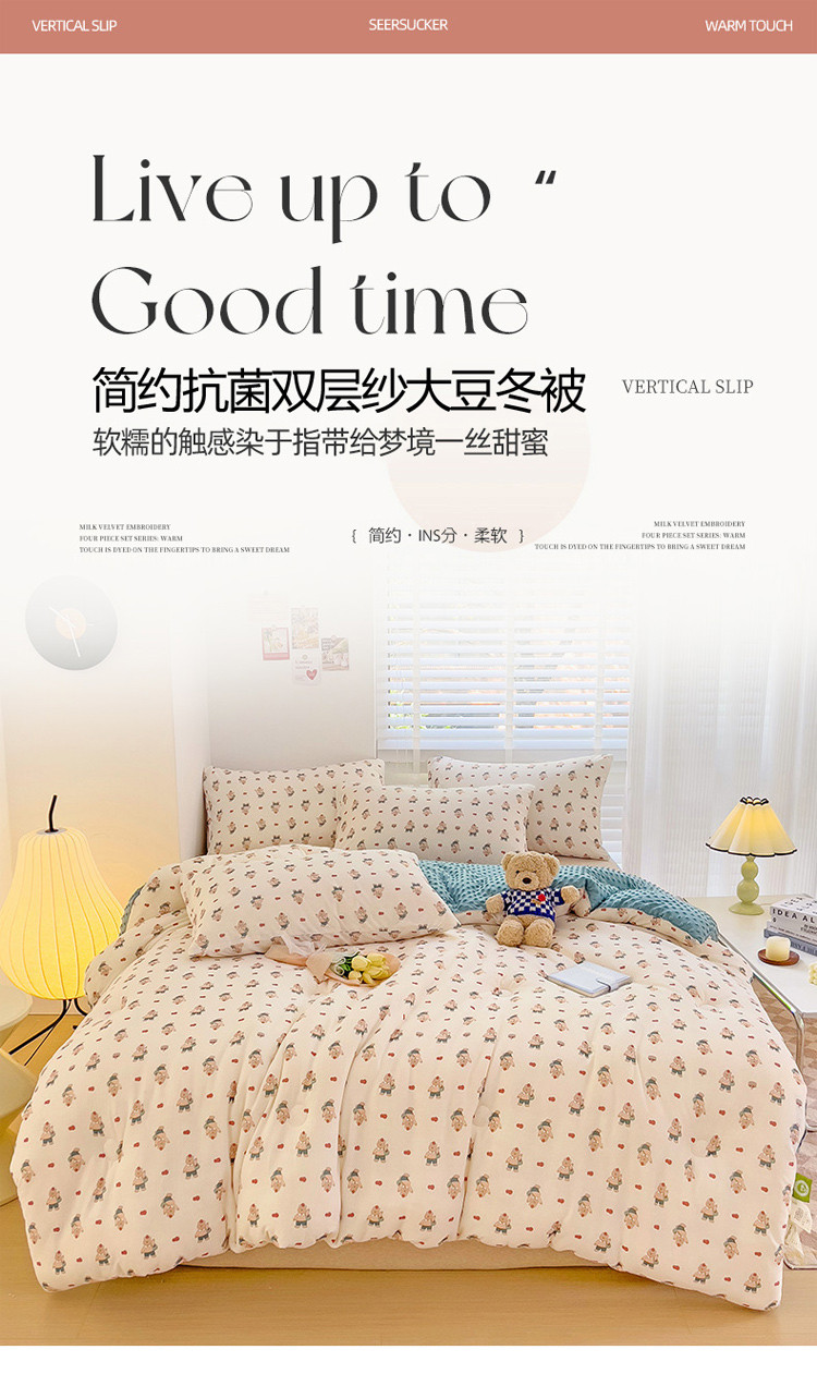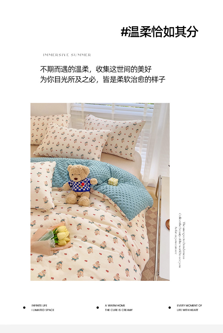• 91家纺网 家纺一手货源 找家纺 寐居 2023新款水洗双层纱+豆豆绒 A类大豆抗菌被背包熊