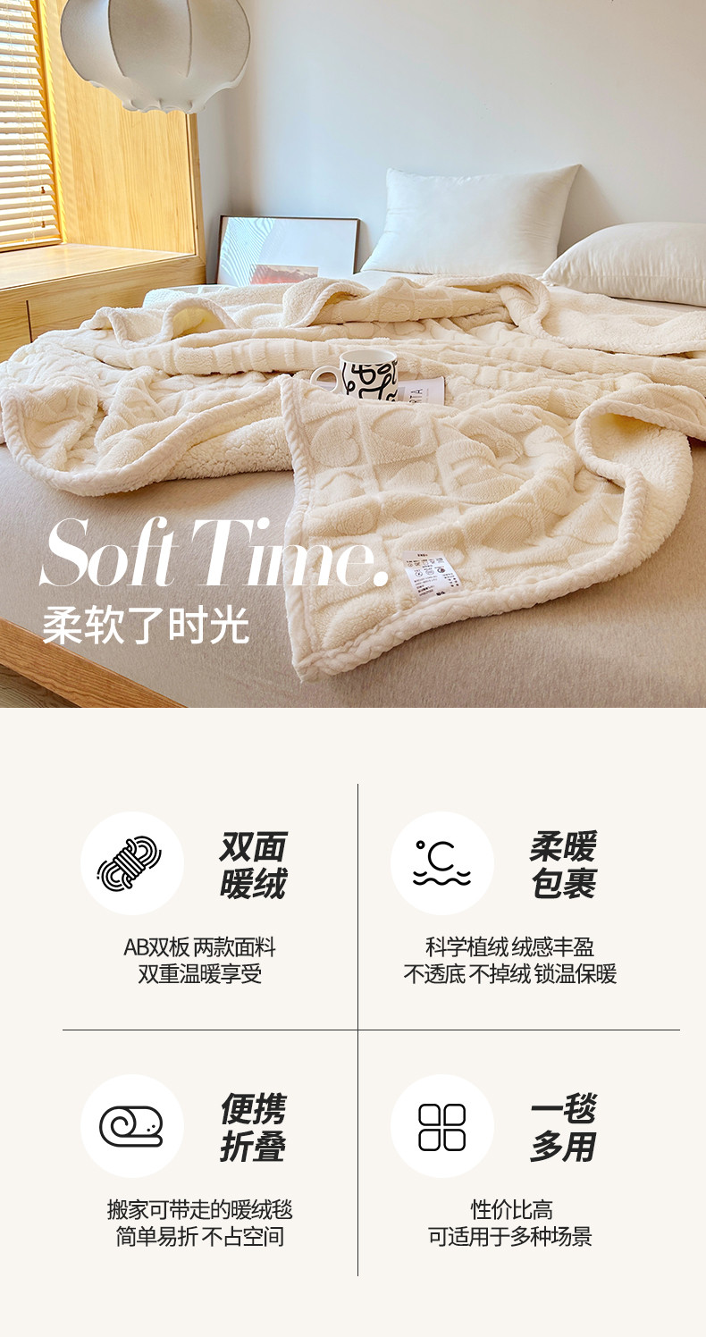梦舒羽 2025直播新款高克重塔芙绒羊羔绒多功能盖毯毛毯 简爱 白