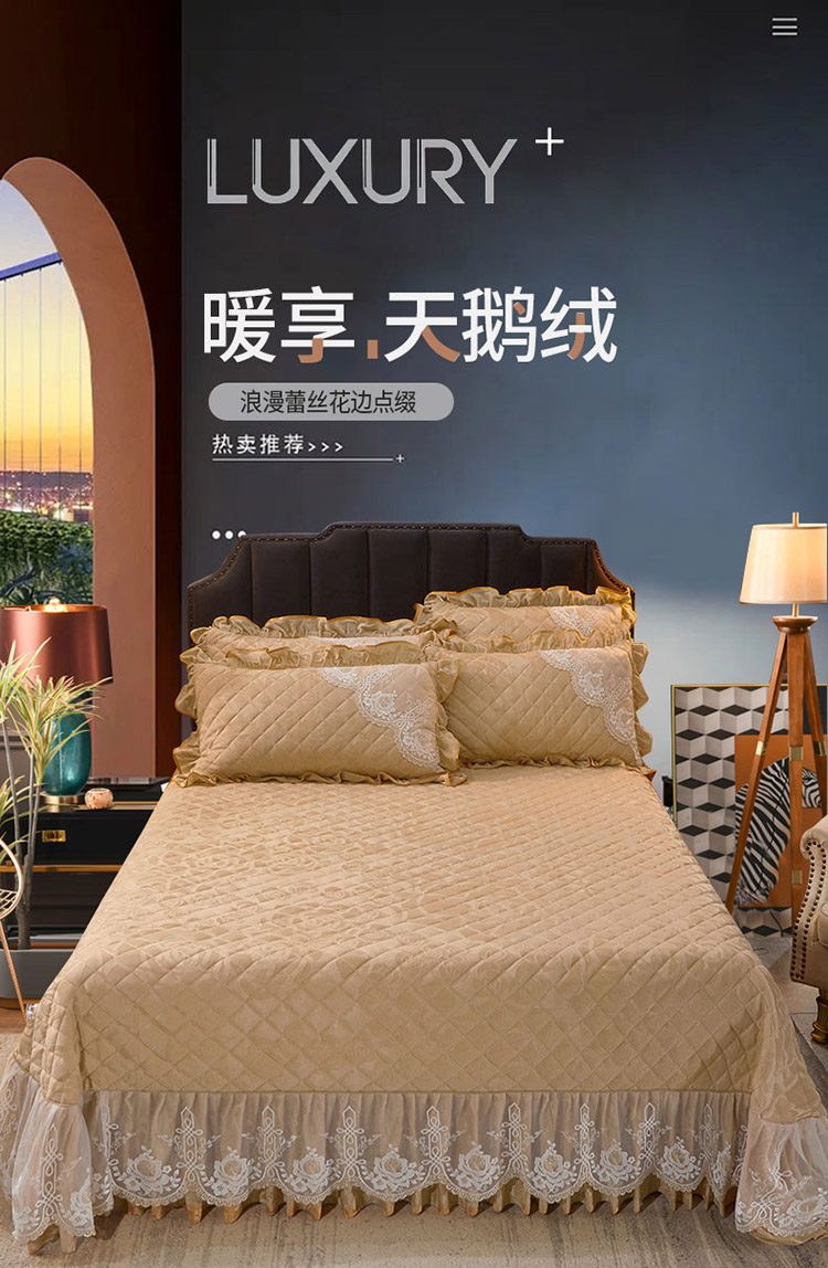 商品名称:恋尚 2023新款天鹅绒可脱卸夹棉床裙 床盖四件套 床裙 浅咖
