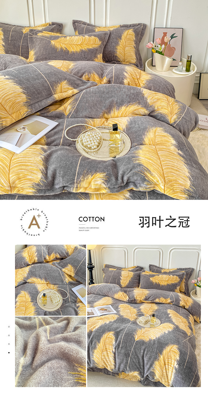 • 91家纺网 家纺一手货源 找家纺 518家纺 2025新款A类高克重臻棉绒单被套(可定制) 羽叶之冠