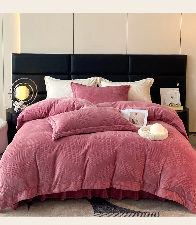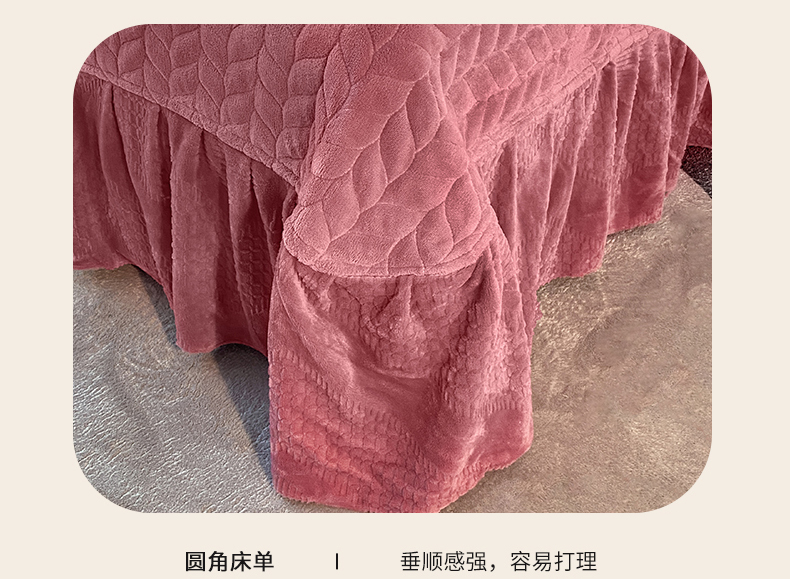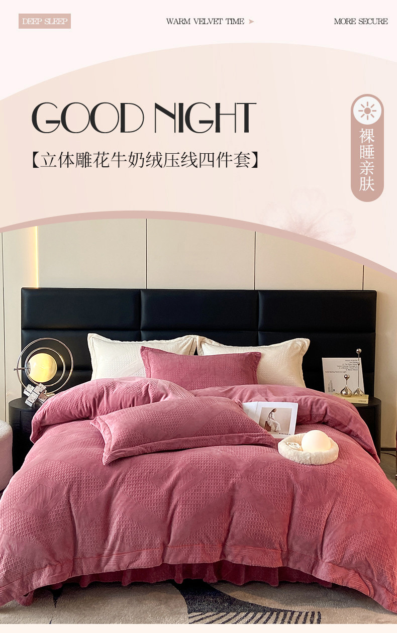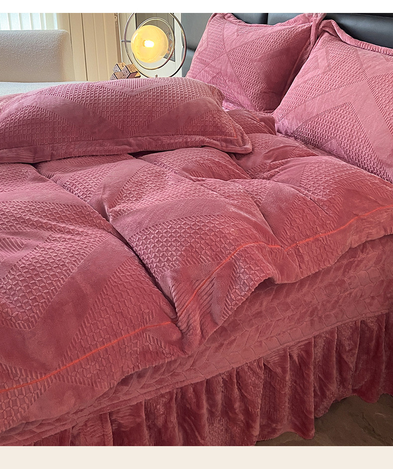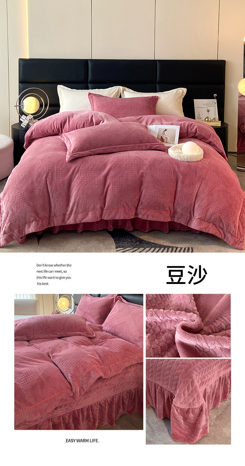 美伦美焕2023新款纯色立体雕花牛奶绒床盖四件套床裙款式 豆沙