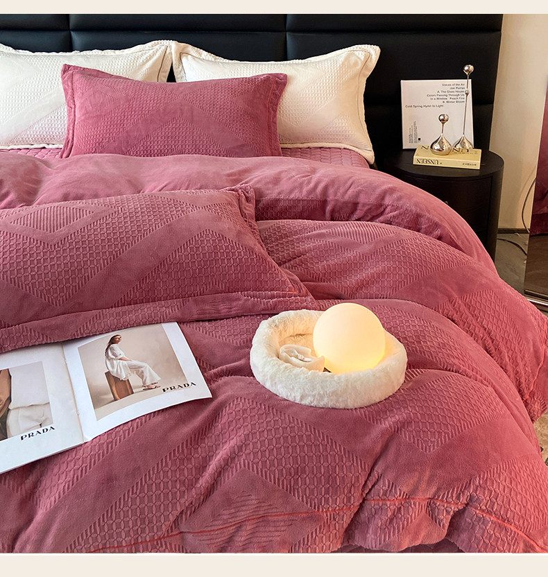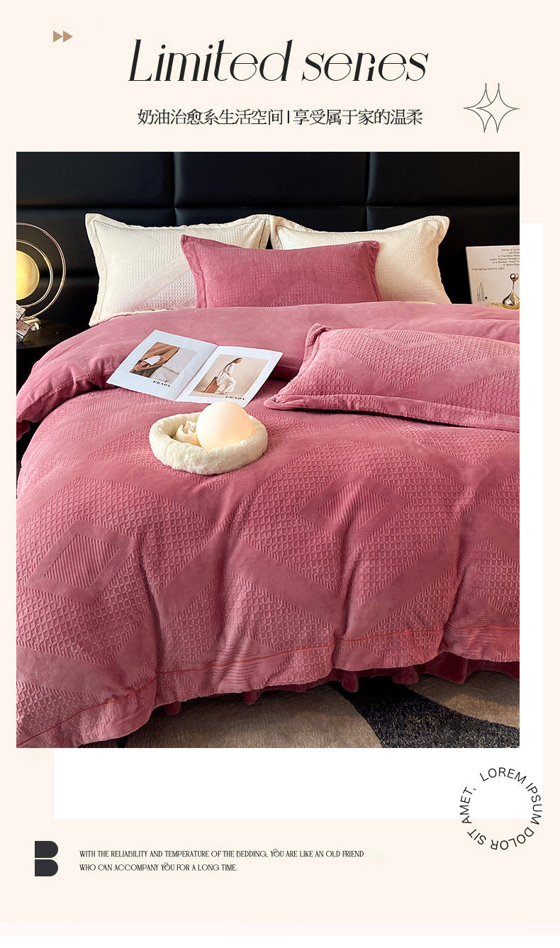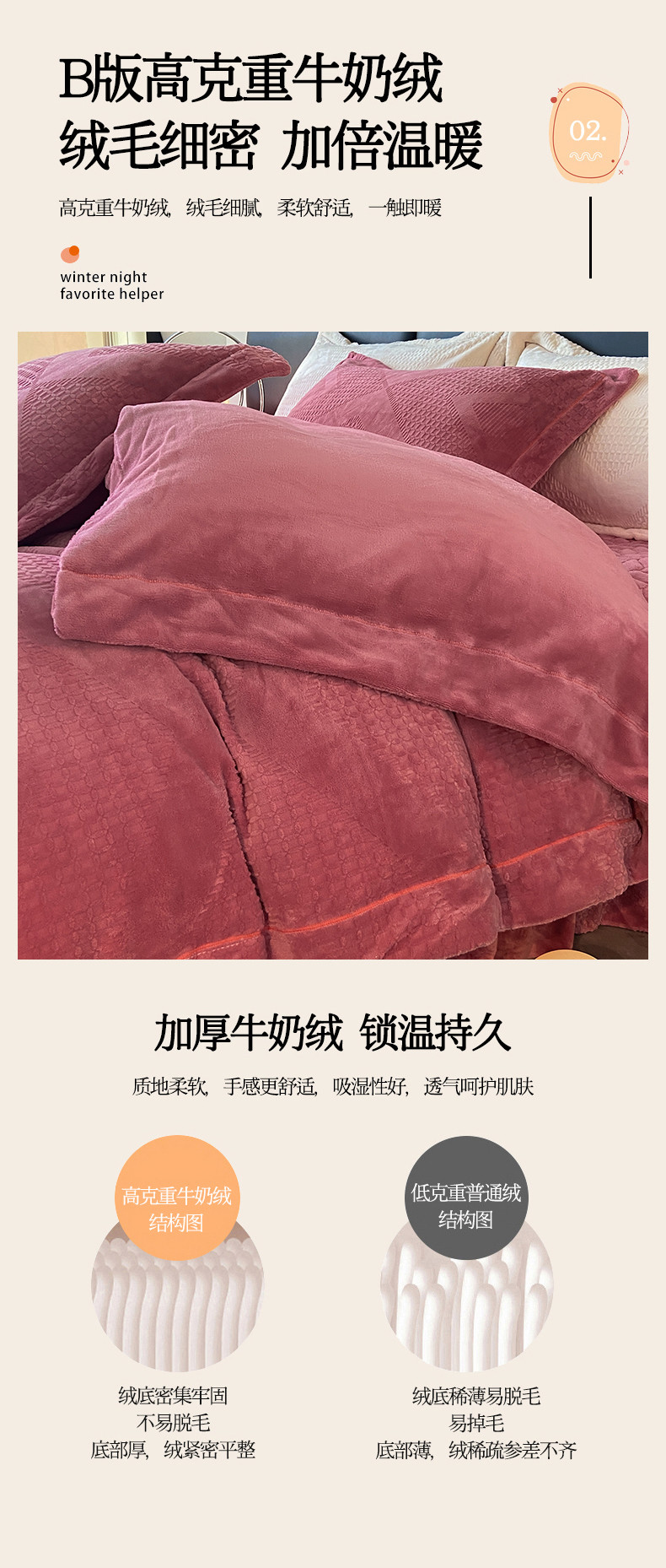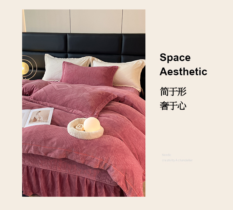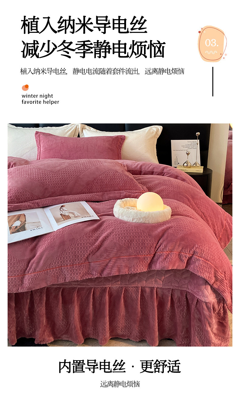 美伦美焕2023新款纯色立体雕花牛奶绒床盖四件套床裙款式 豆沙