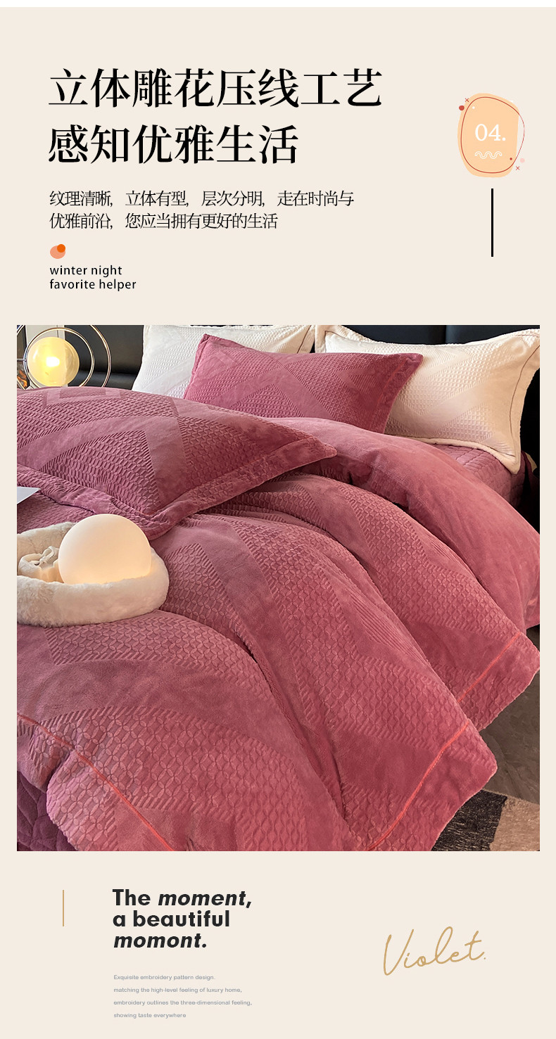 (总)美伦美焕 2025新款加厚雕花绒床盖款四件套-浅叶,浅叶-粉玉,浅叶-卡其,浅叶-绅士灰,浅叶-蔚蓝,浅叶-胭脂红