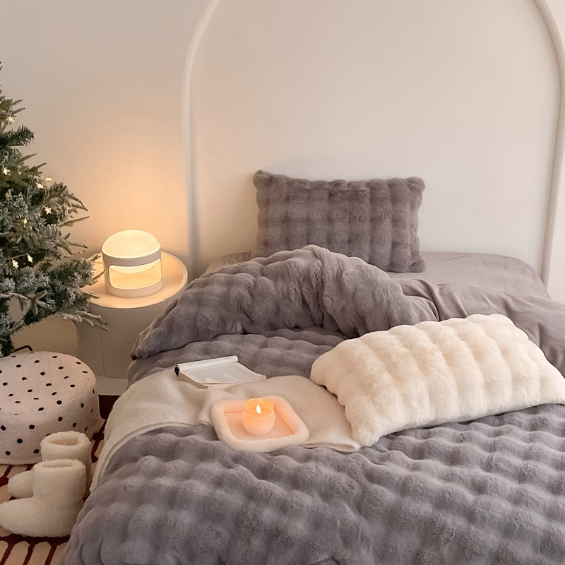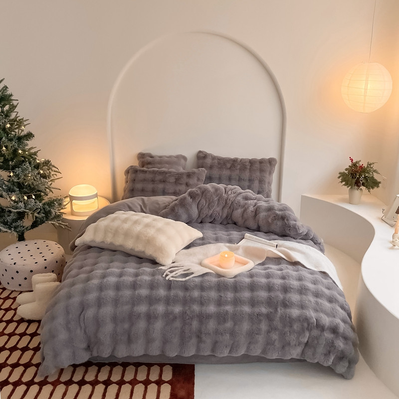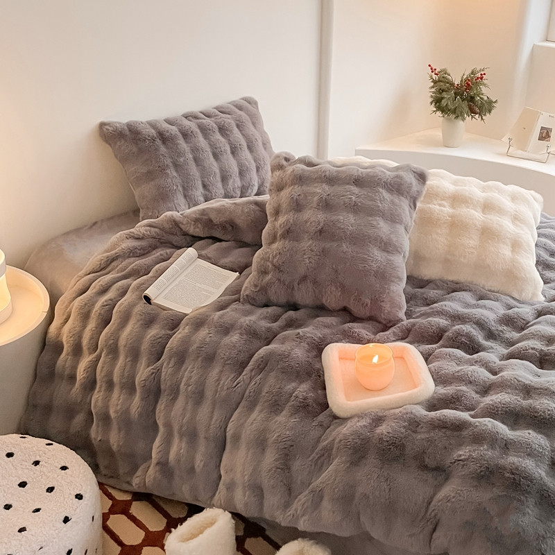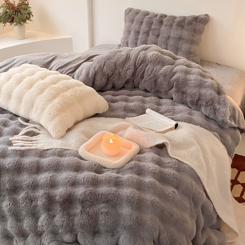 潘朵拉 2023新款爆款兔毛大泡泡四件套 大泡泡浅灰