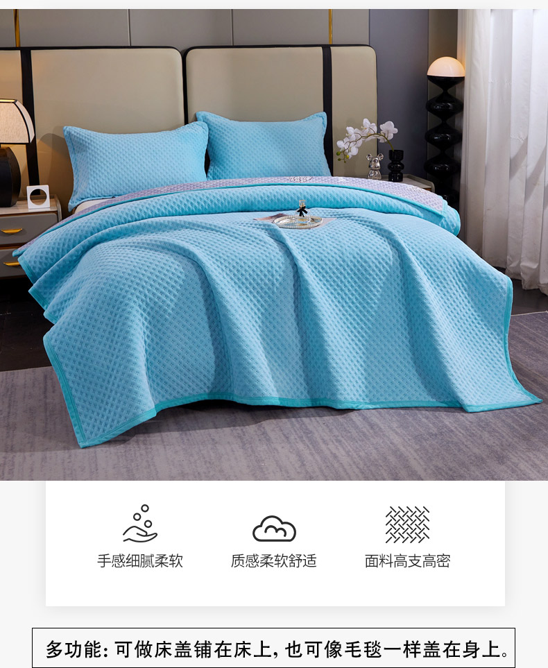 • 91家纺网 家纺一手货源 找家纺 晶缦家纺 2023新款华夫格牛奶绒床盖三件套 华夫格-天蓝