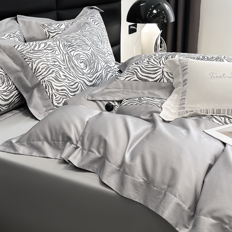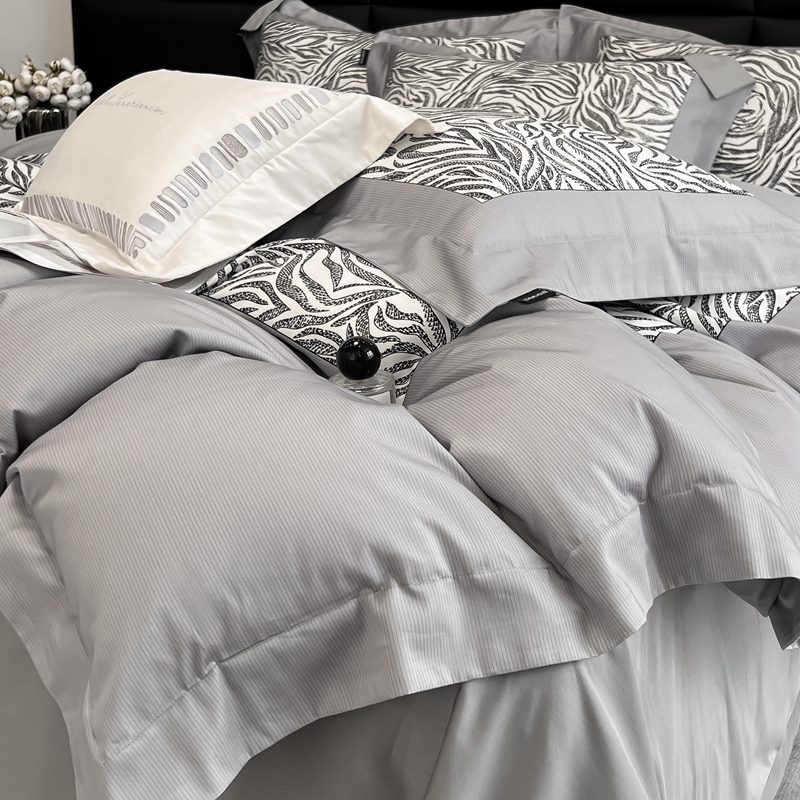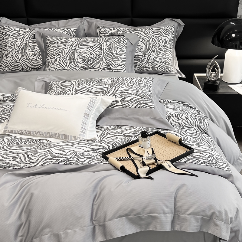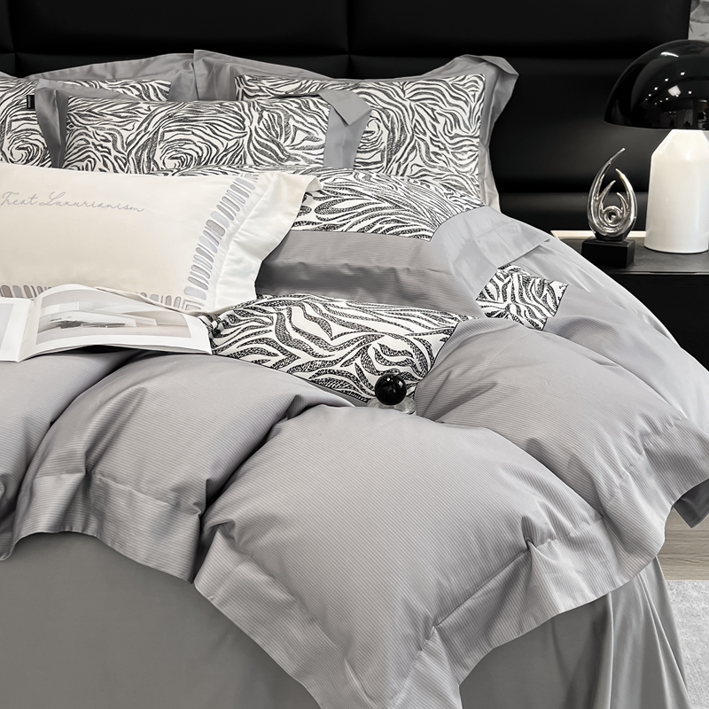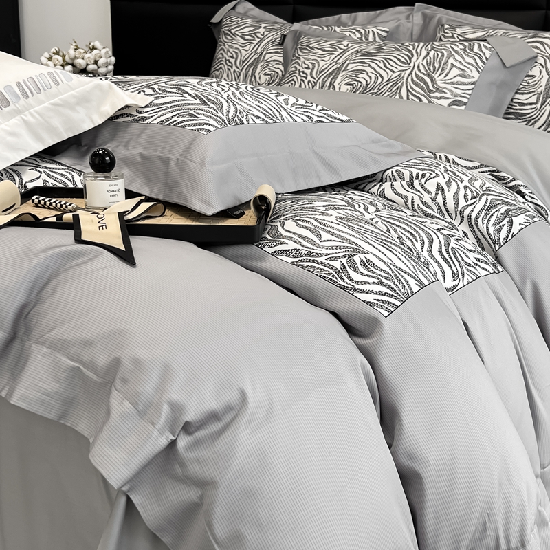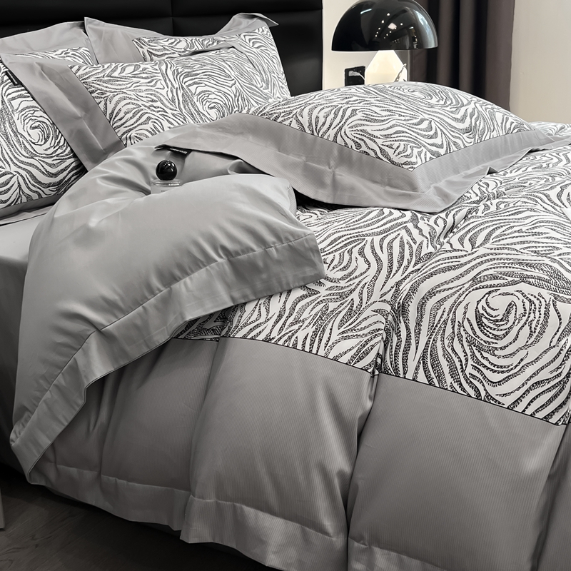数码印花大版图案意式轻奢静奢风高端四件套-宝利来 3 爱娜丝 绅士灰