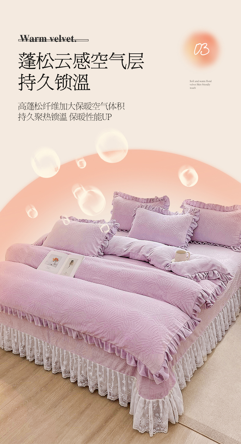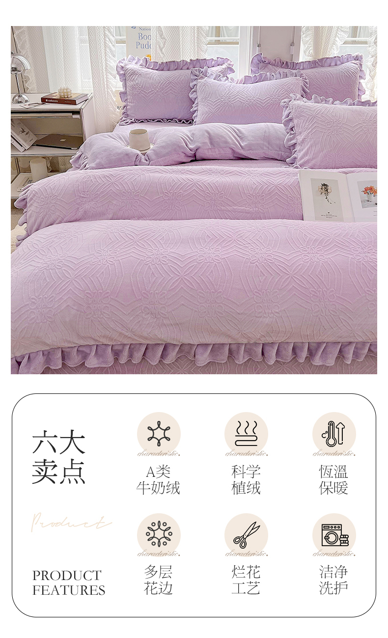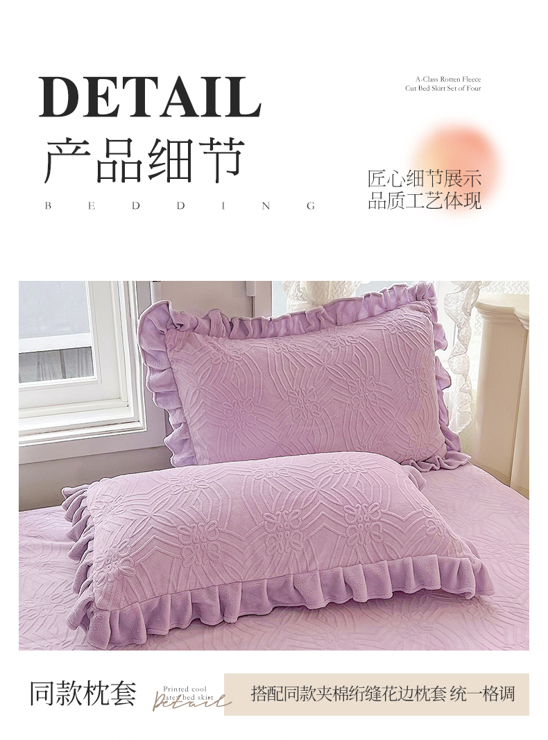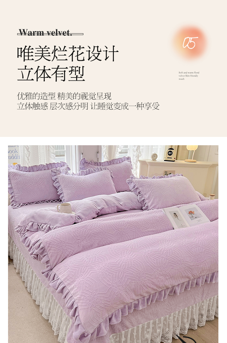(总)宜凡家纺 2025新款兔绒提花牛奶绒夹棉床裙四件套,爱心 少女粉,爱心 粉紫,爱心 驼色,蝶舞 大红,蝶舞 米色,蝶舞 浅紫,蝶舞 玉色,简爱 苍青,简爱 豆沙紫,简爱 玉色,樱桃 苍青,樱桃 豆沙紫,樱桃 奶油白